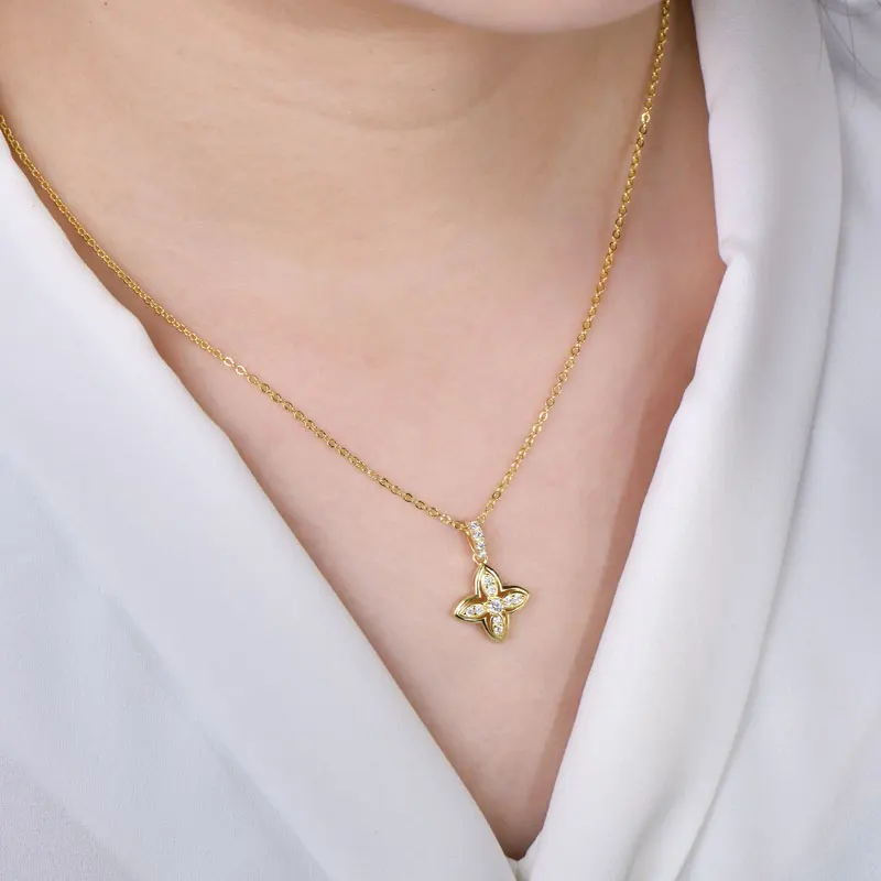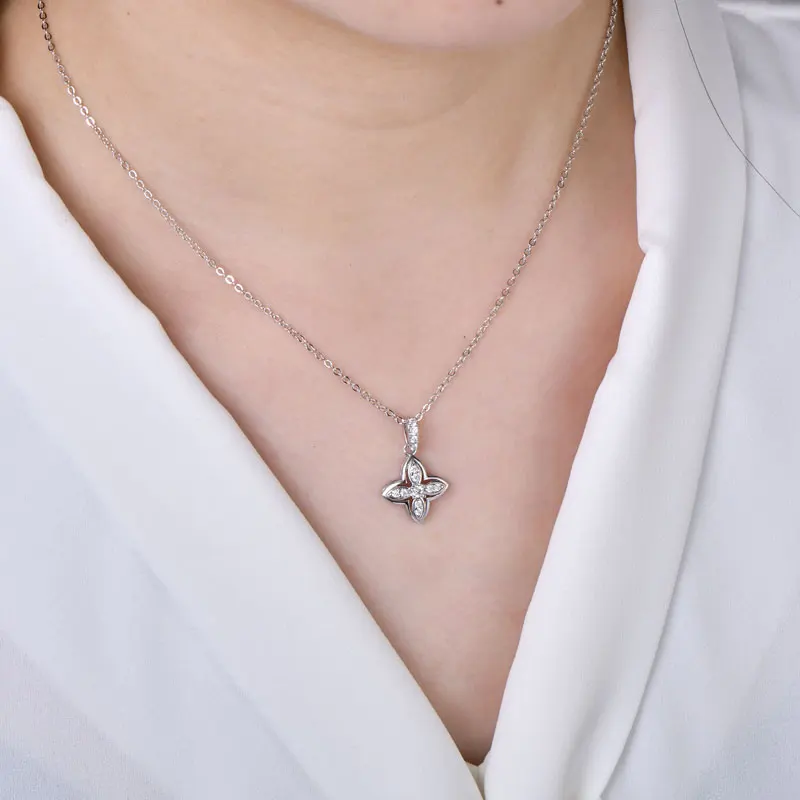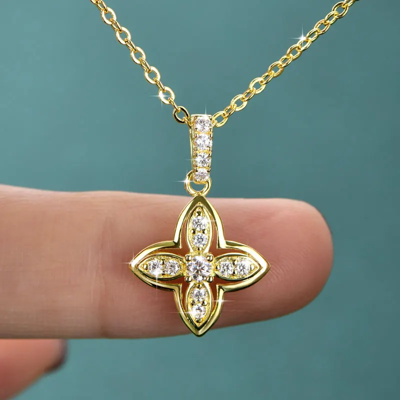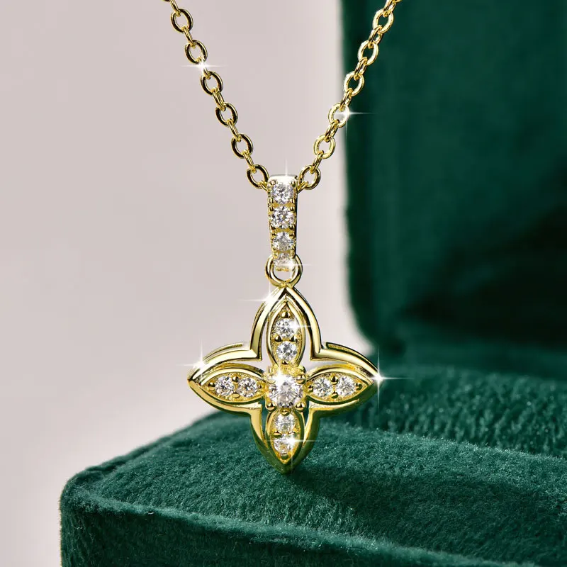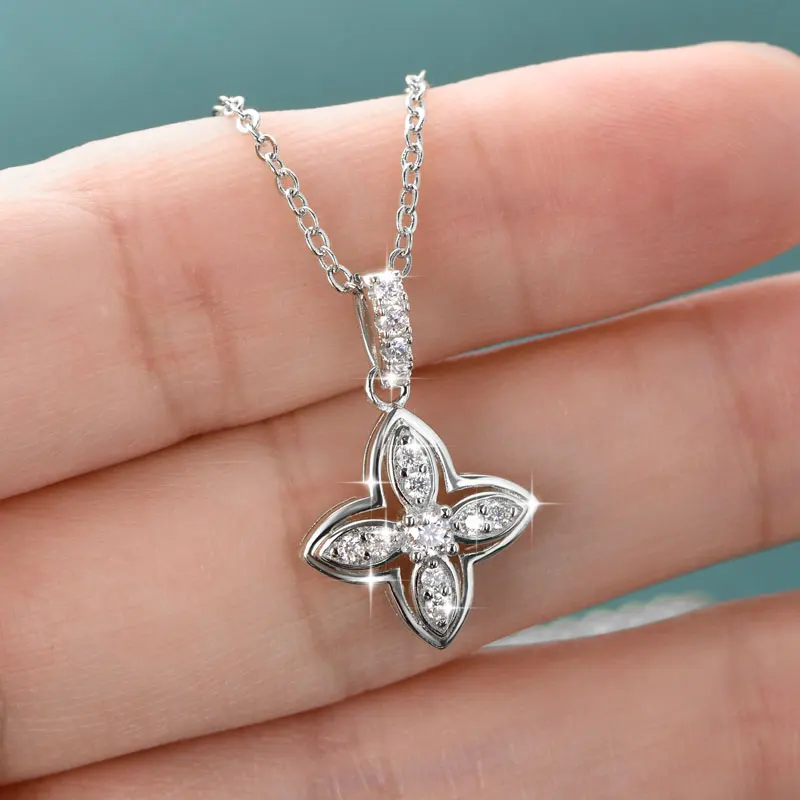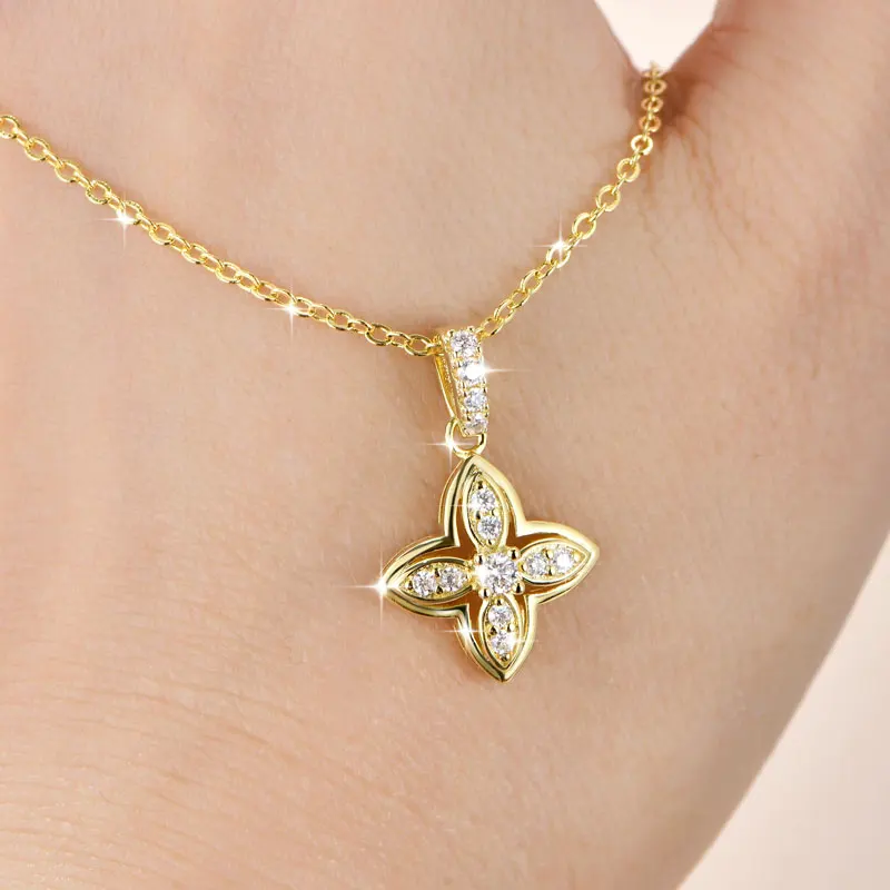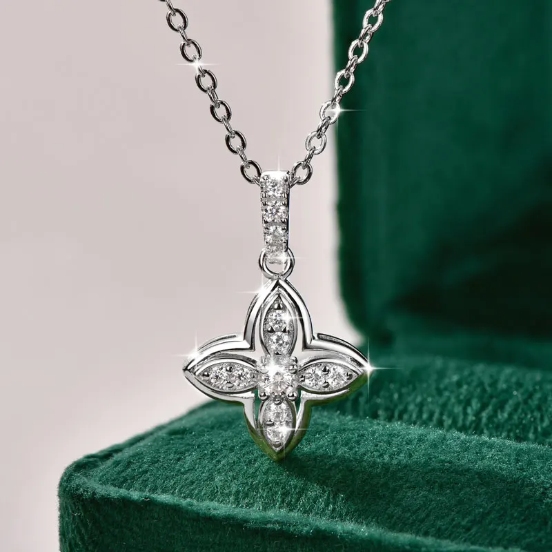 Rrjzz Certified Full Moissanite Four Leaves Necklace for Women Lab Imitation Diamond Birthday Pendant Necklace GRA Jewelry Gift