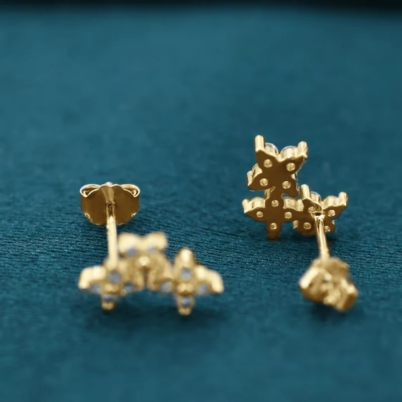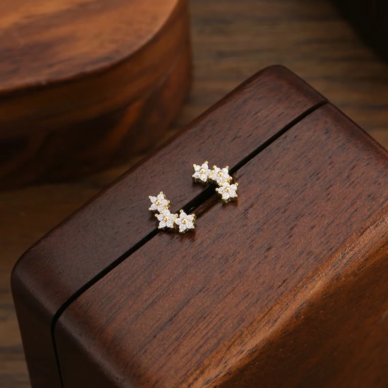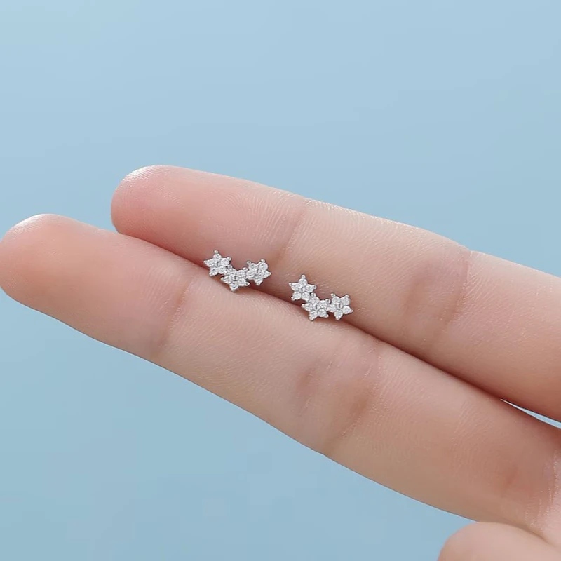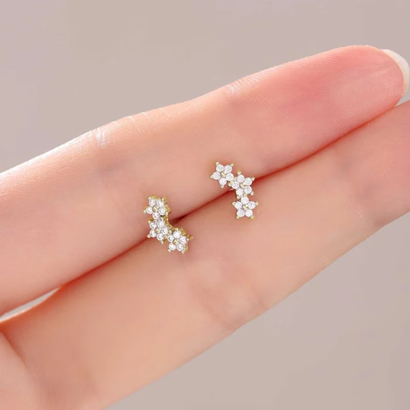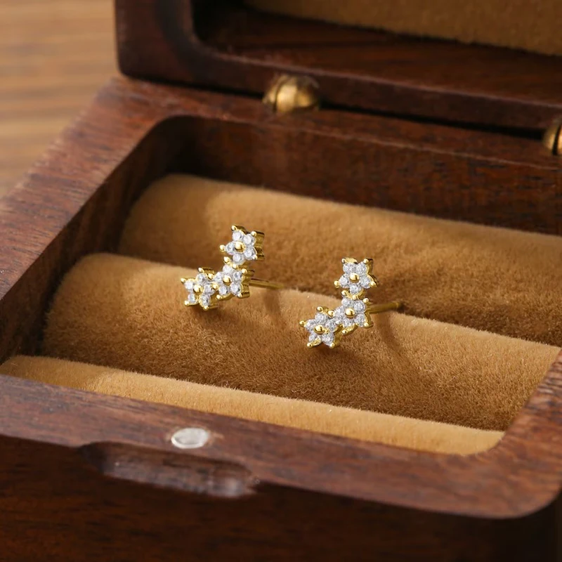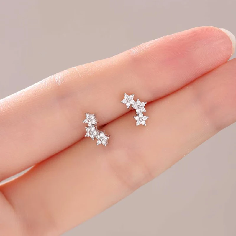 Rrjzz Exquisite Climber Flower Stud Earrings Certified D Color VVS1 Lab Created Imitation Diamond Women Earring Jewelry Gift