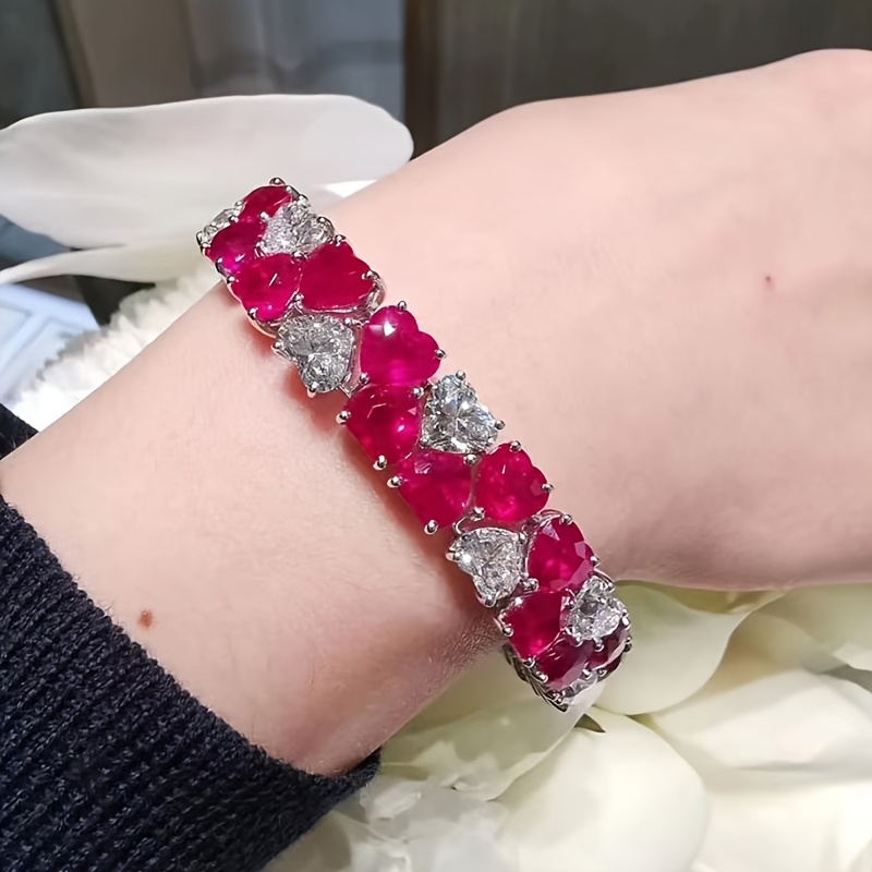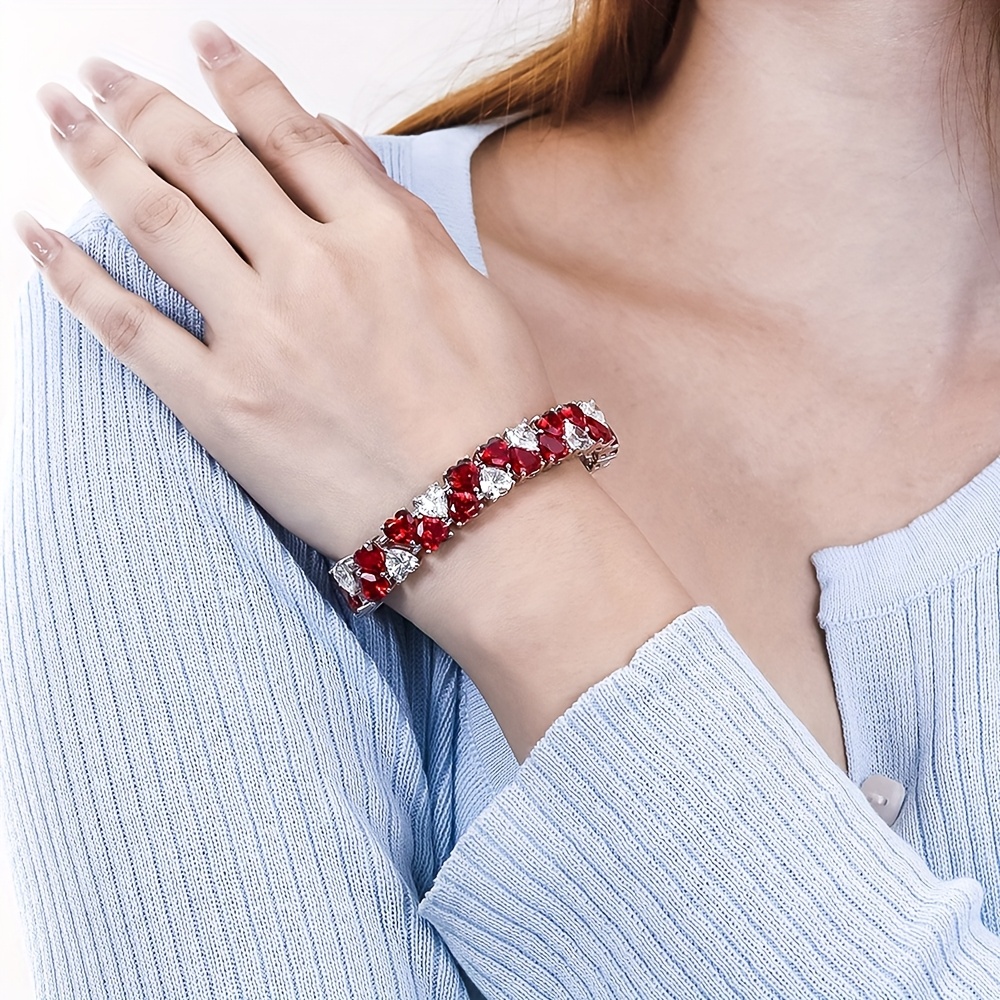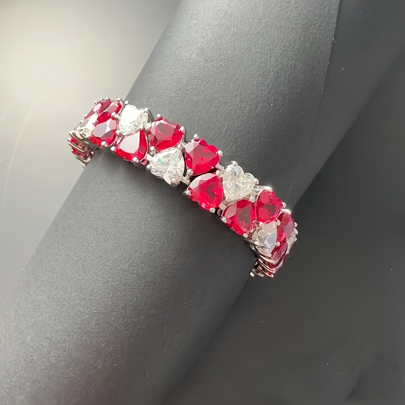 S925 Silver 7 * 7 Red and White Double Heart Full Moissanite Bracelet Colorful Jewelry Accessories Women’s Wedding and Engagement Rings, Luxury Retro Jewelry Gifts Christmas Gifts, Halloween Gifts Best Gifts for Good Friends and Classmates, Fine Jewelry for Women, Holiday Gifts, Celebration Jewelry, Elegant Design, Bohemian Style, Highquality Craftsmanship, Moissanite Gemstone, Fashion Jewelry, Heartshaped Bracelet, Bridal Jewelry, Friendship Gifts