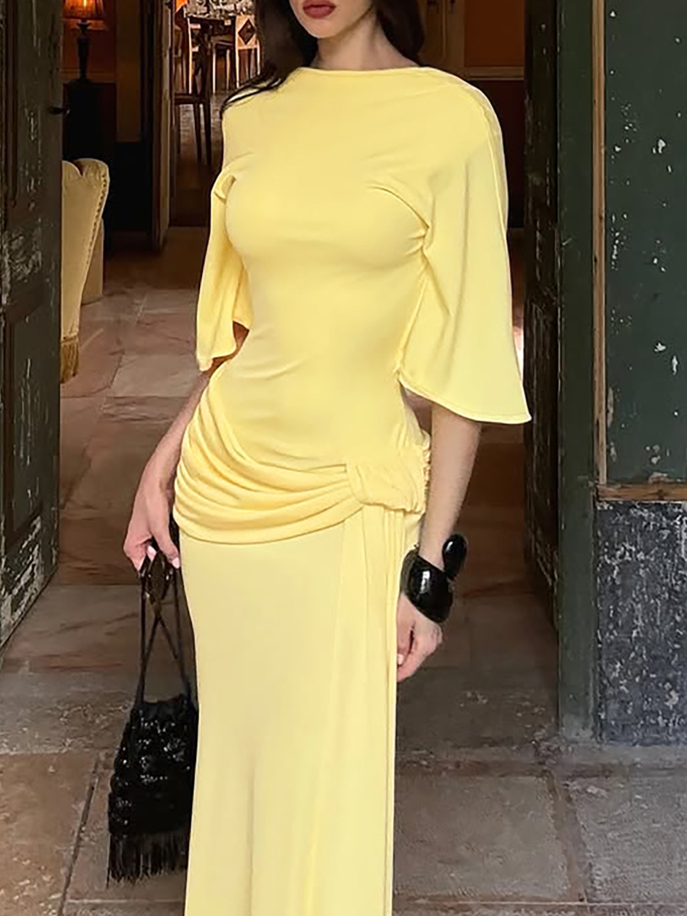 SCACTO French Layered Backless Maxi Dress – -Line Wedding Guest Gown with Ruffled Tiers, Round Neck Backless Evening Dress, Machine Washable for Prom,, Special Occasions (-)