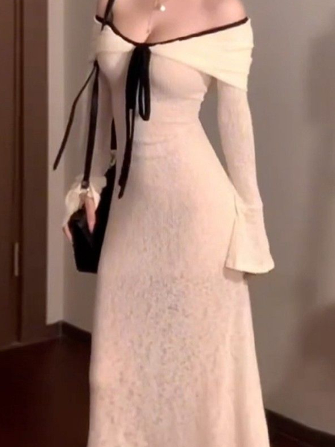 SCACTO Women’s Elegant -Neck Slip Dress – Long Sleeve Bodycon Clothing Suitable for Weddings, Parties & Formal Events – Machine Washable Contoured Dress