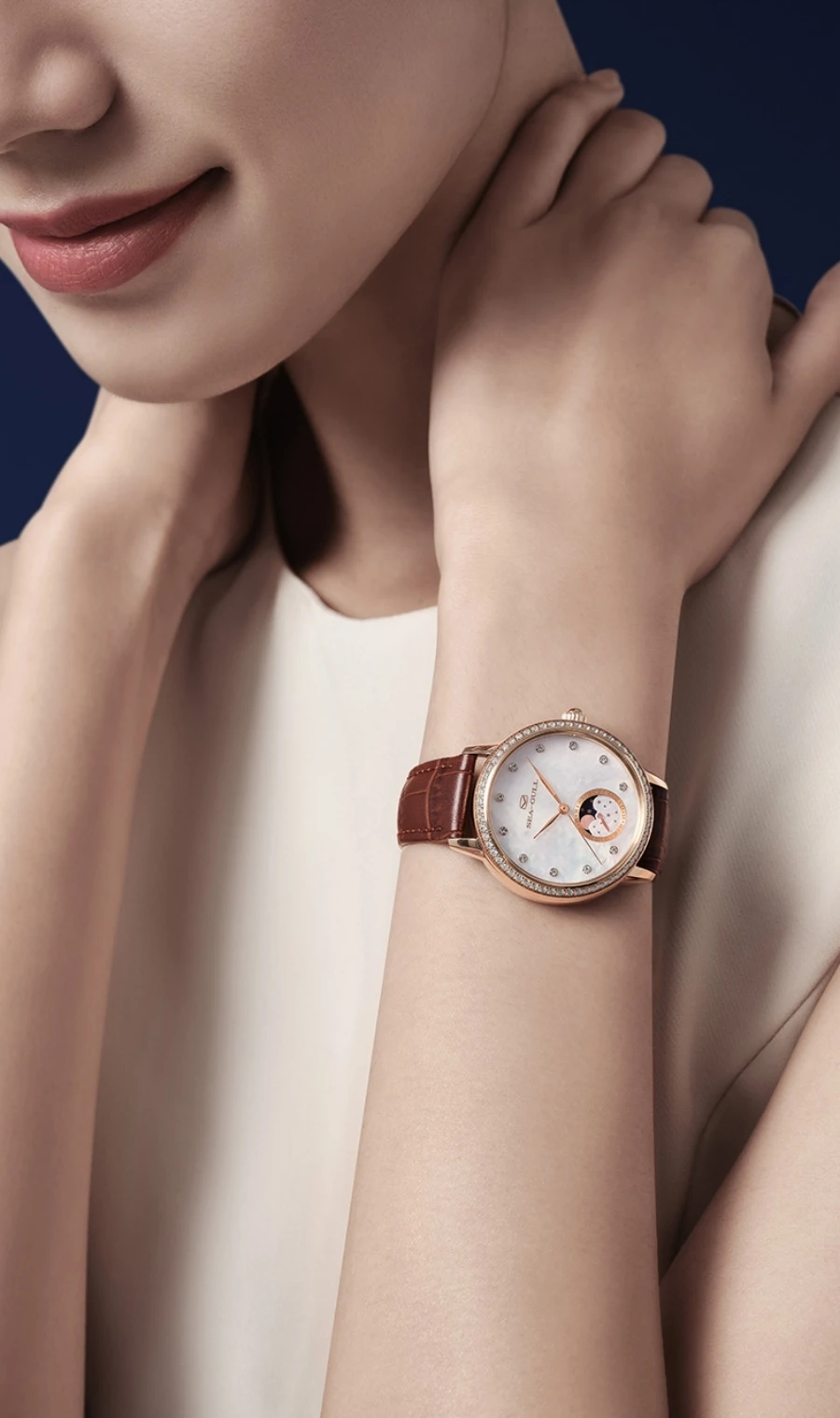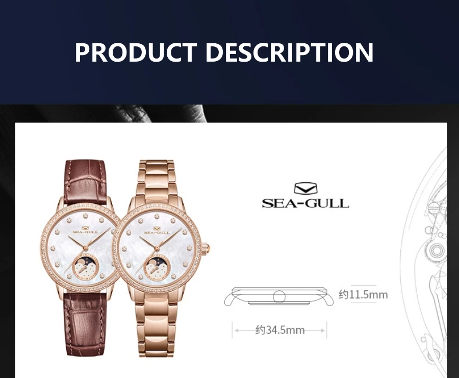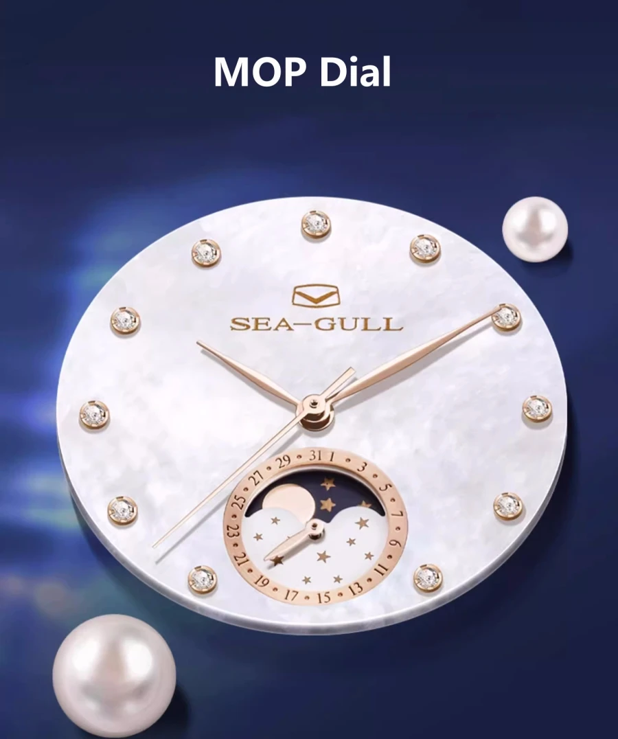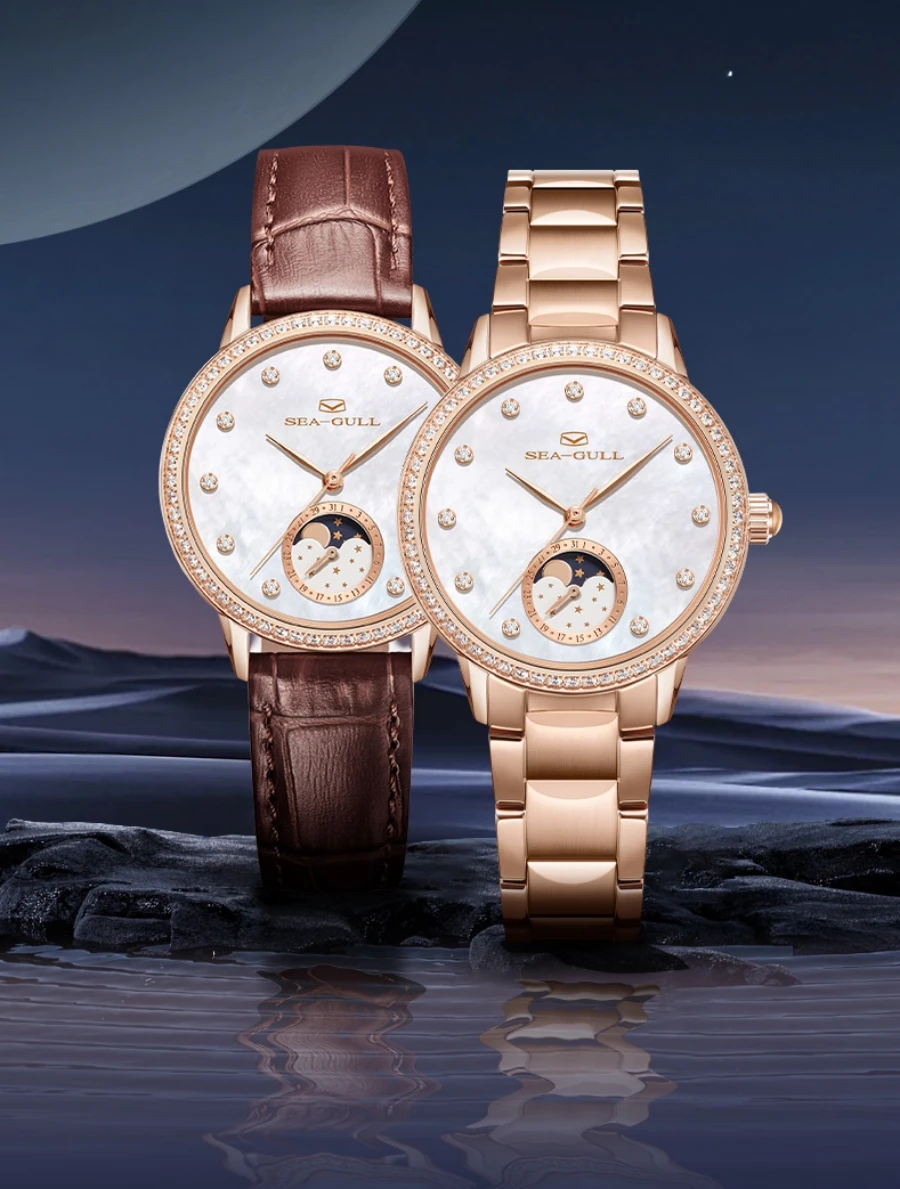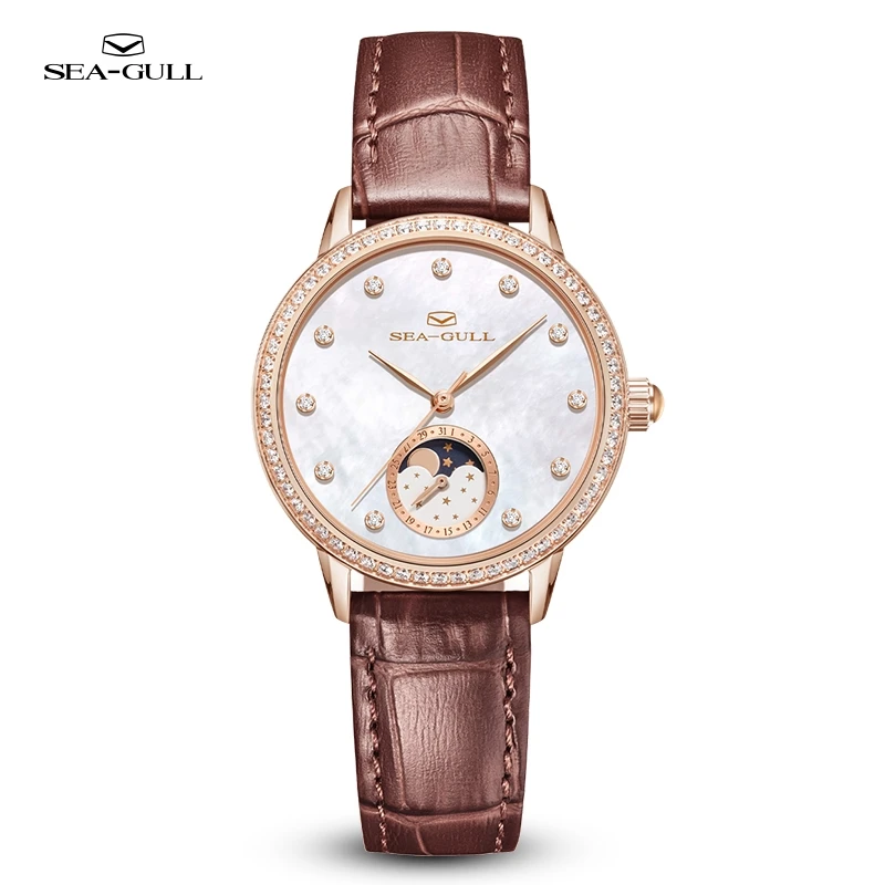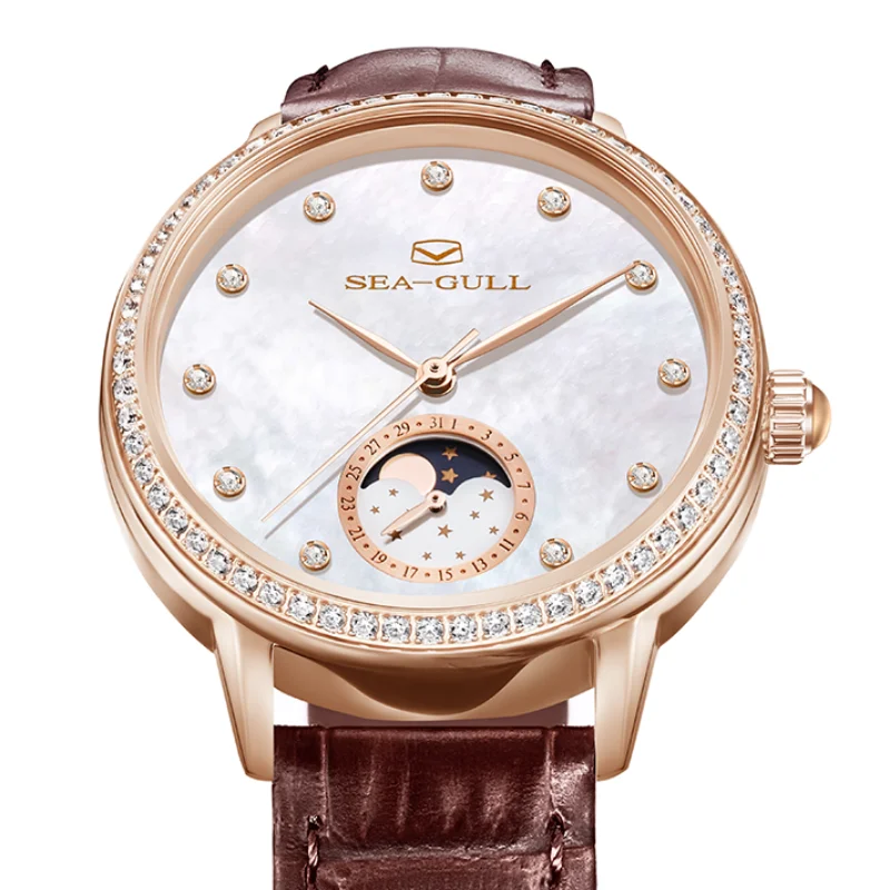 Seagull Women Watch Luxury Diamond Automaic Mechanical Watches Ladies Elegant Skeleton Dress Watch Moon Phase Wristwatch 1136L