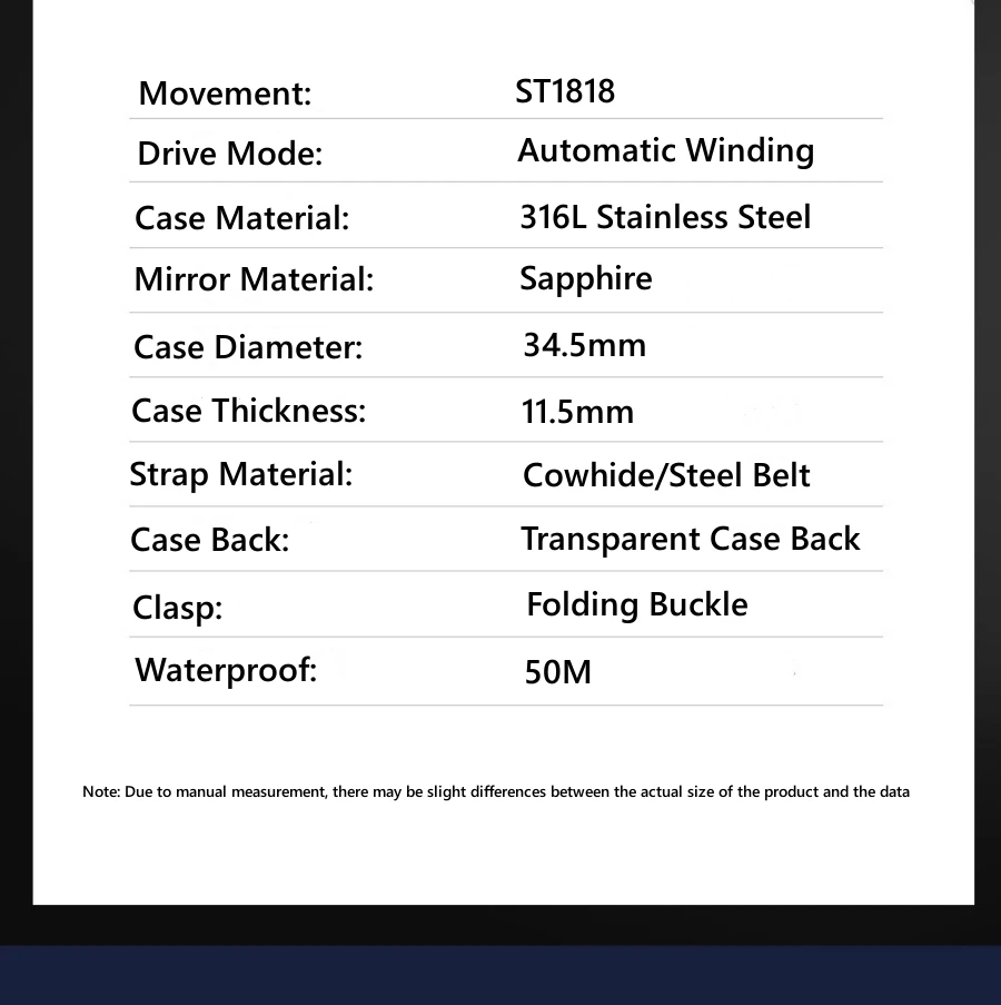 Strap Material: Leather/316L Stainless Steel