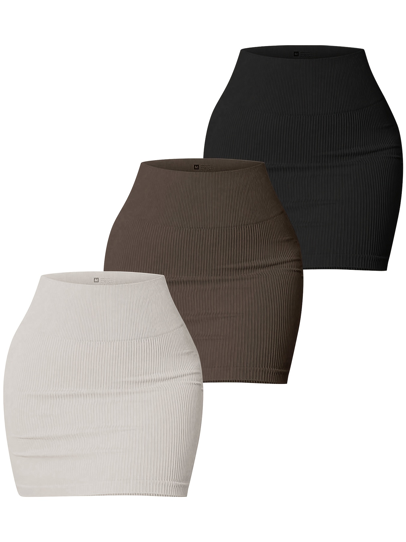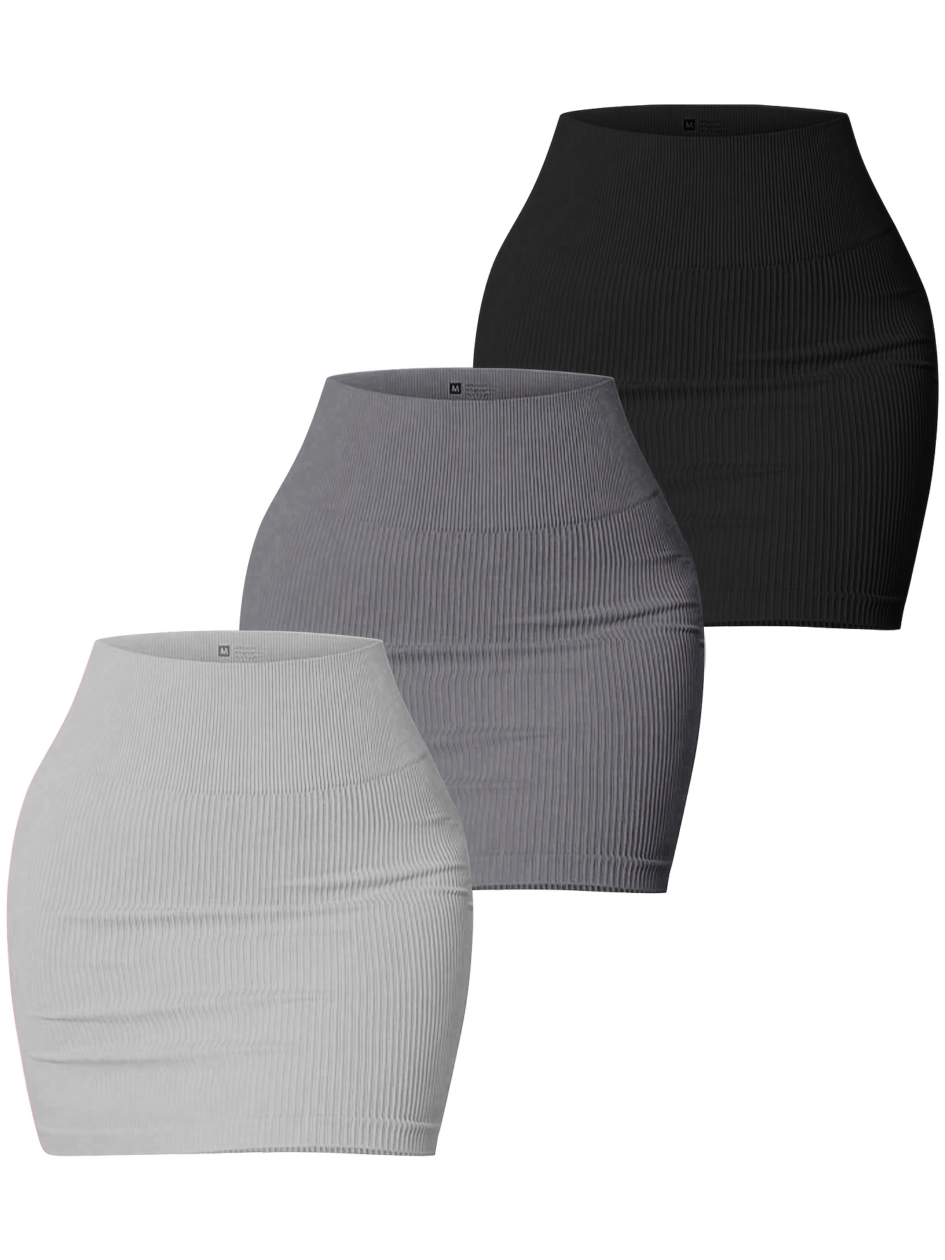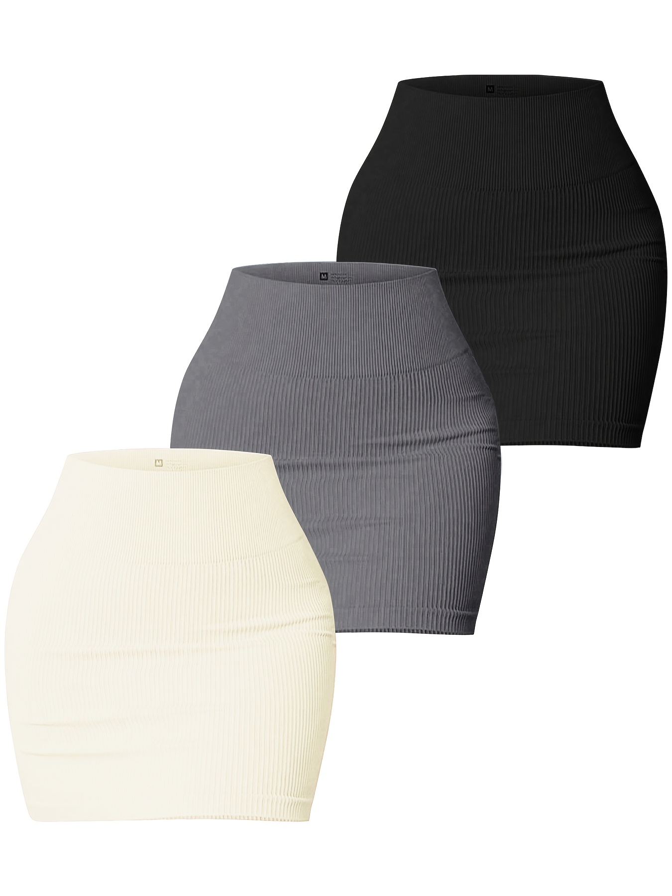 [Seamless Workout Skirts] 3pcs High-Waisted Seamless Workout Skirts | Stretchy Ribbed Athletic Skirts for Yoga, Running & Casual Wear, Machine Washable All-Season Fitness Skirts in Black/Grey/Beige, Opaque Fabric