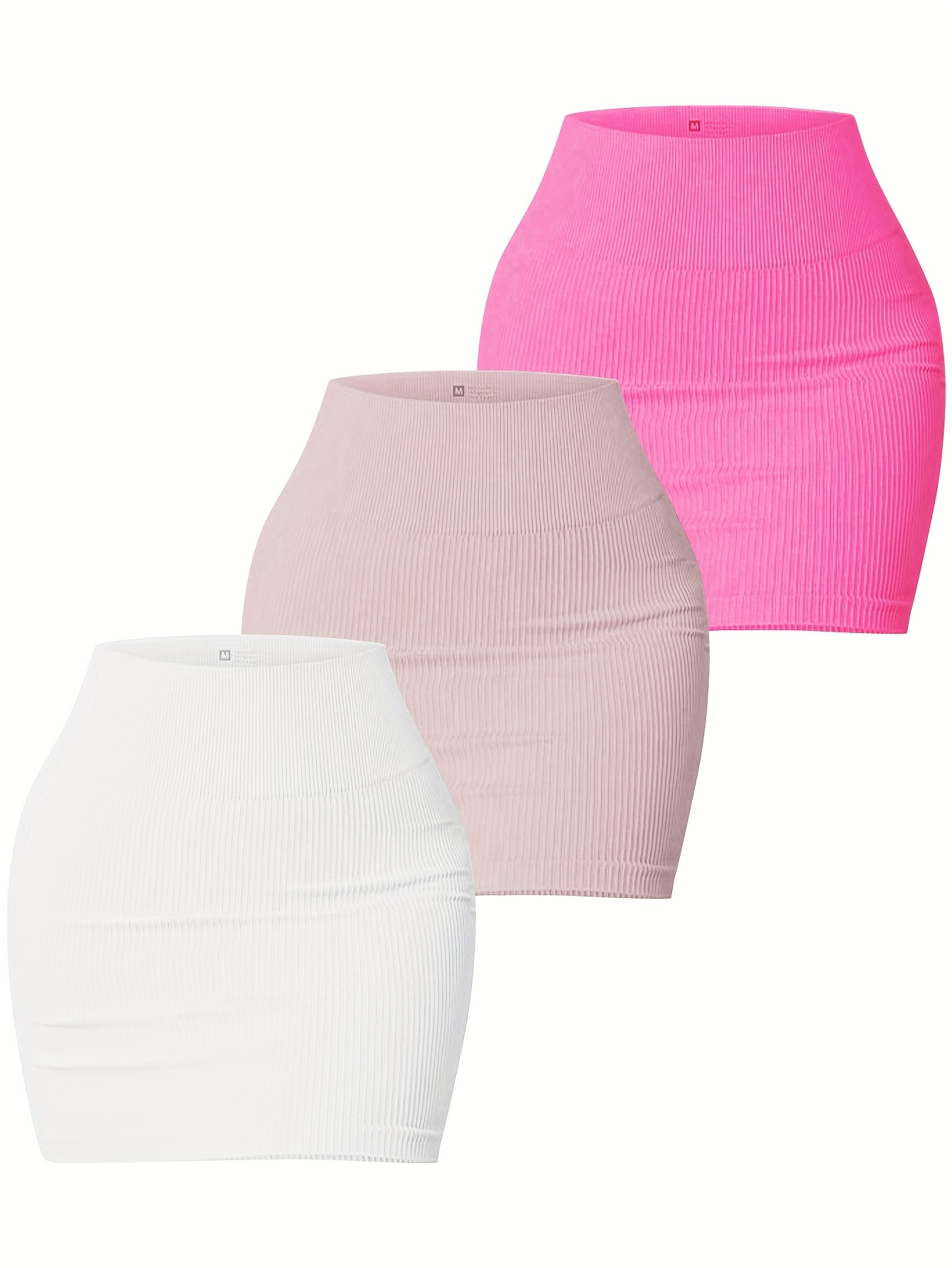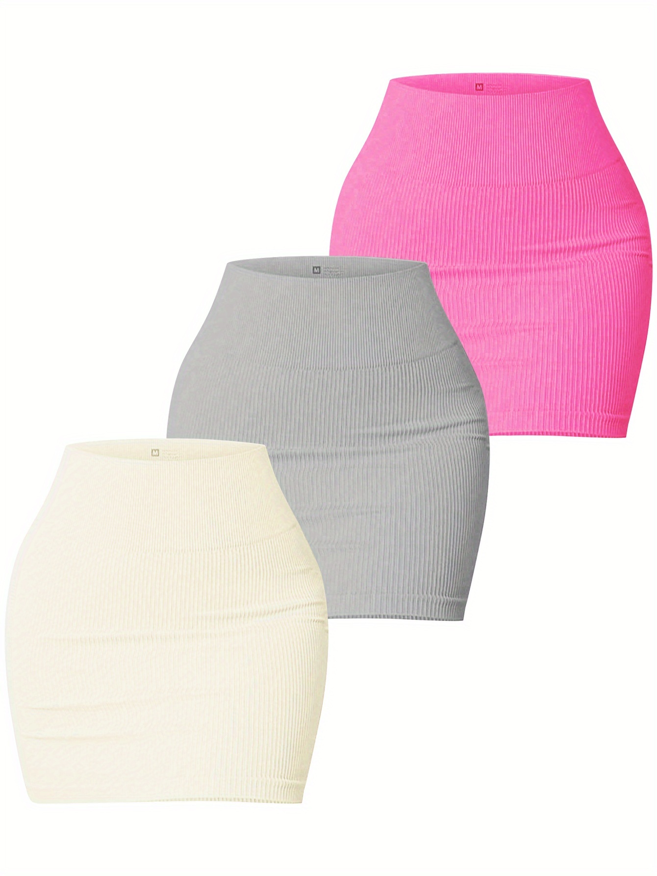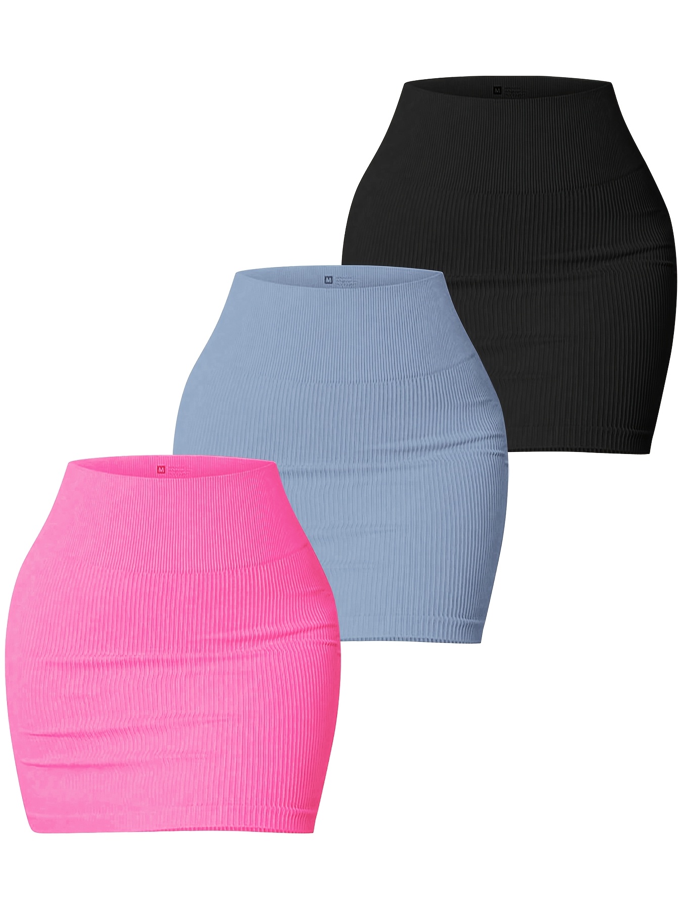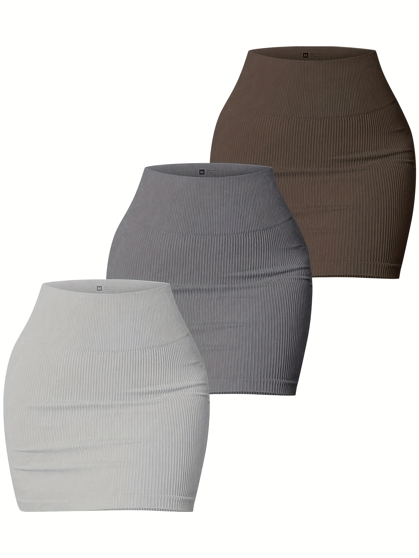 [Seamless Workout Skirts] 3pcs High-Waisted Seamless Workout Skirts | Stretchy Ribbed Athletic Skirts for Yoga, Running & Casual Wear, Machine Washable All-Season Fitness Skirts in Black/Grey/Beige, Opaque Fabric