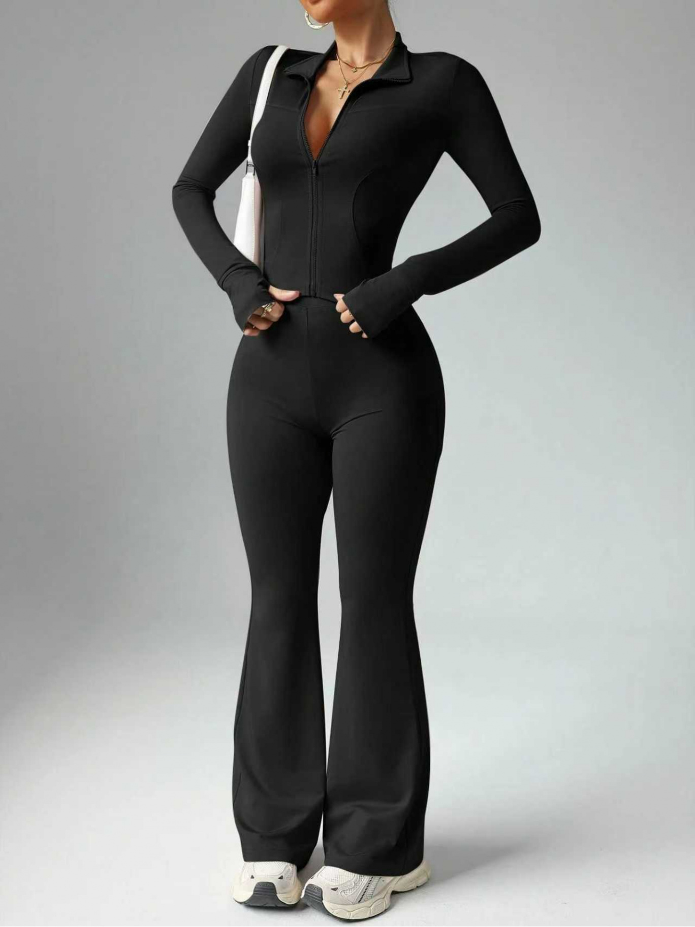 Set of 2 Women’S Fitted Outfits, Casual Sportswear Ensemble, Stylish Solid Color Design for Athletic Training, Women’S Clothing