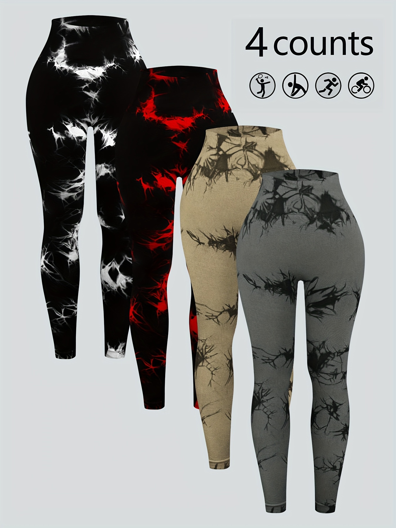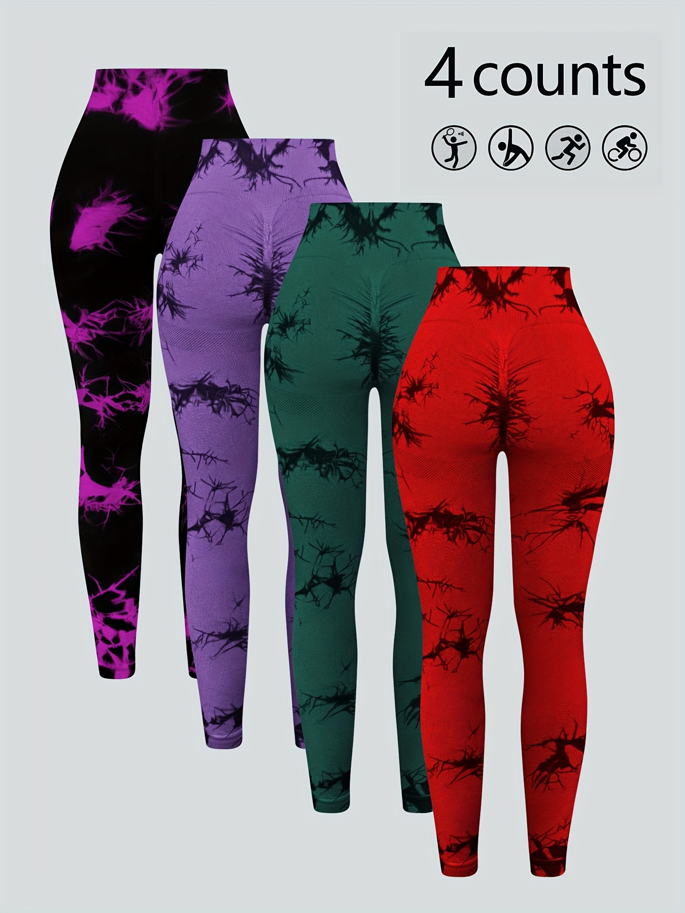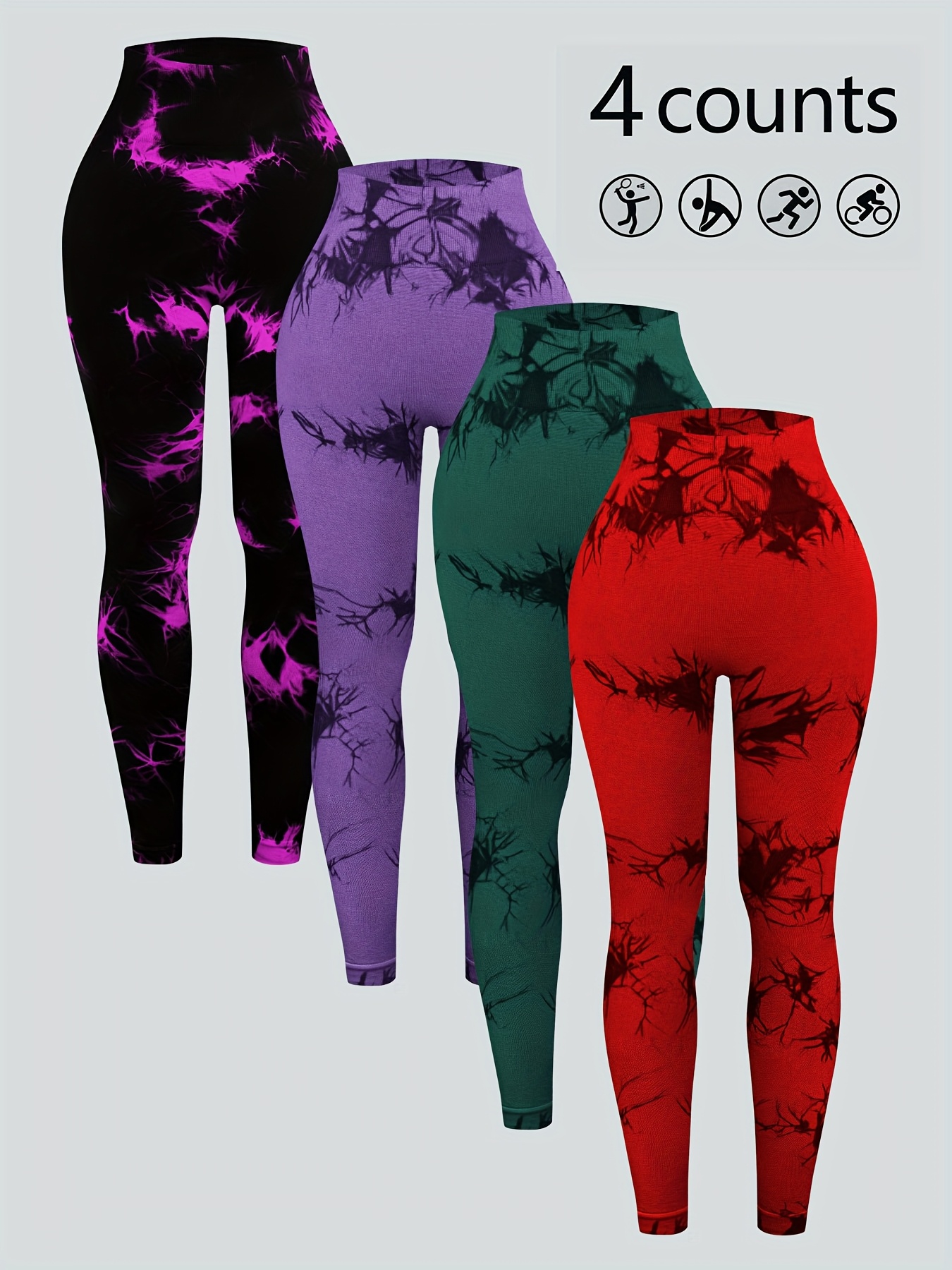 Set of 4 Tie-Dye High-Waisted Leggings for Women, Perfect for Sports And Yoga.