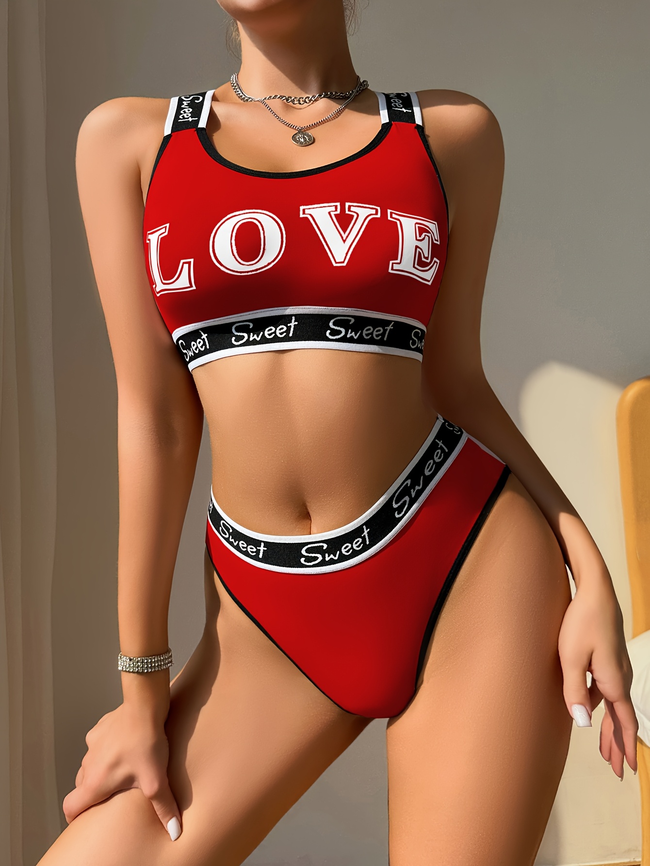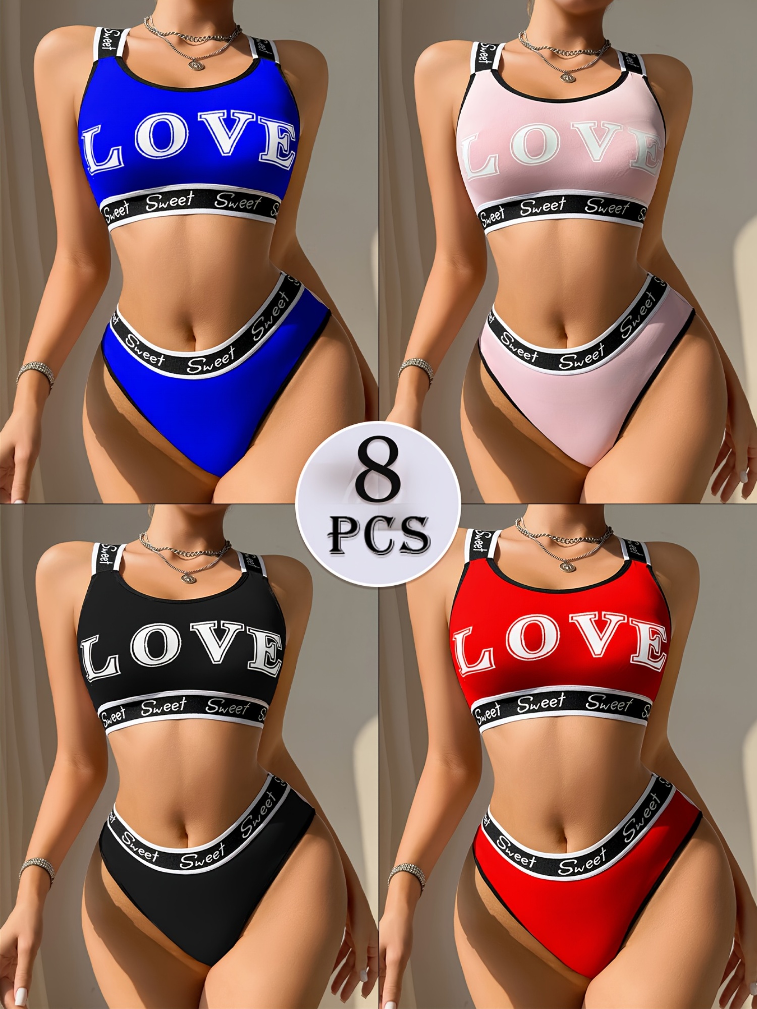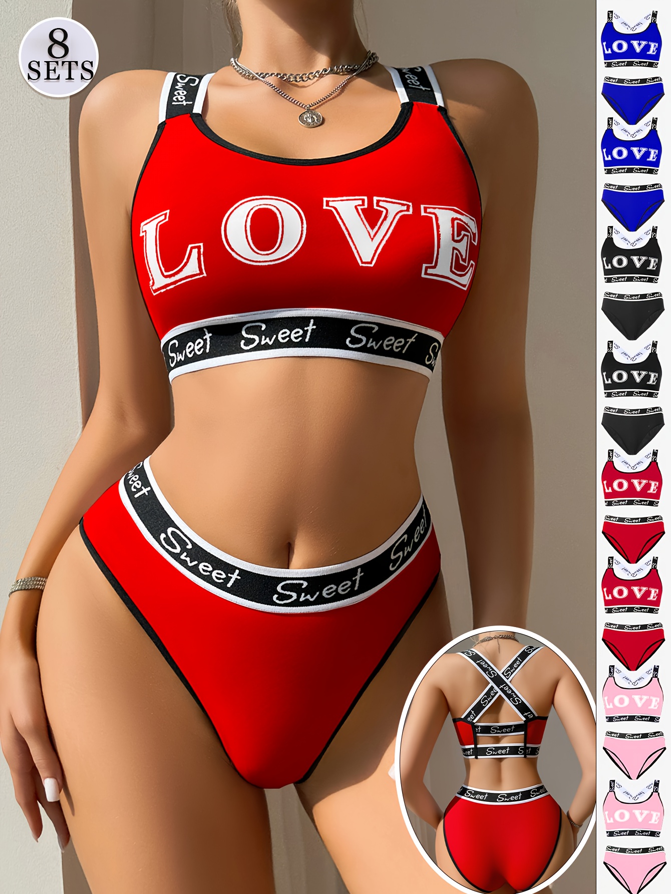 [Sexy Bra Set] 8pcs Women’s Sexy Bra Set | Cross-Back Push-Up Bra with Low-Rise Thong, Comfortable Soft Breathable, Contrast Straps, Quick-Dry Underwear Set
