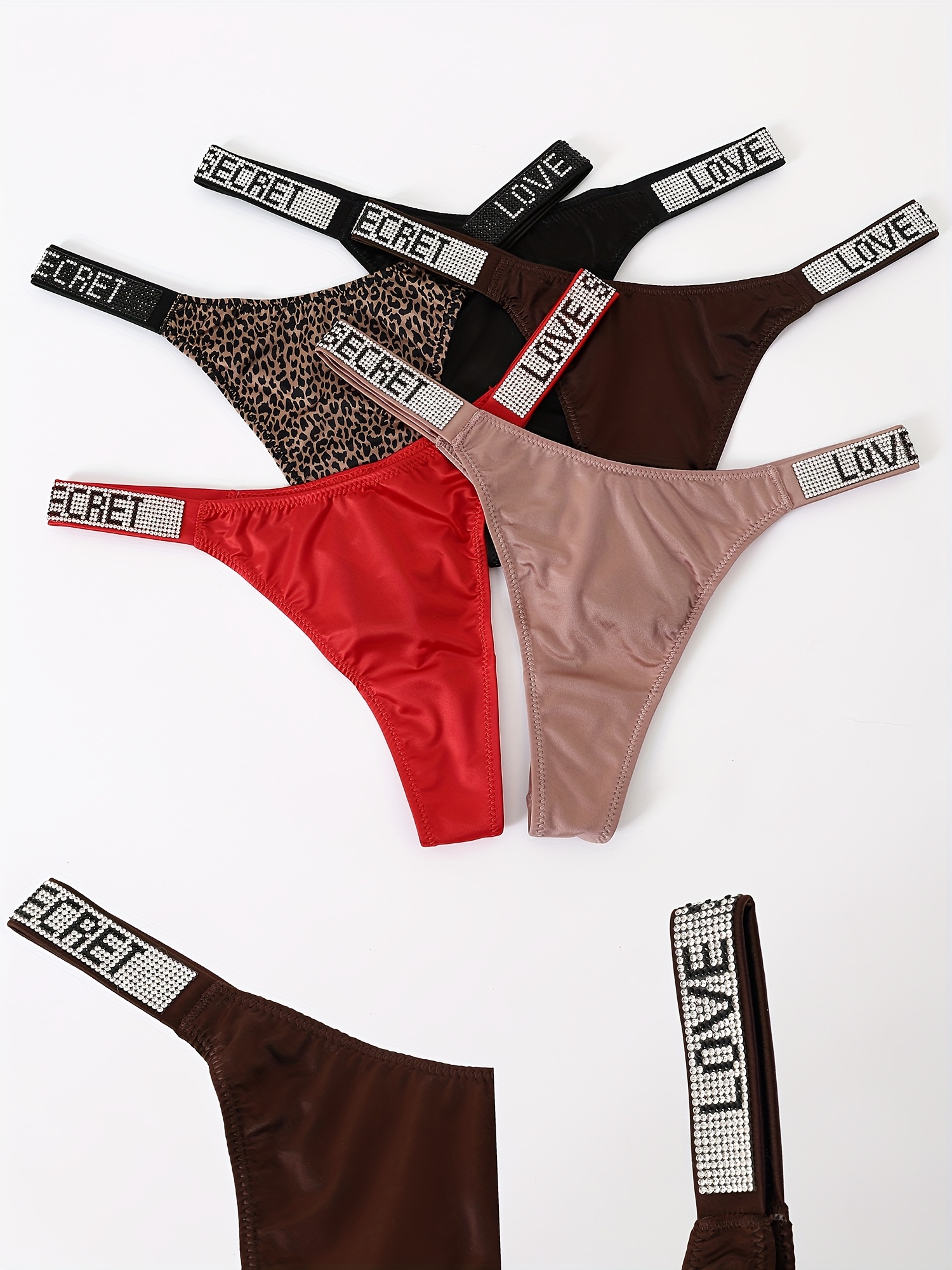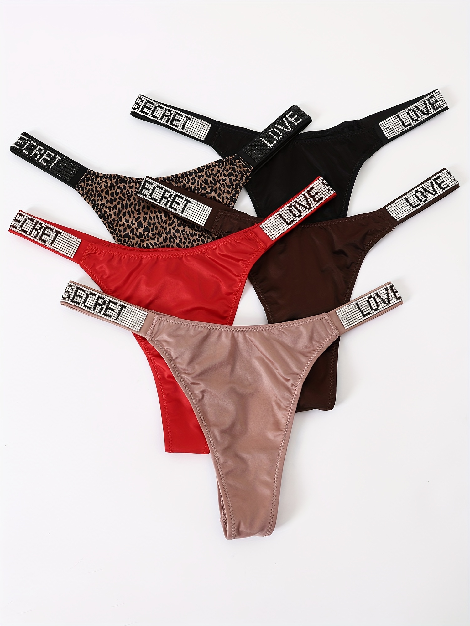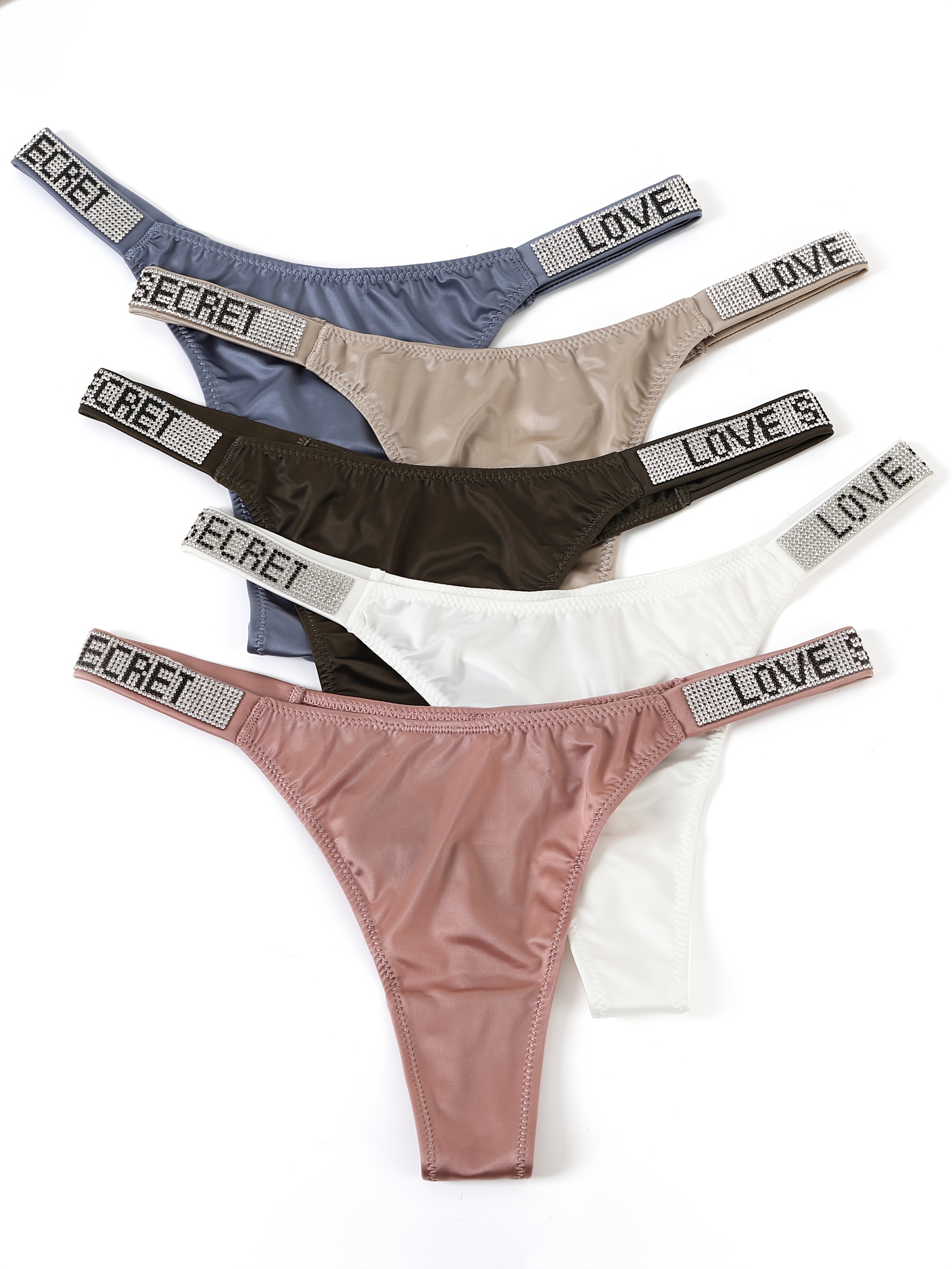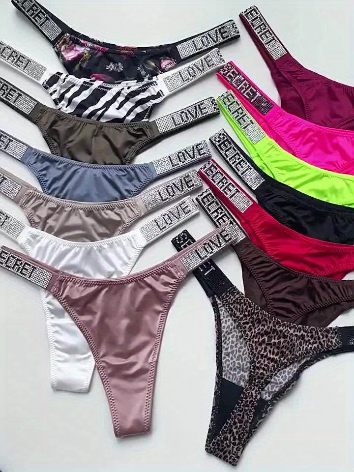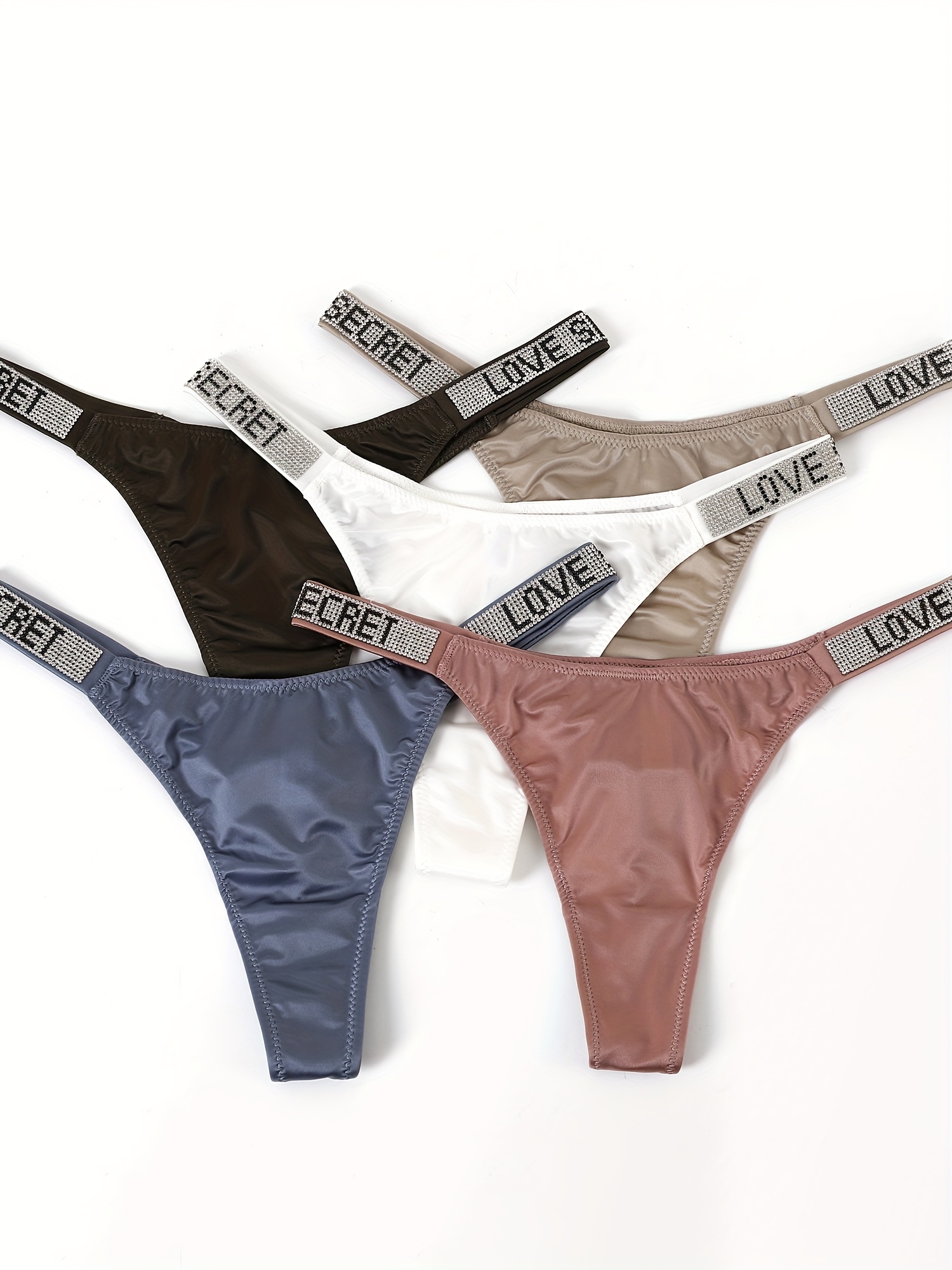 [Sexy Rhindiamonds Thongs] 5 Sexy Rhindiamonds Thongs – Women’s Fitness Exercise Hip Lift Low Waist High Slit Fashion T Pants, Comfortable Breathable Underwear