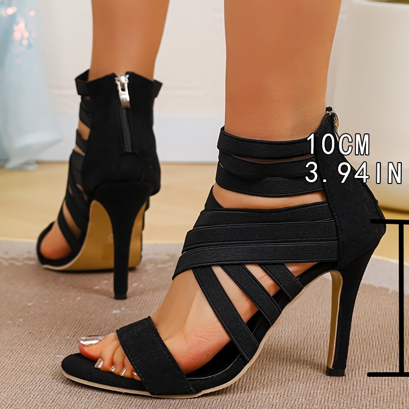 Sexy Strappy High Heel Sandals for Women | Stiletto, Cross Straps, Zipper Closure, Fabric Upper, Synthetic Inner and Sole, All-Season Wear