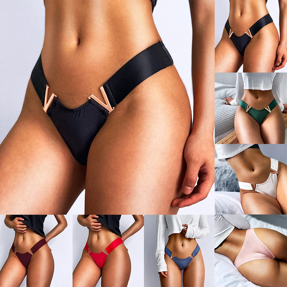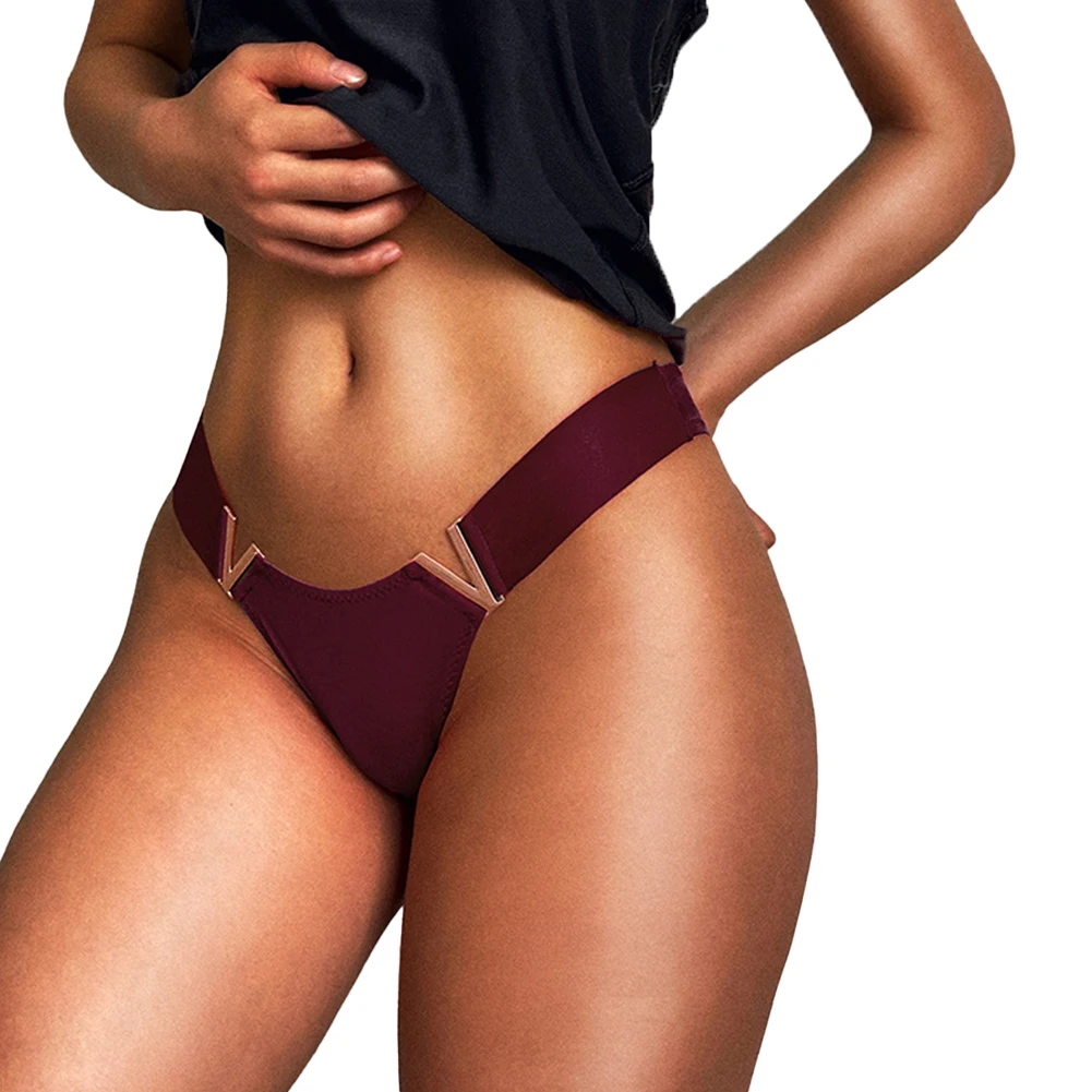 Sexy Women V-shaped Metal Sports Hip Lift Thongs Lingeries Low-waist Underwear Panties G-string T-back Nightwear Underpants