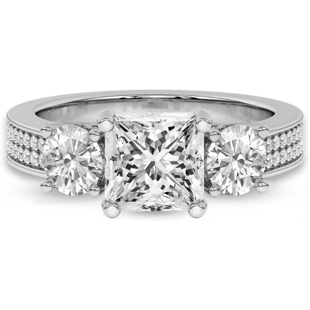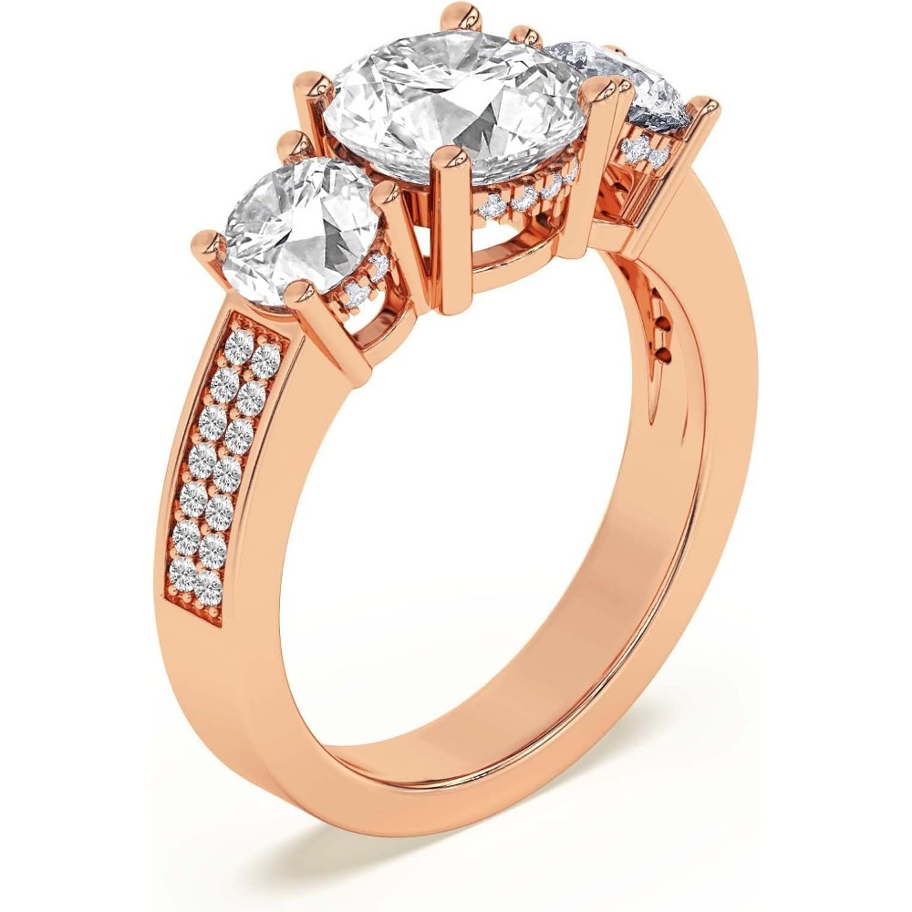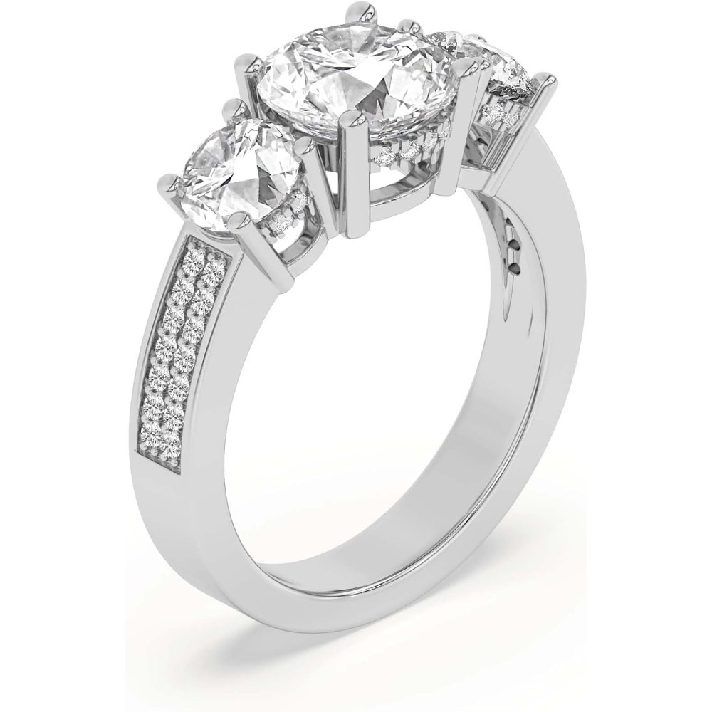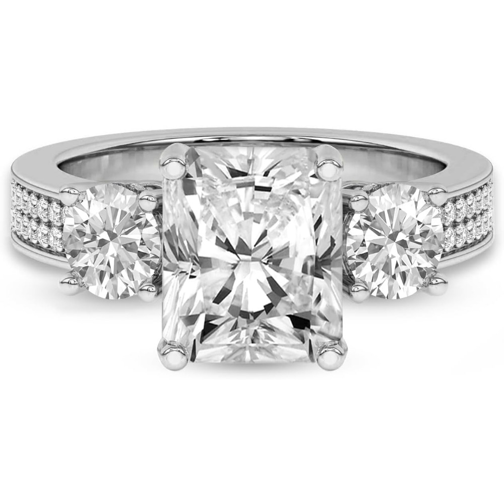 Silver 925 Setting 1-6 Carat Round Four-Prong Setting Triple-Stone Moissanite Ring Engagement/Anniversary/Wedding Ring Women’S Promise Ring Wedding Christmas Gift Birthday Gift Valentine’S Day Gift Love Lasts Forever