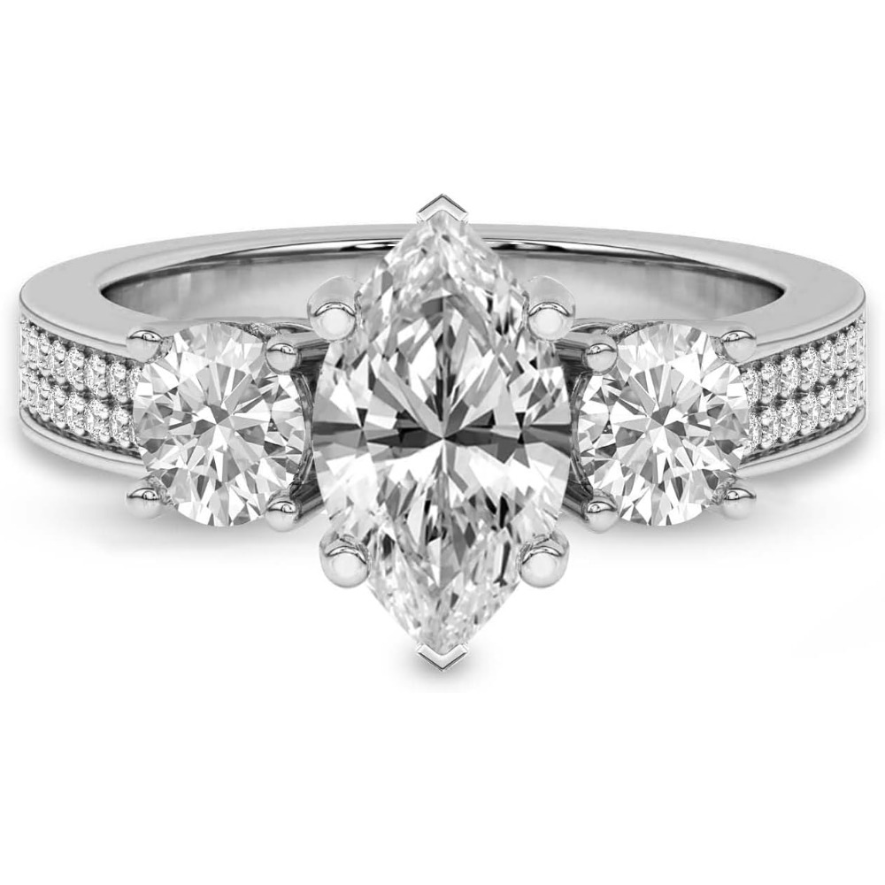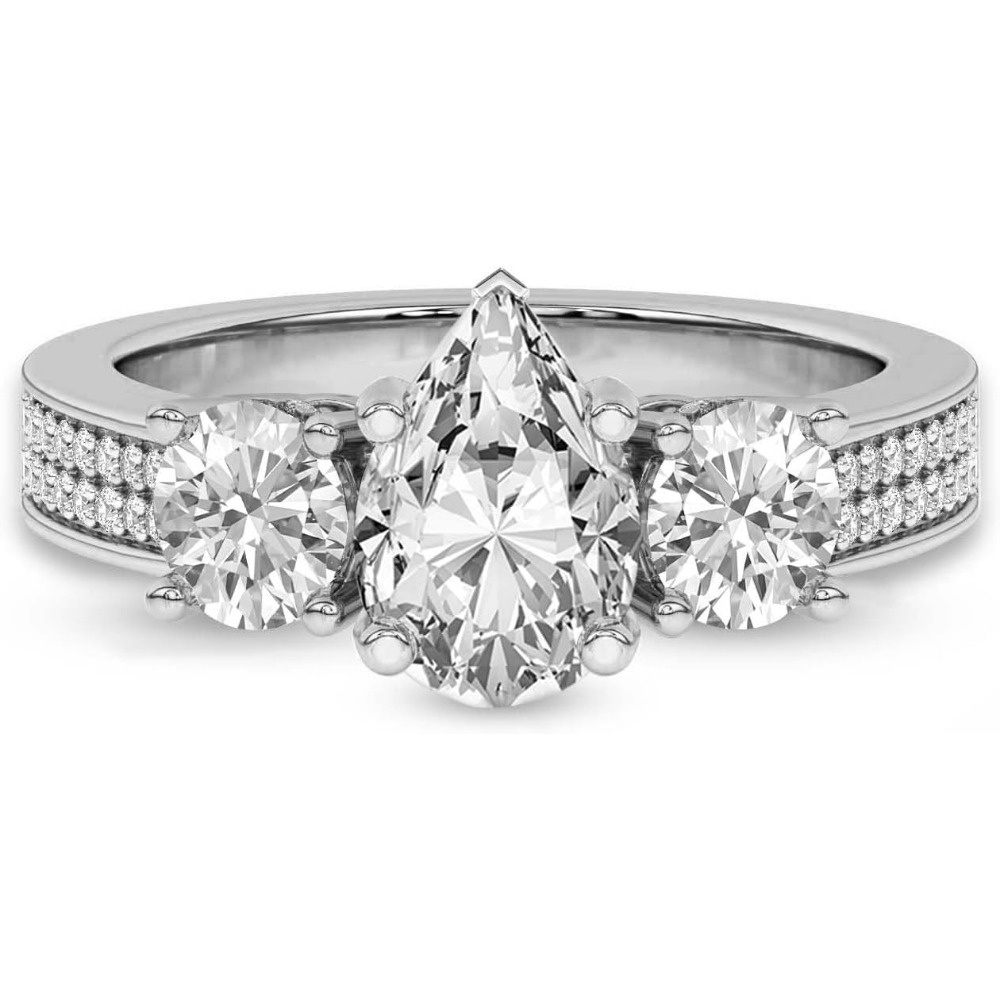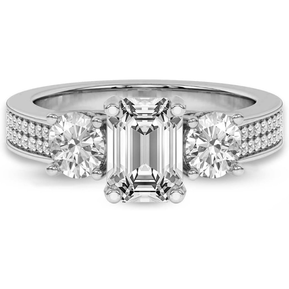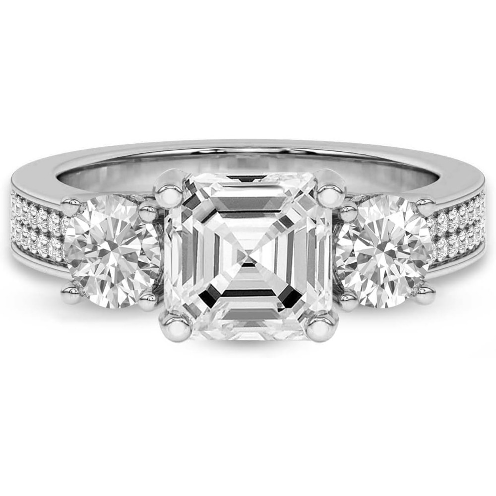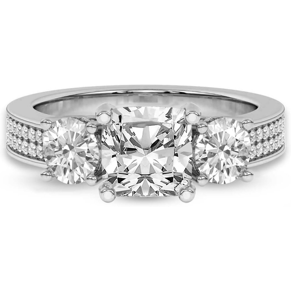 Silver 925 Setting 1-6 Carat Round Four-Prong Setting Triple-Stone Moissanite Ring Engagement/Anniversary/Wedding Ring Women’S Promise Ring Wedding Christmas Gift Birthday Gift Valentine’S Day Gift Love Lasts Forever