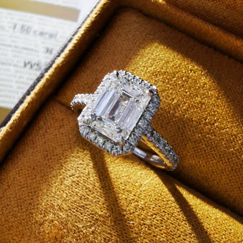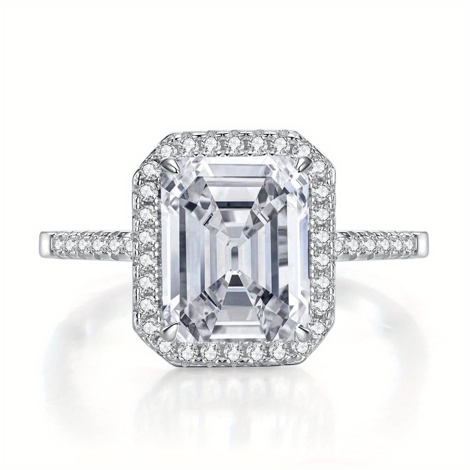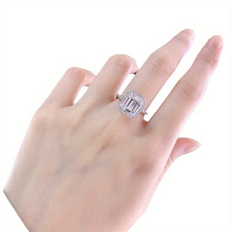 Silver jewelry new S925 sterling silver imitation high carbon Moissanite luxury inlaid retro 8 * 10mm rectangular ring, unisex gifts for girlfriends, Mother’s Day, Valentine’s Day