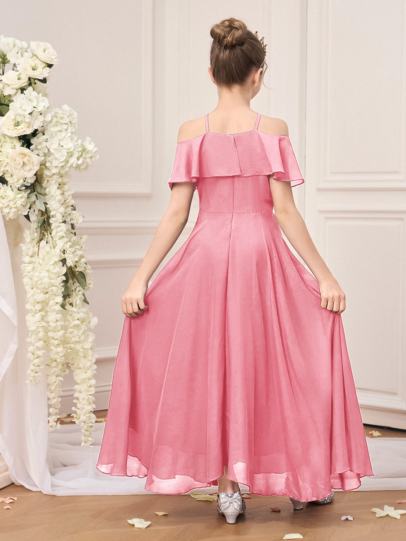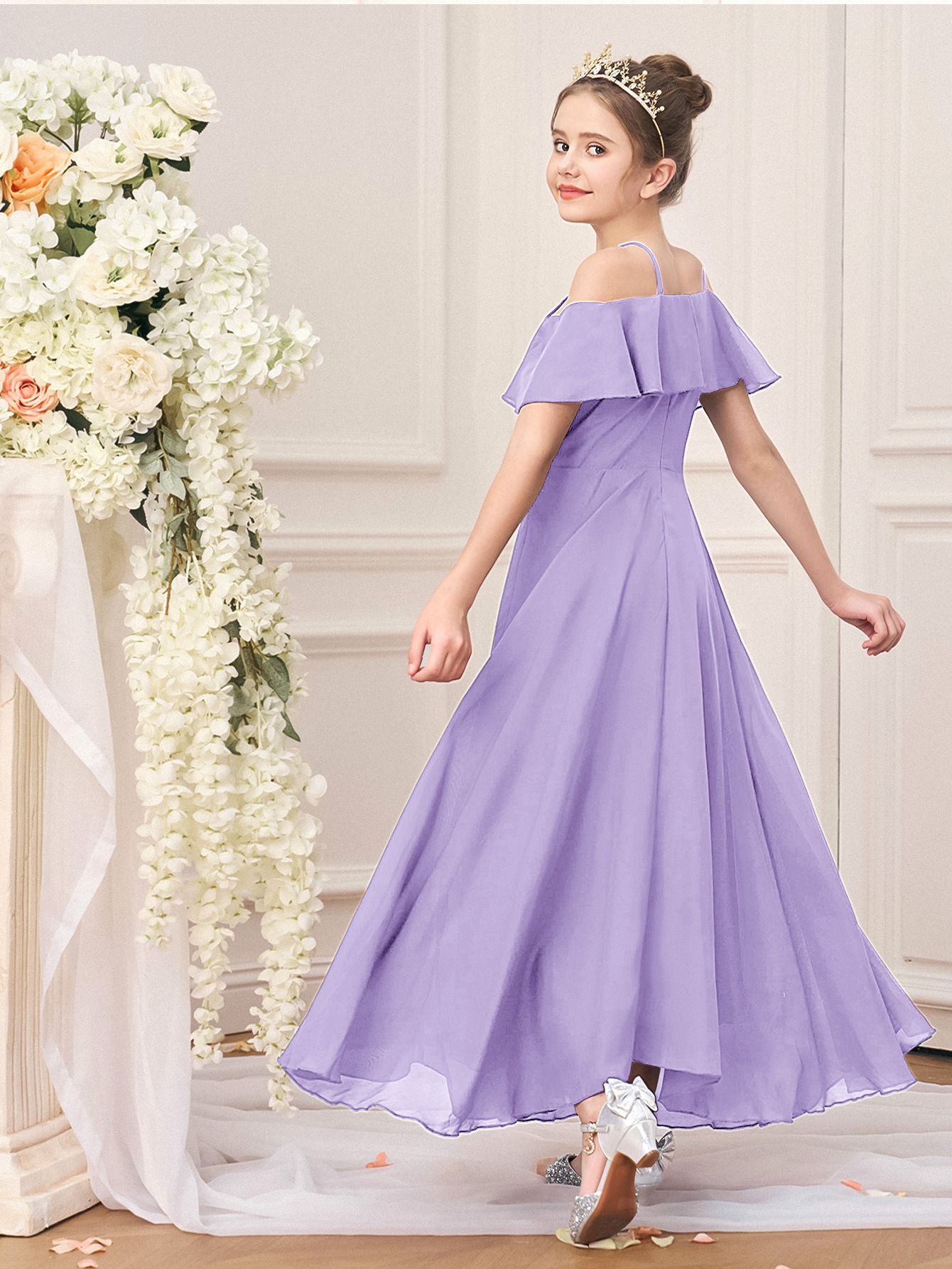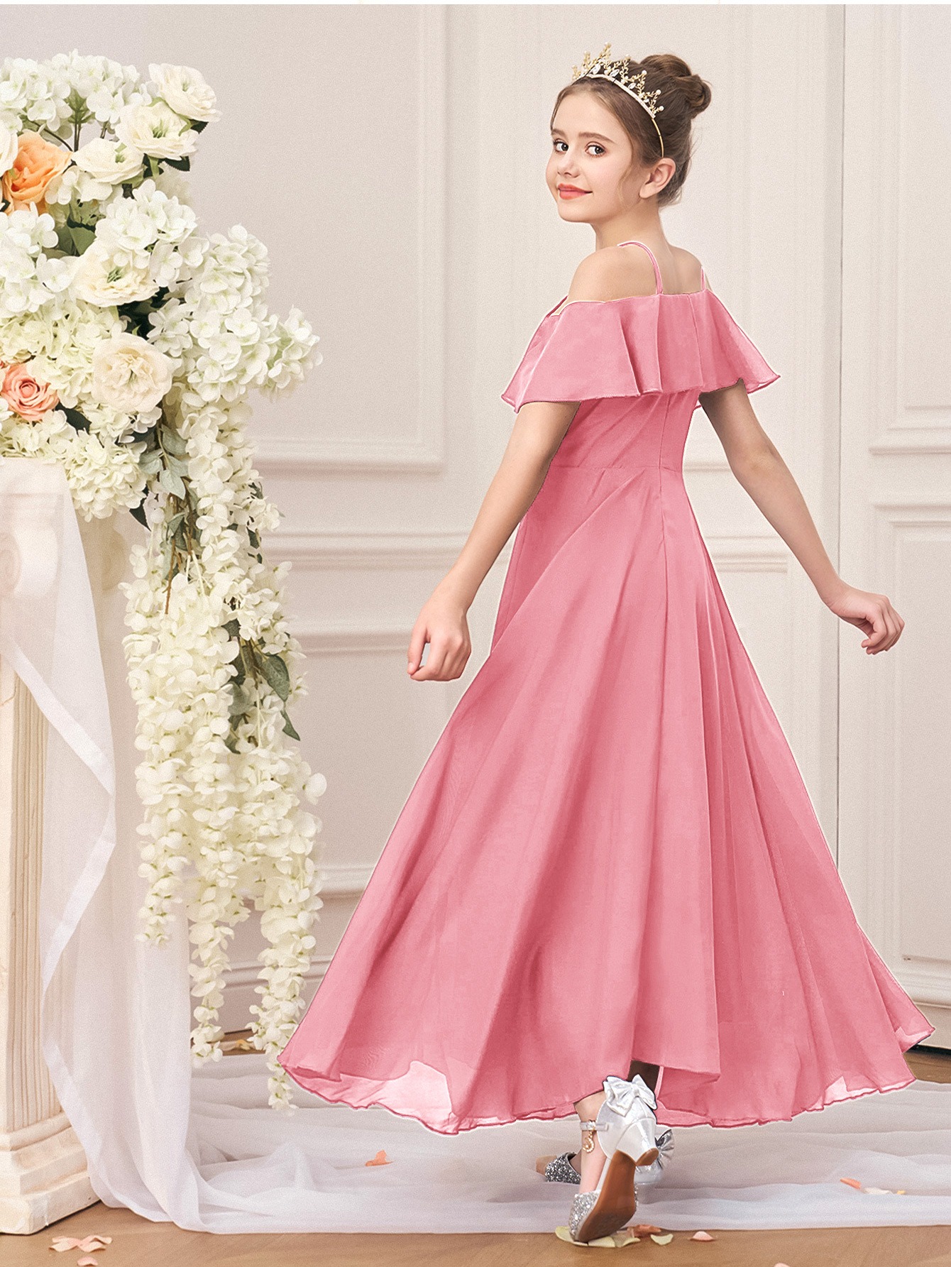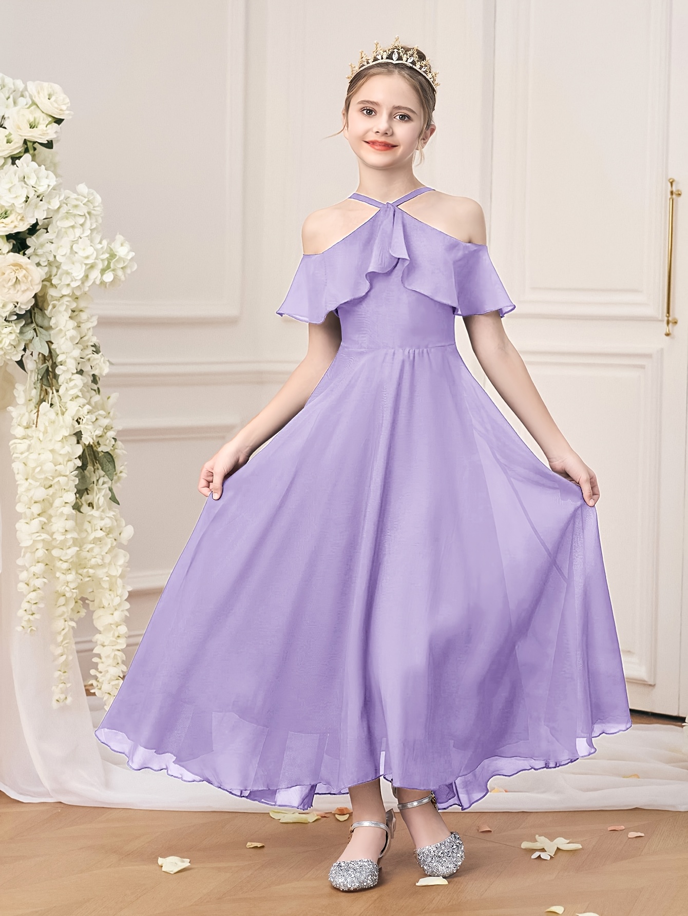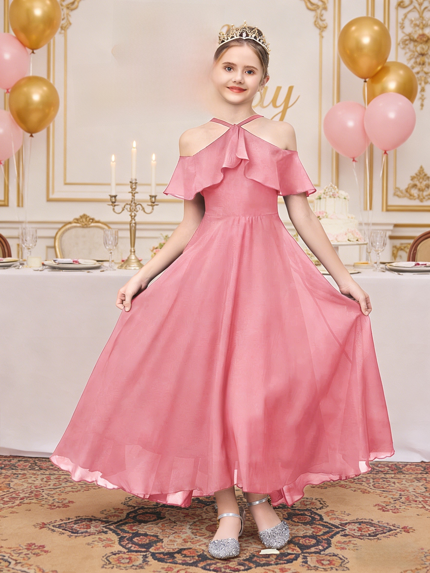 Sleeveless Princess Gown Made of for Girls Aged 8 to 15, Perfect for Flower Girl Parties And Formal Occasions with a Tulle Skirt