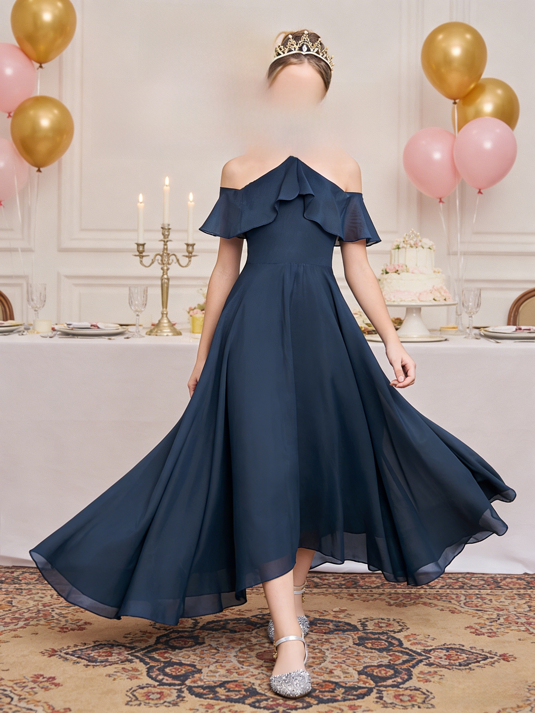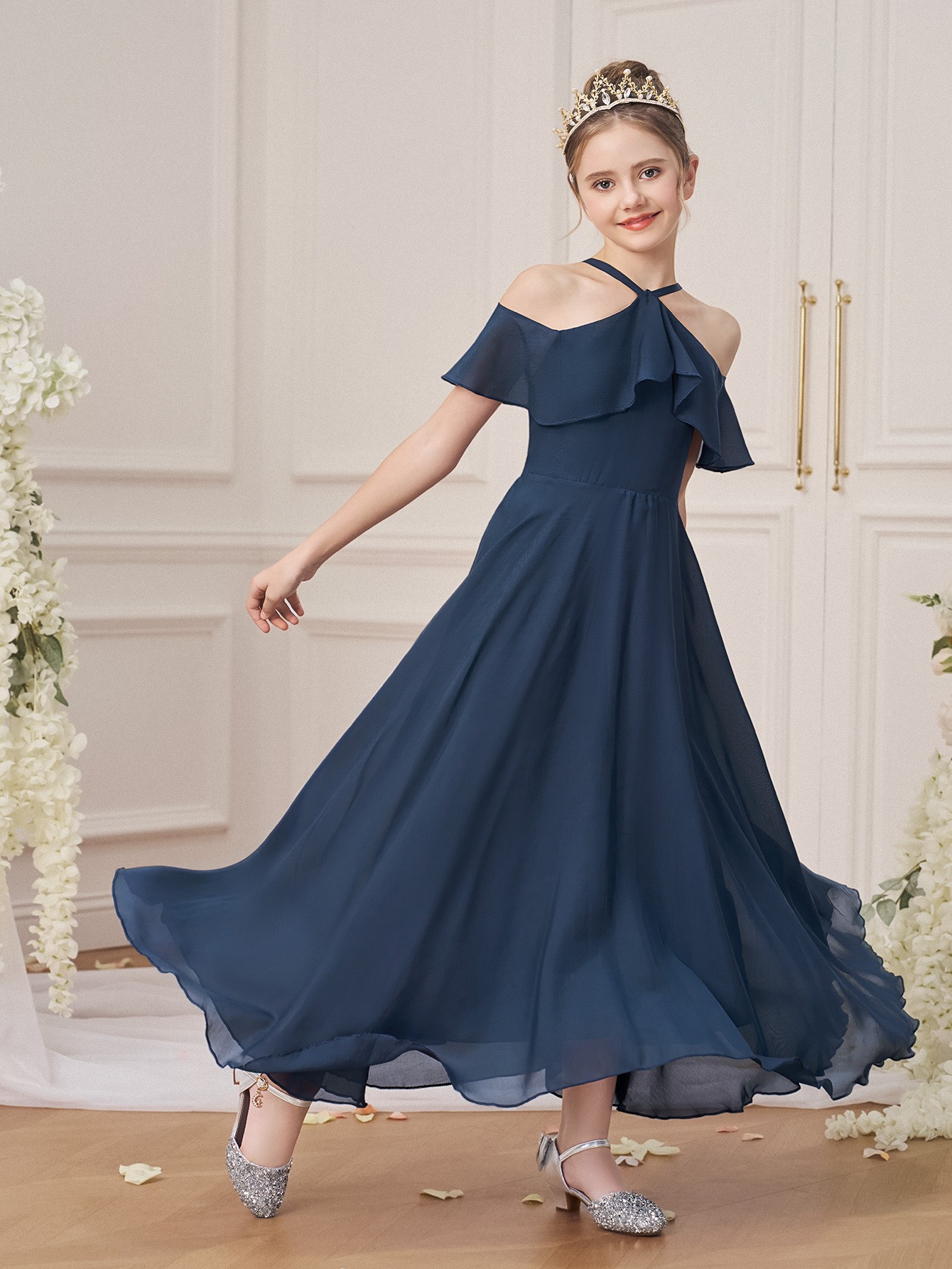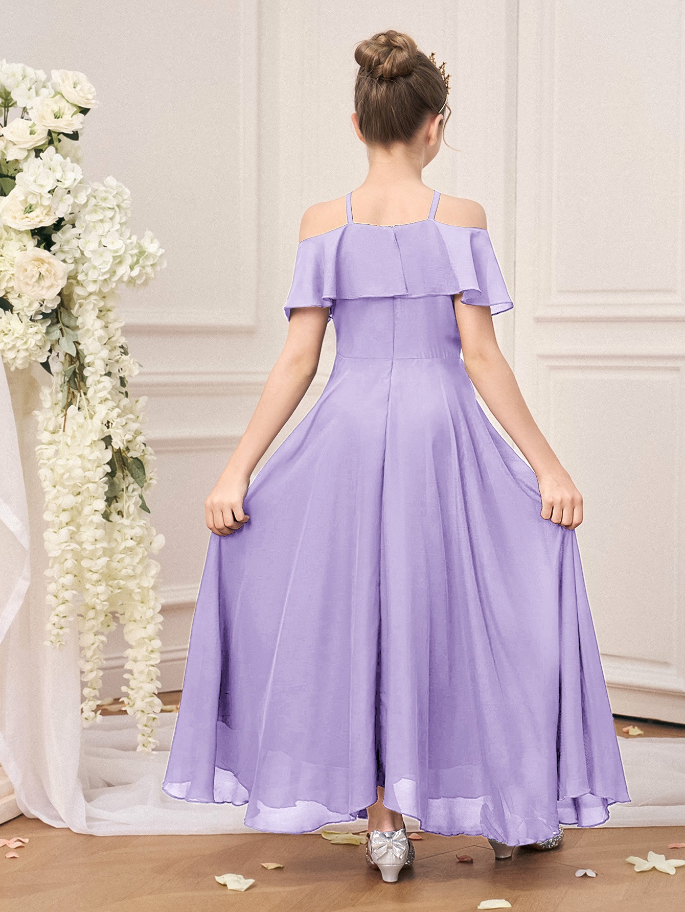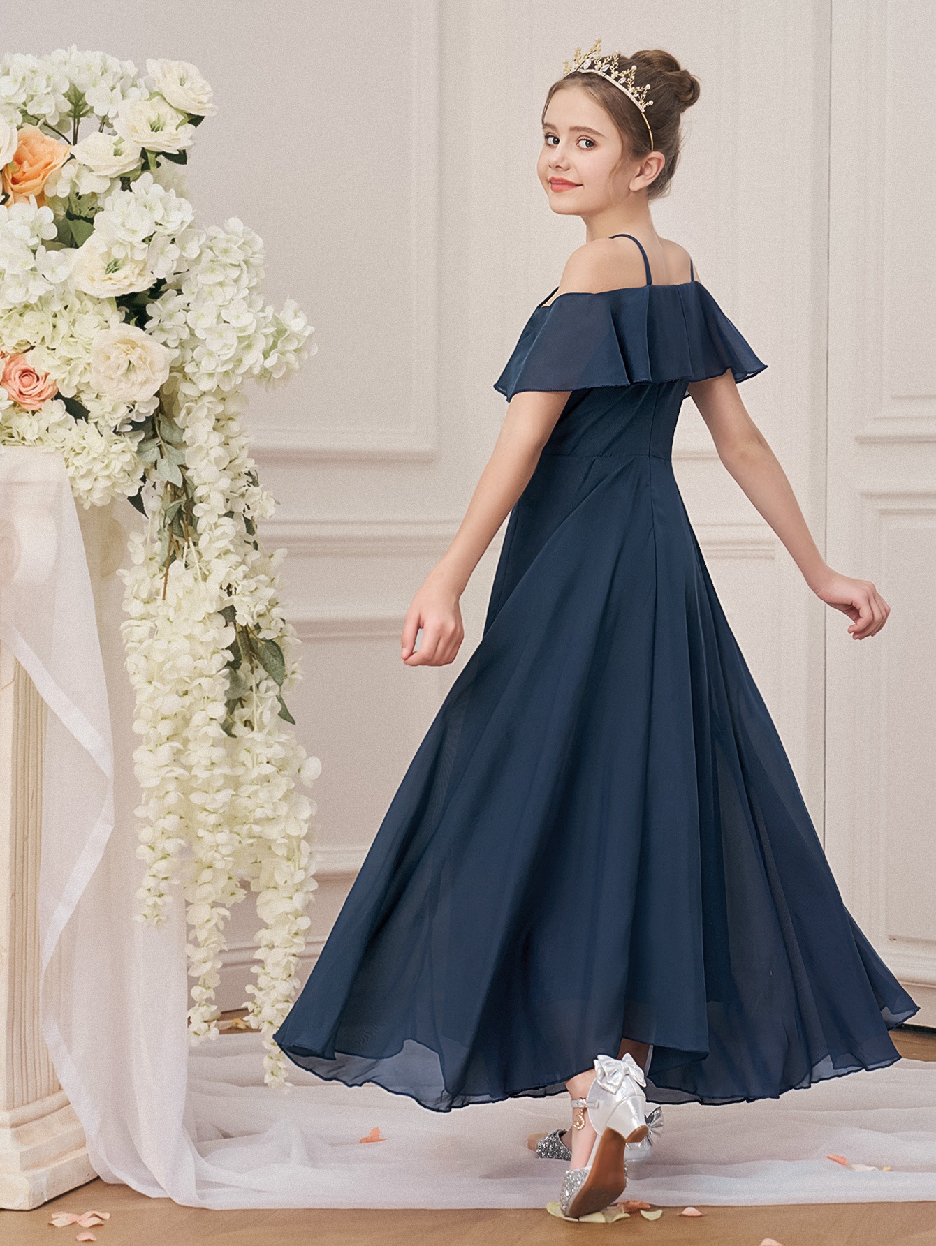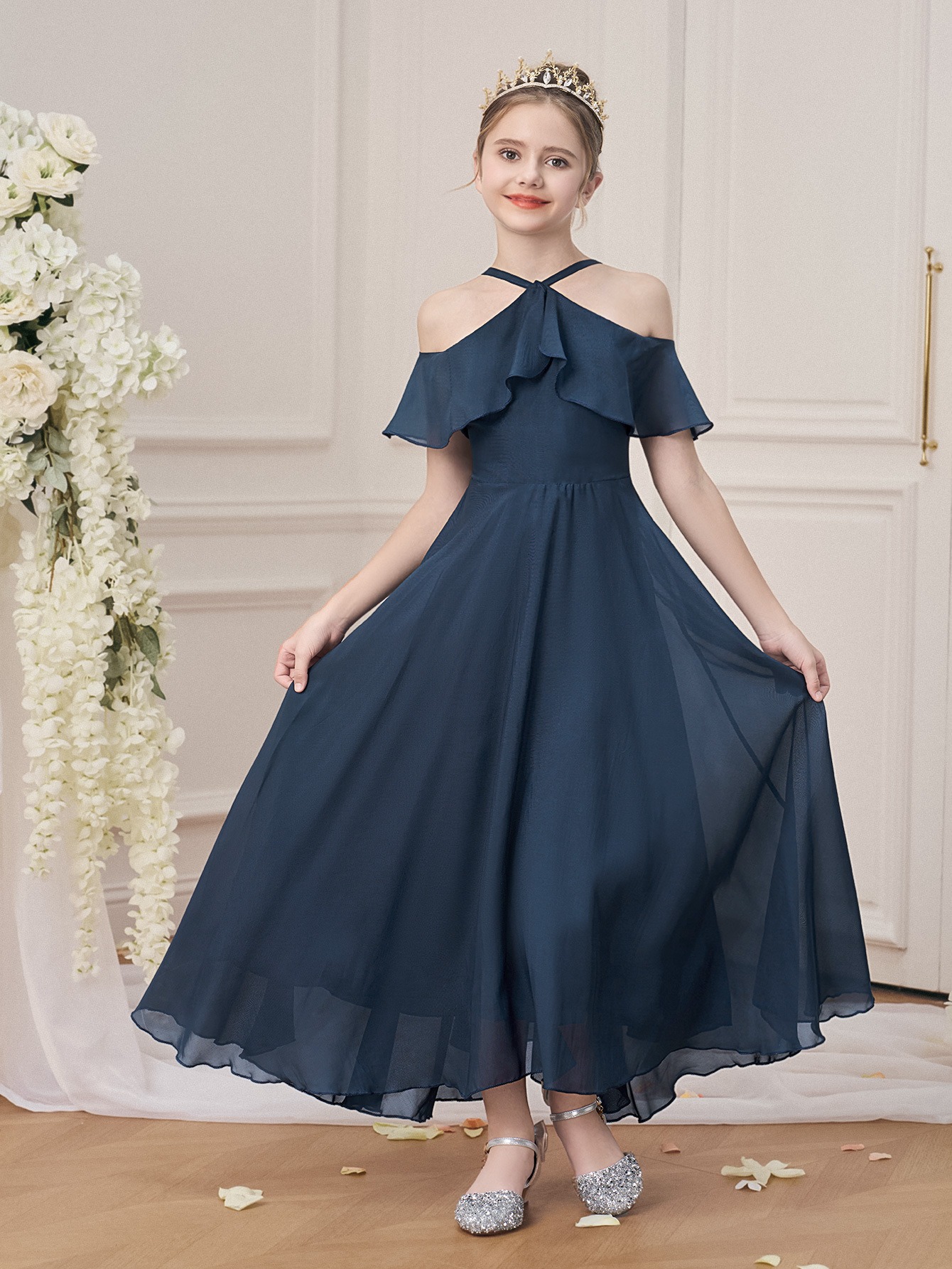 Sleeveless Princess Gown Made of for Girls Aged 8 to 15, Perfect for Flower Girl Parties And Formal Occasions with a Tulle Skirt