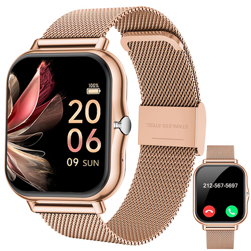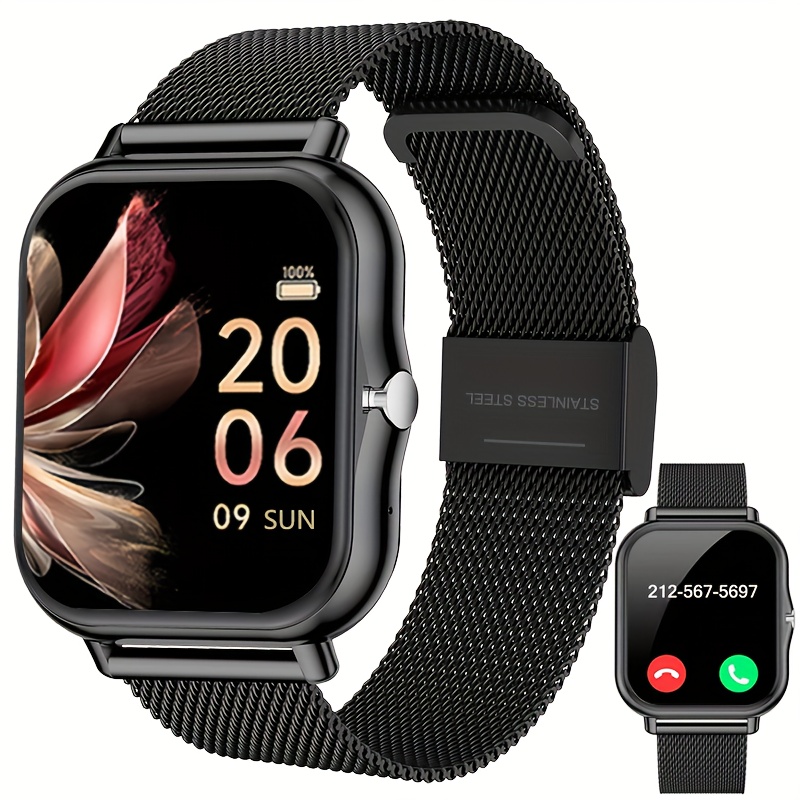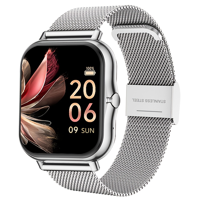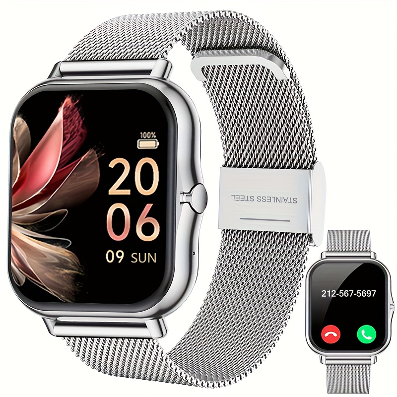 [Smart Watch | Full Touch] Smart Watch | Full Touch Screen, Wireless Bluetooth Calling, 100+ Sports Modes | Weather, Stopwatch, Timer, Alarm, Stylish Minimalist Design, Alloy Case, Premium Steel Strap, Compatible w/