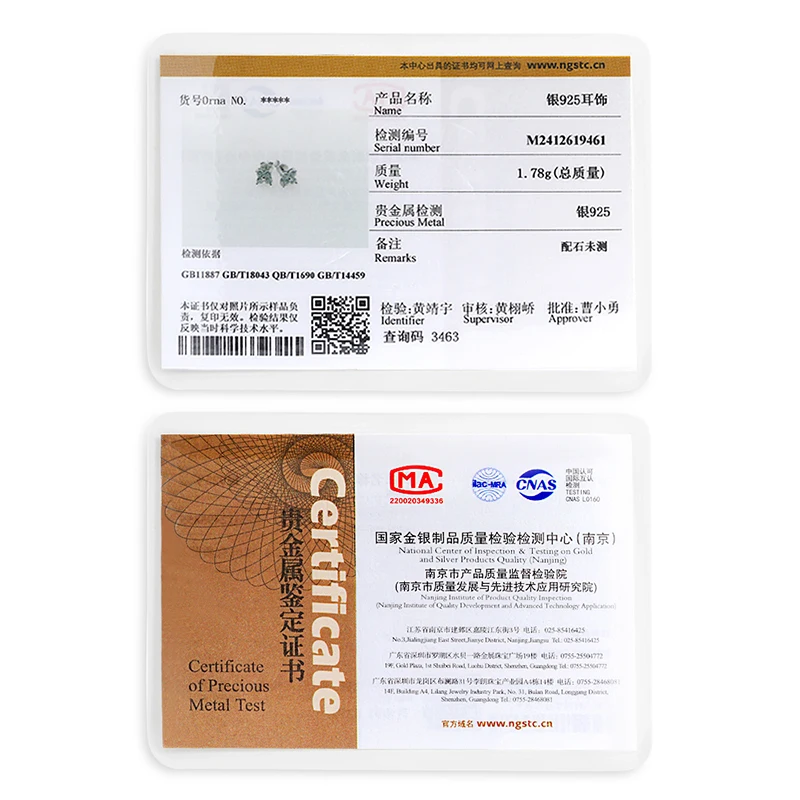 All of our products are made of S925 pure silver+18k white gold plated+AF technology protective film, which can maximize the retention of silver color while maintaining product aesthetics.Our materials support testing by any third-party organization.
