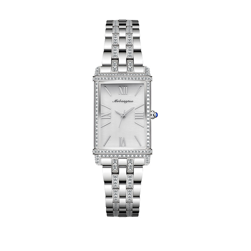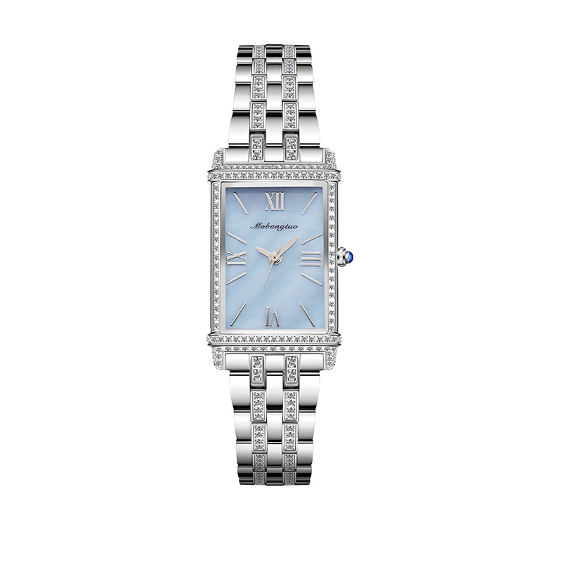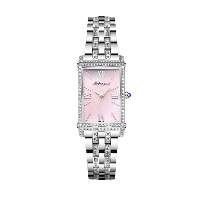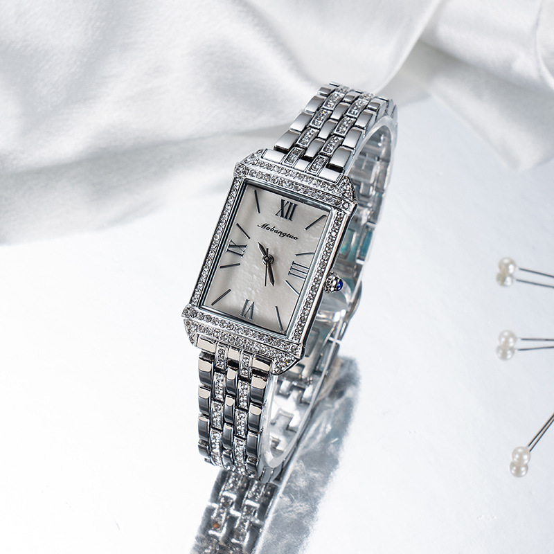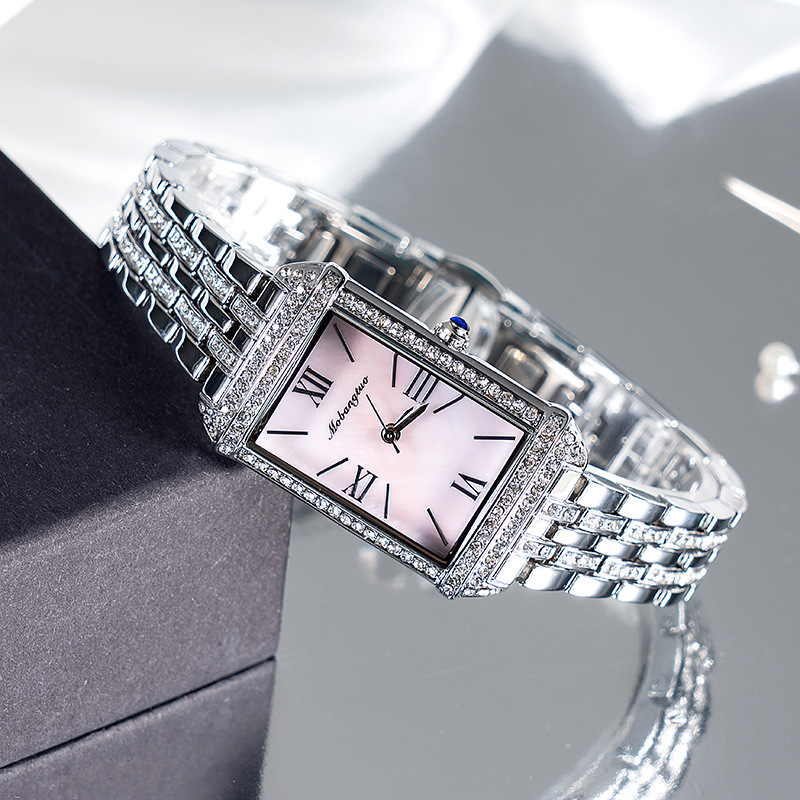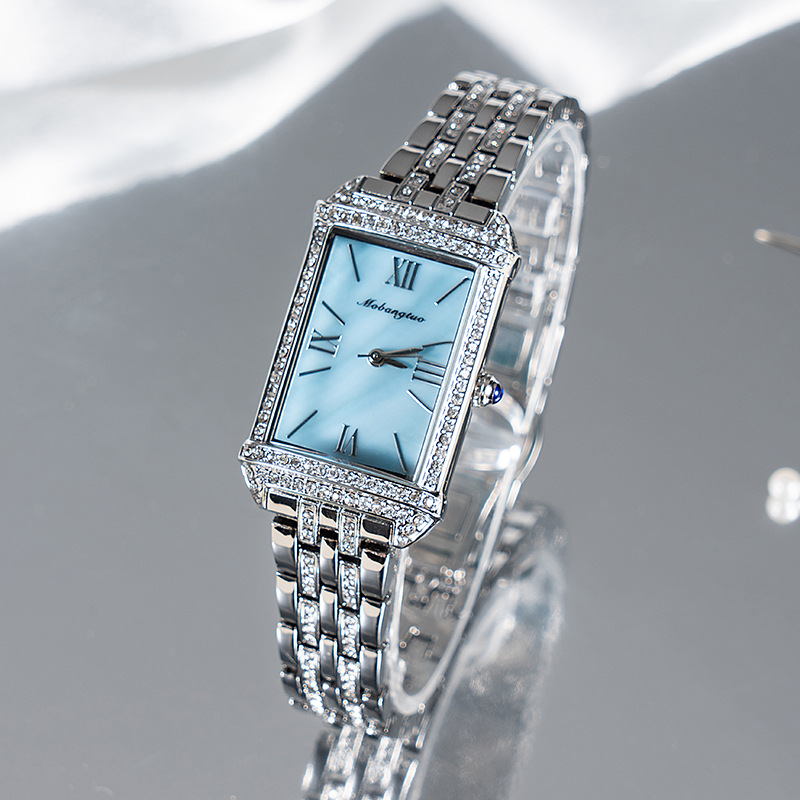 Source Factory -Studded Square Quartz Watch for Women Fashion Hot-Selling Steel Band Mother-of- Wristwatch Export Export One-Piece Dropshipping