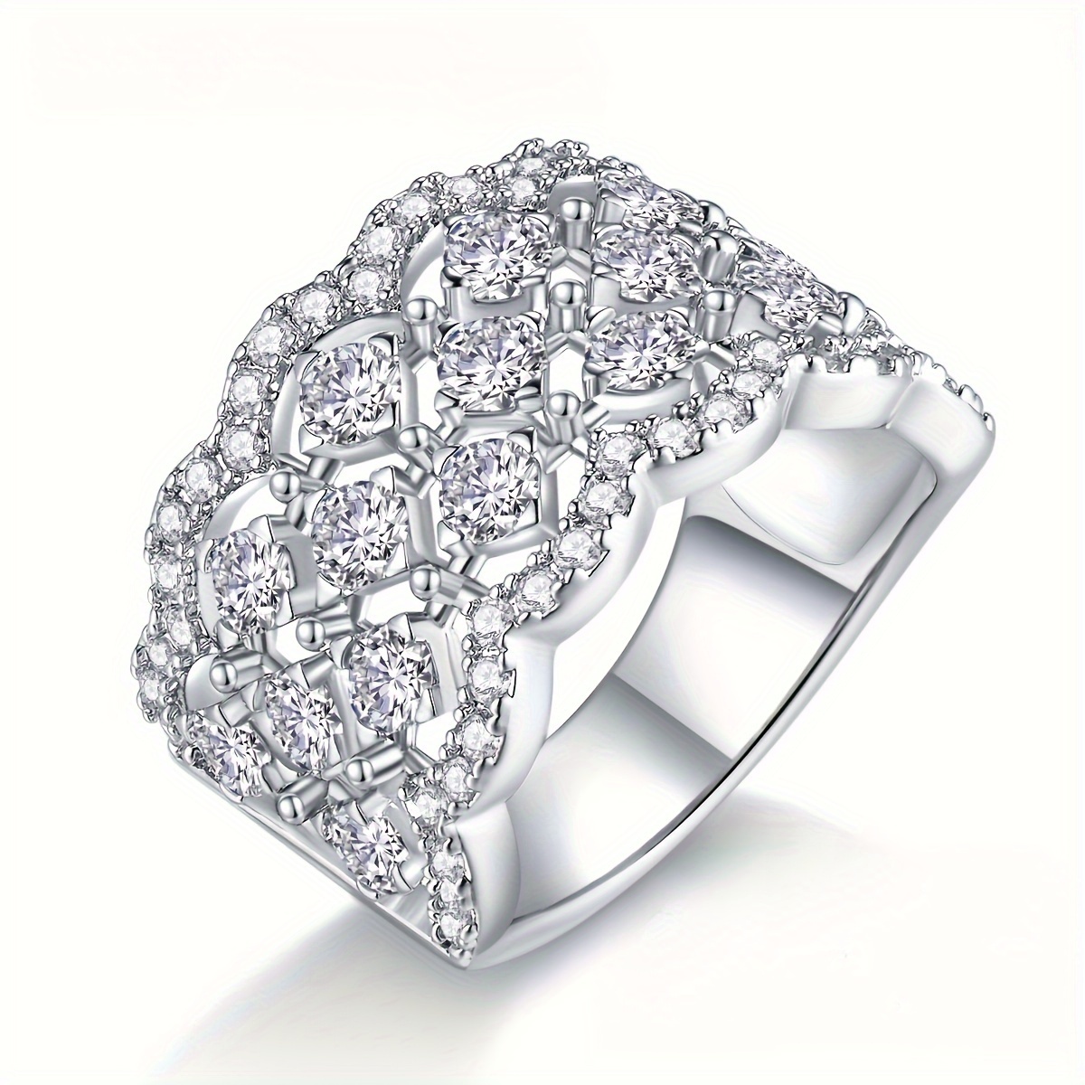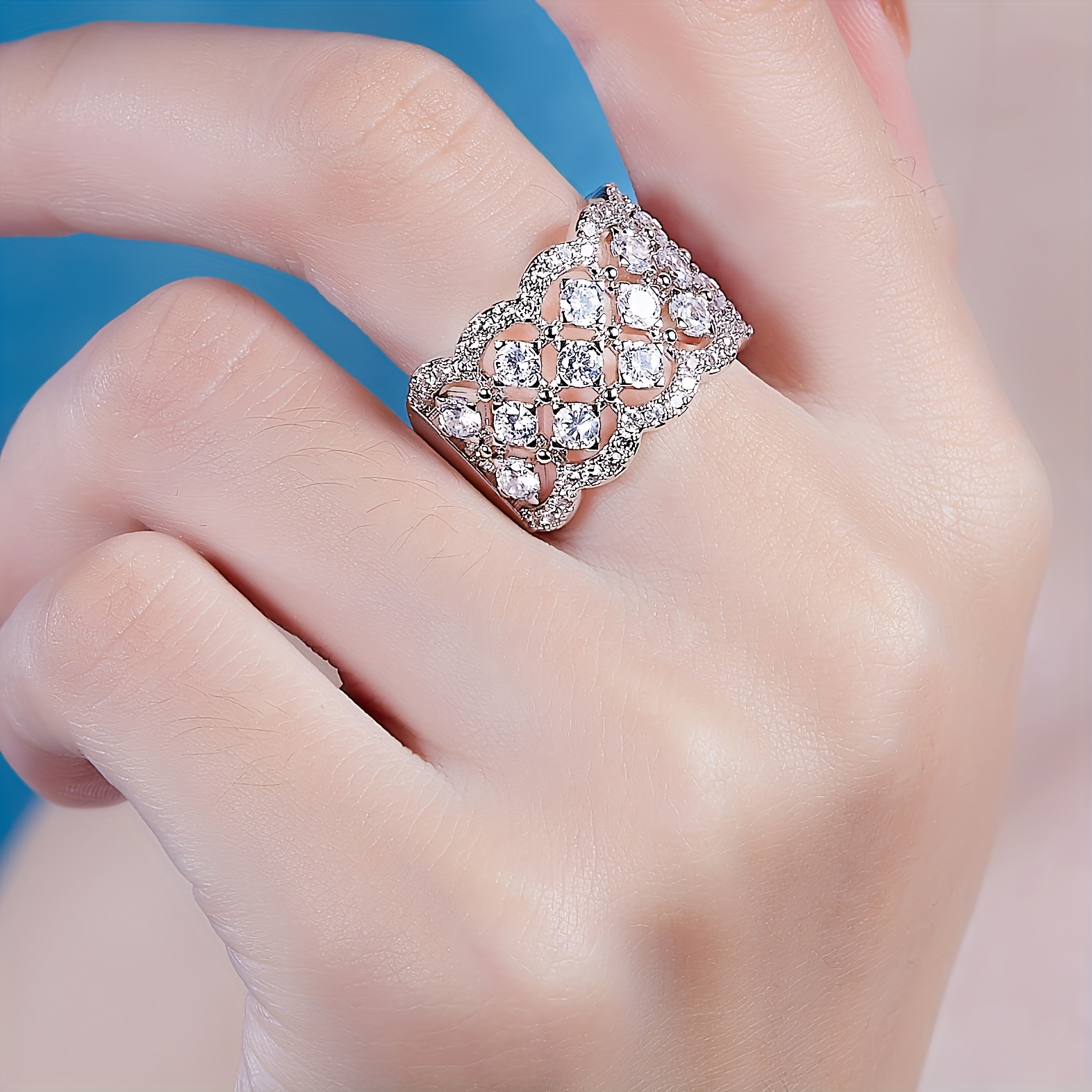 “There is a wonderful tactile quality to this ring; the textured ‘small fragrant’ design feels premium and substantial against the skin. Unlike a traditional solitaire that can feel top-heavy, this band is perfectly balanced, making it ideal for someone who leads an active lifestyle but refuses to compromise on sparkle. When the light hits the eighteen stones simultaneously, it creates a ‘shimmer’ effect rather than a single flash, which looks incredibly sophisticated during a candlelit Christmas dinner or a night out. It feels less like a piece of jewelry and more like a piece of wearable art. It’s the kind of ring you find yourself running your thumb over just to feel the intricate metalwork and the smooth facets of the stones.”