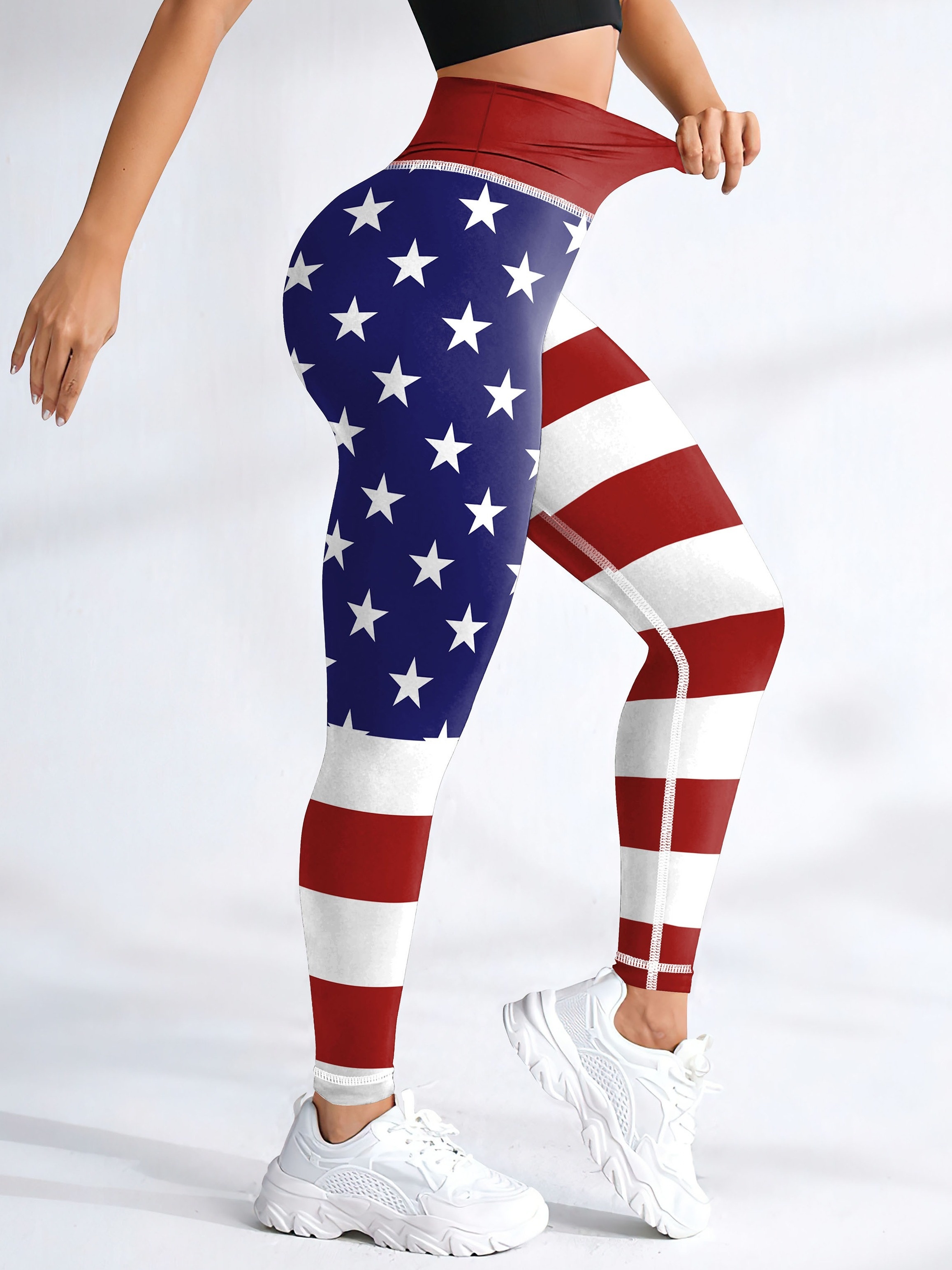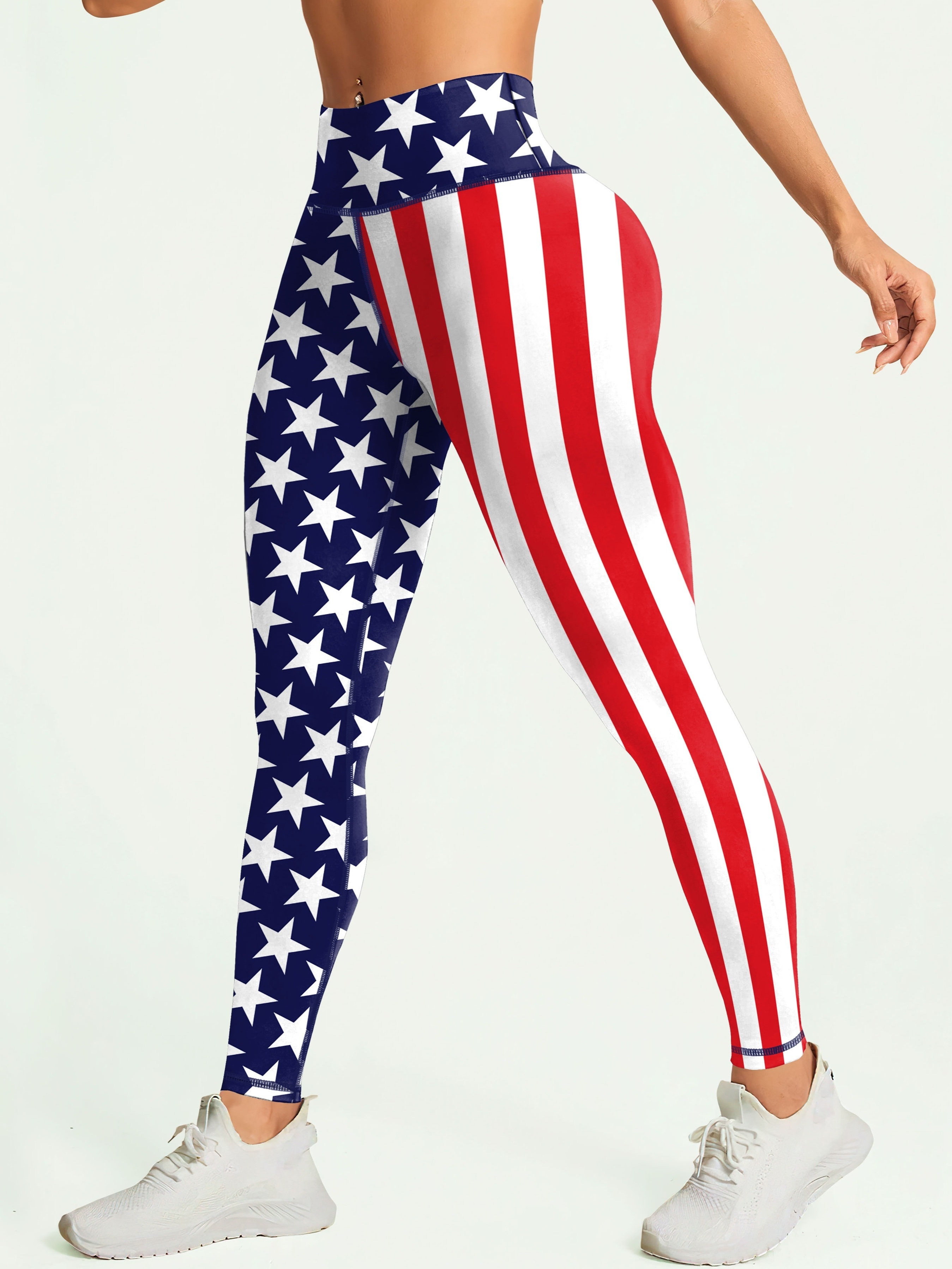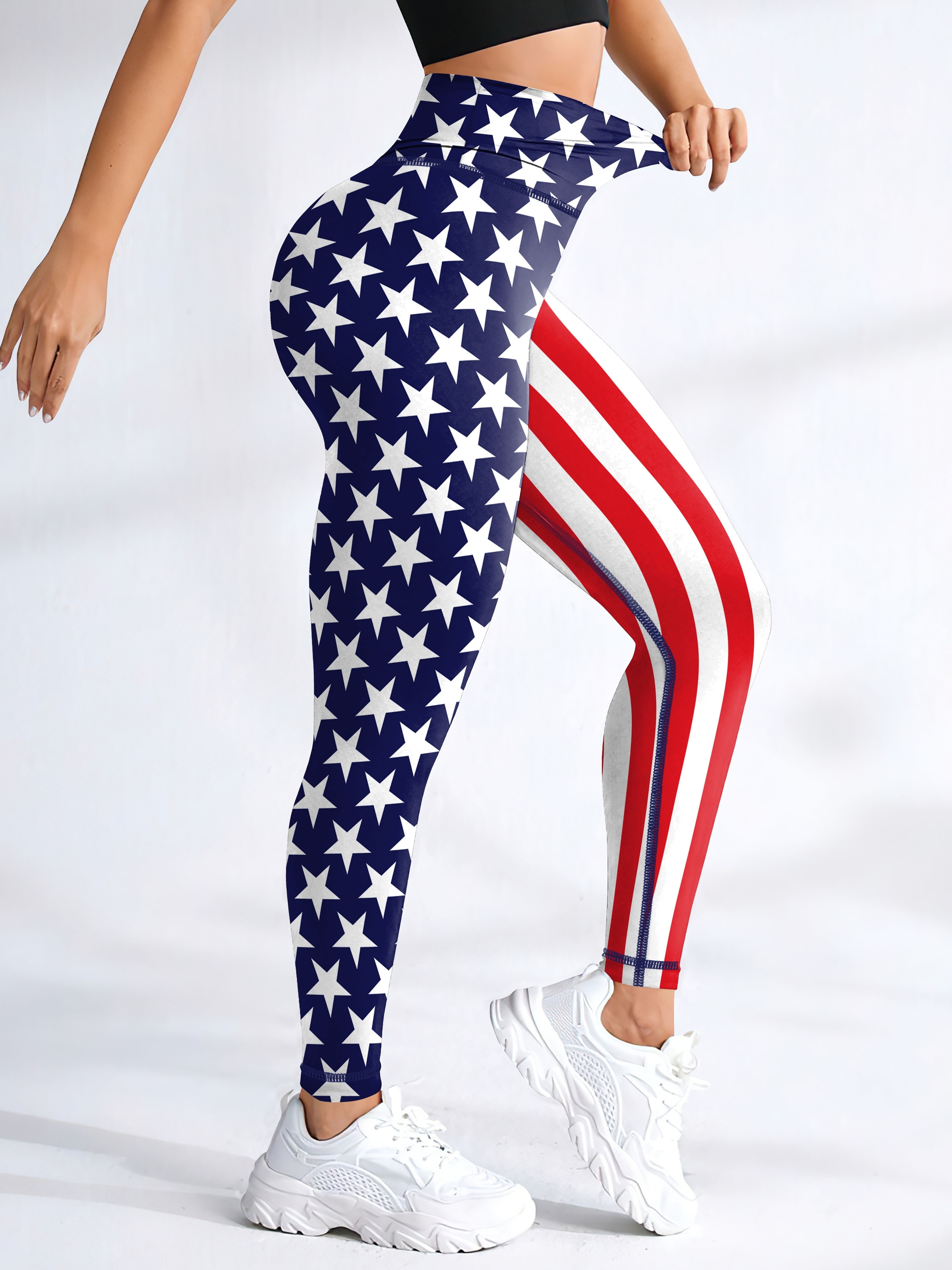 [Stretchy American Flag Yoga Pants] President’s Day American Flag Workout Yoga Pants, Stretchy Fitness Training Sports Leggings, Women’s Activewear
