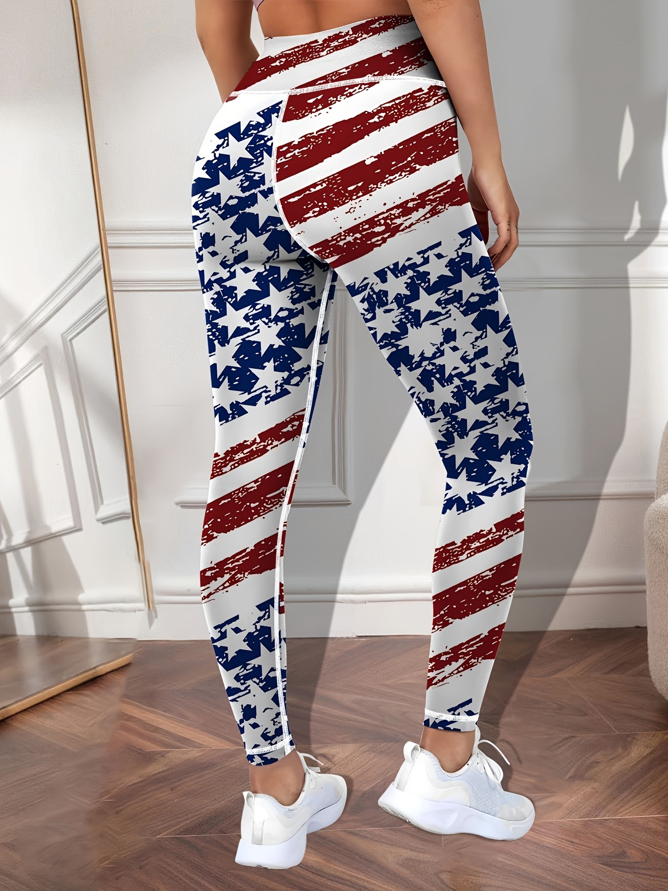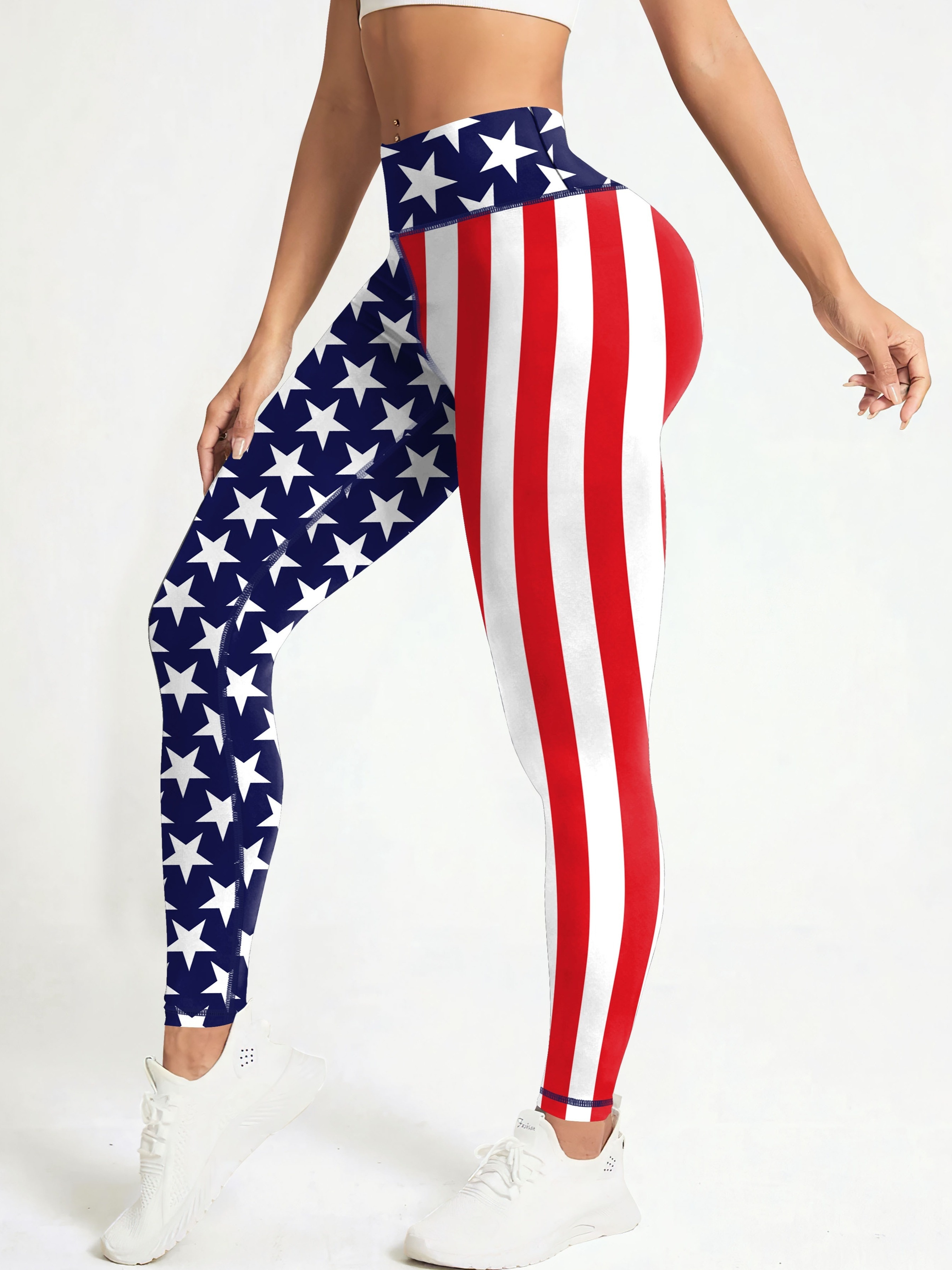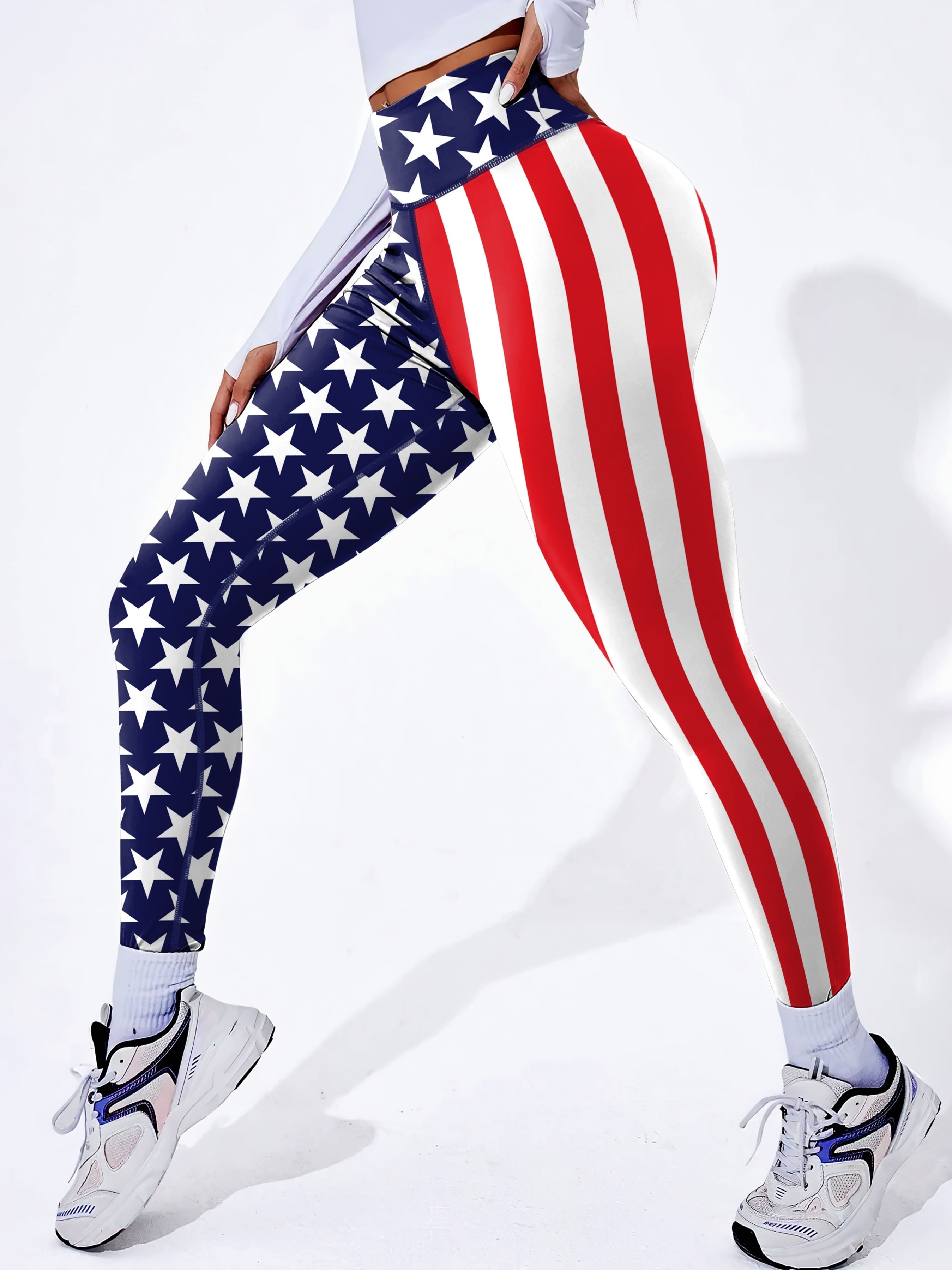[Stretchy American Flag Yoga Pants] President’s Day American Flag Workout Yoga Pants, Stretchy Fitness Training Sports Leggings, Women’s Activewear