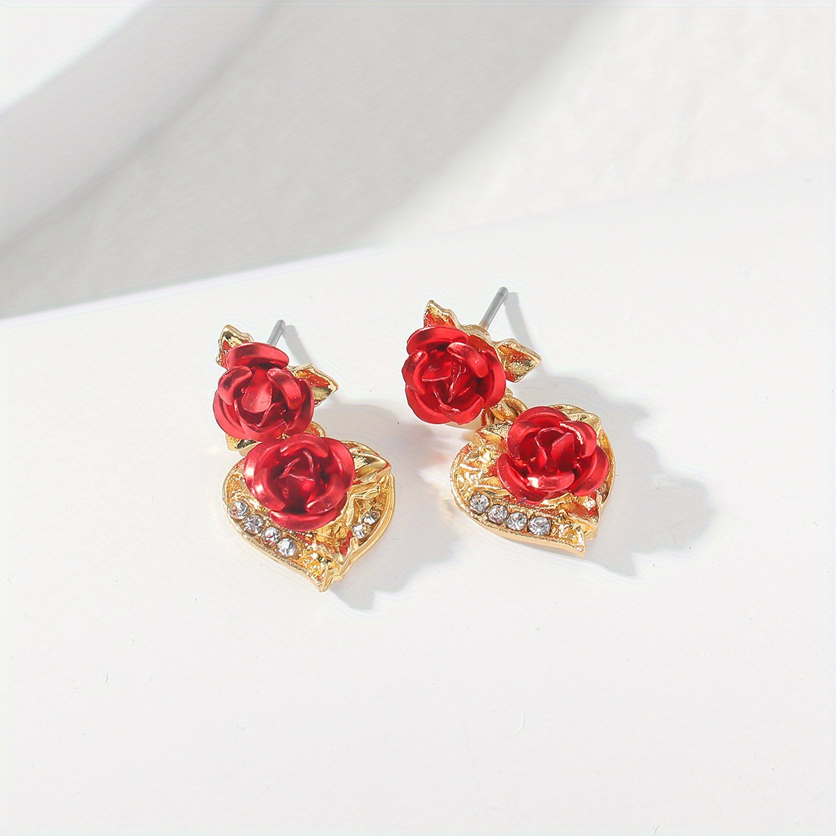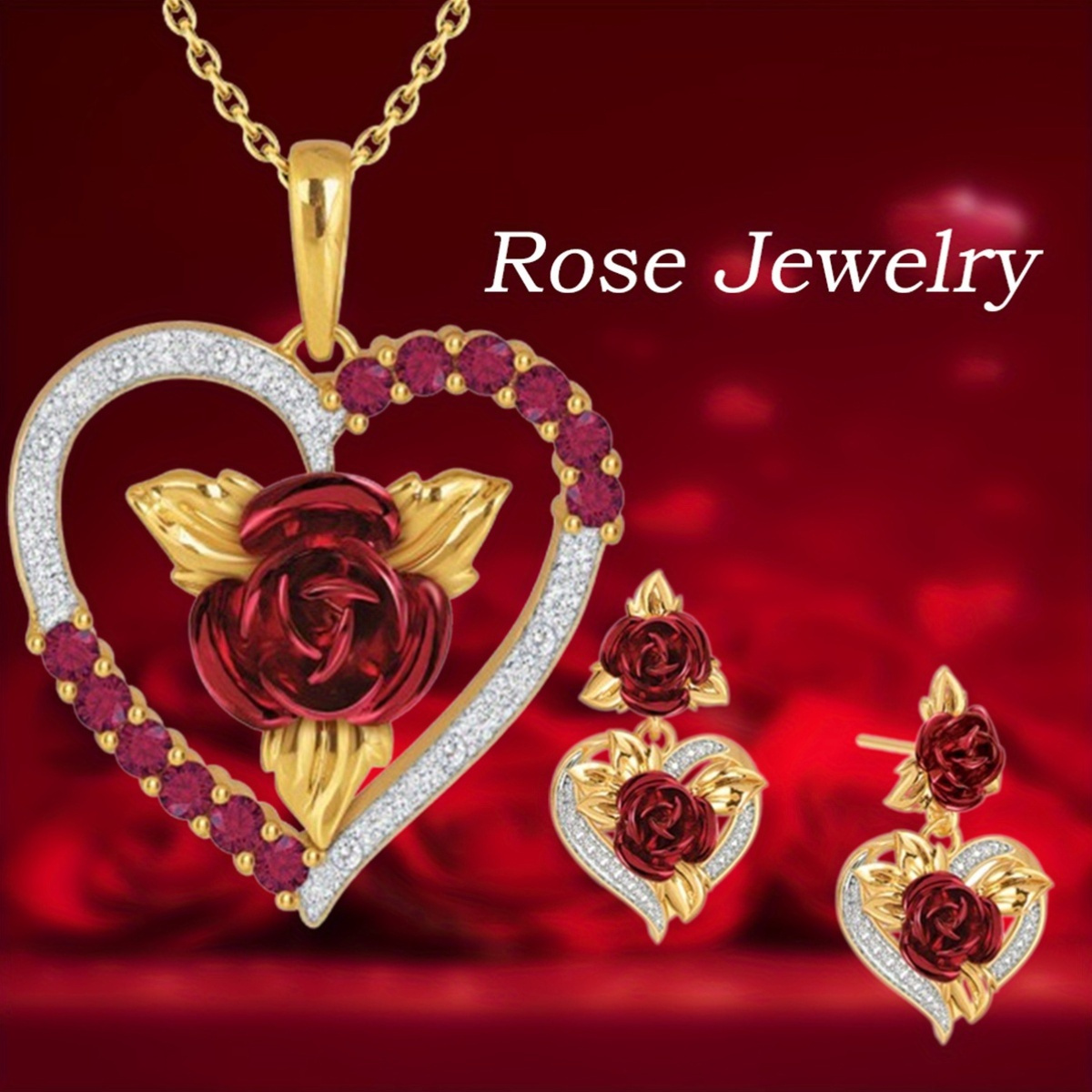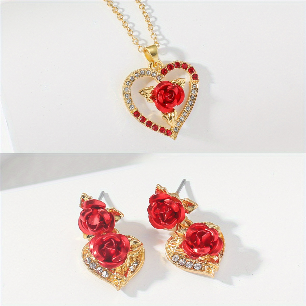 Stylish 3pcs Set Featuring a Golden Heart And Rose Charm Necklace Along with Earrings – Ideal for Valentine’S Day, Birthdays, And Other Special Events Like Halloween, Christmas Parties, And New Year Gifts., For Teenager
