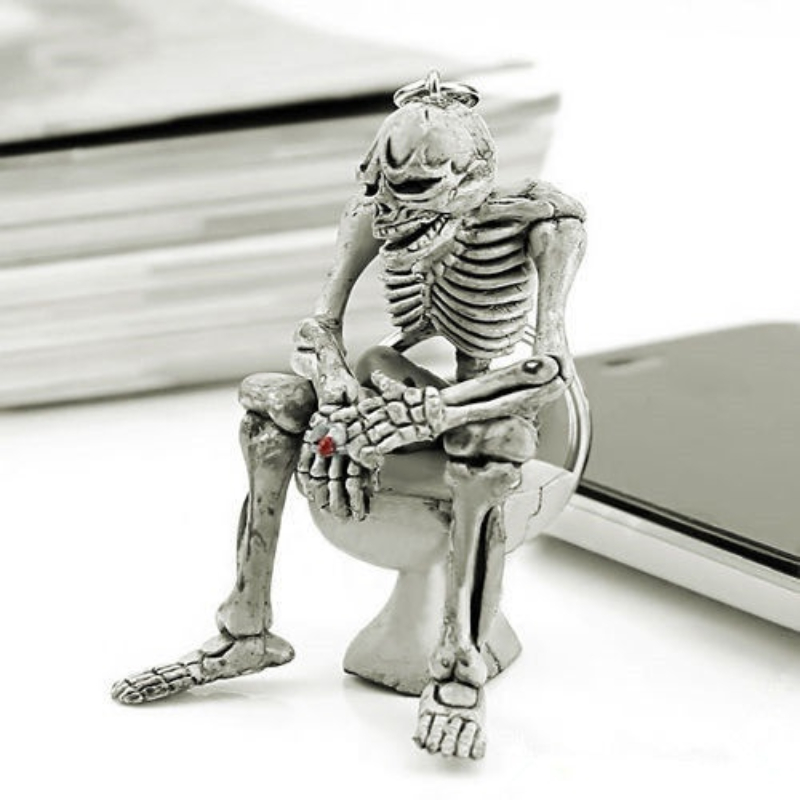 [Stylish Skeleton Keychain] 1pc Stylish Men’s Skeleton Keychain – Alloy Toilet Design Keyring | Durable Metal Keychain for Car Keys or Unique Gifts