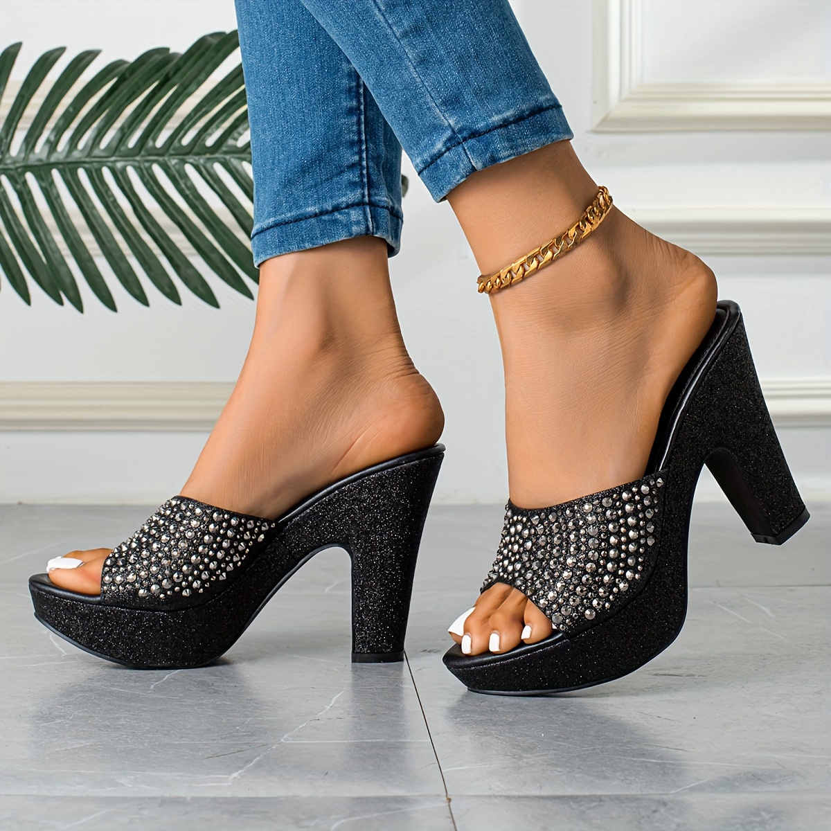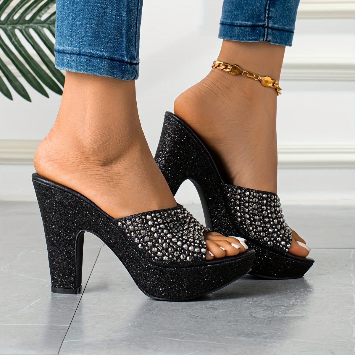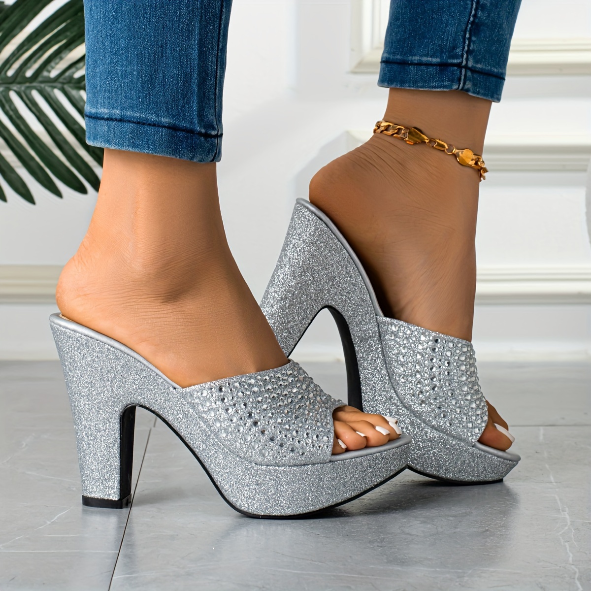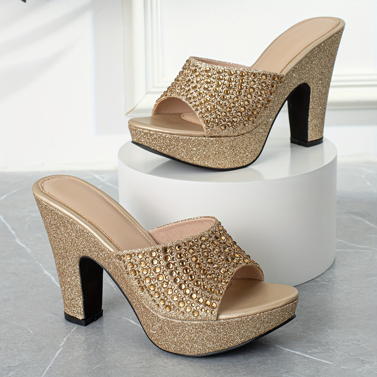 Stylish Women’s High Quality Platform Wedge Sandals Slip-On Comfortable Versatile Metallic Color with Rhinestone Embellishments, Perfect for Parties and Various Occasions
