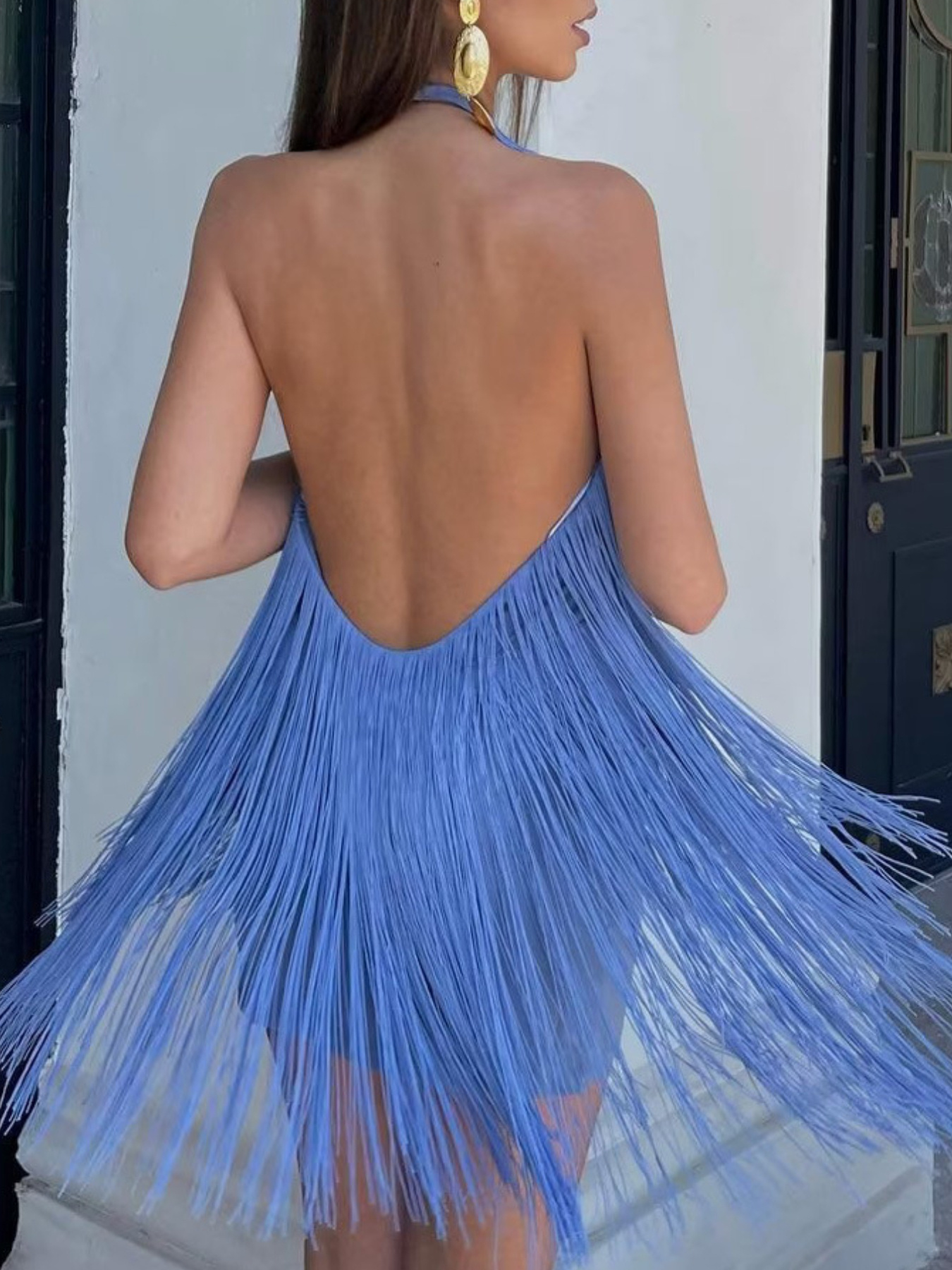 Summer Elegant Halter Neck Dress- Sleeveless Tassel Detail Dress- Women’s Design Sense Evening Dress