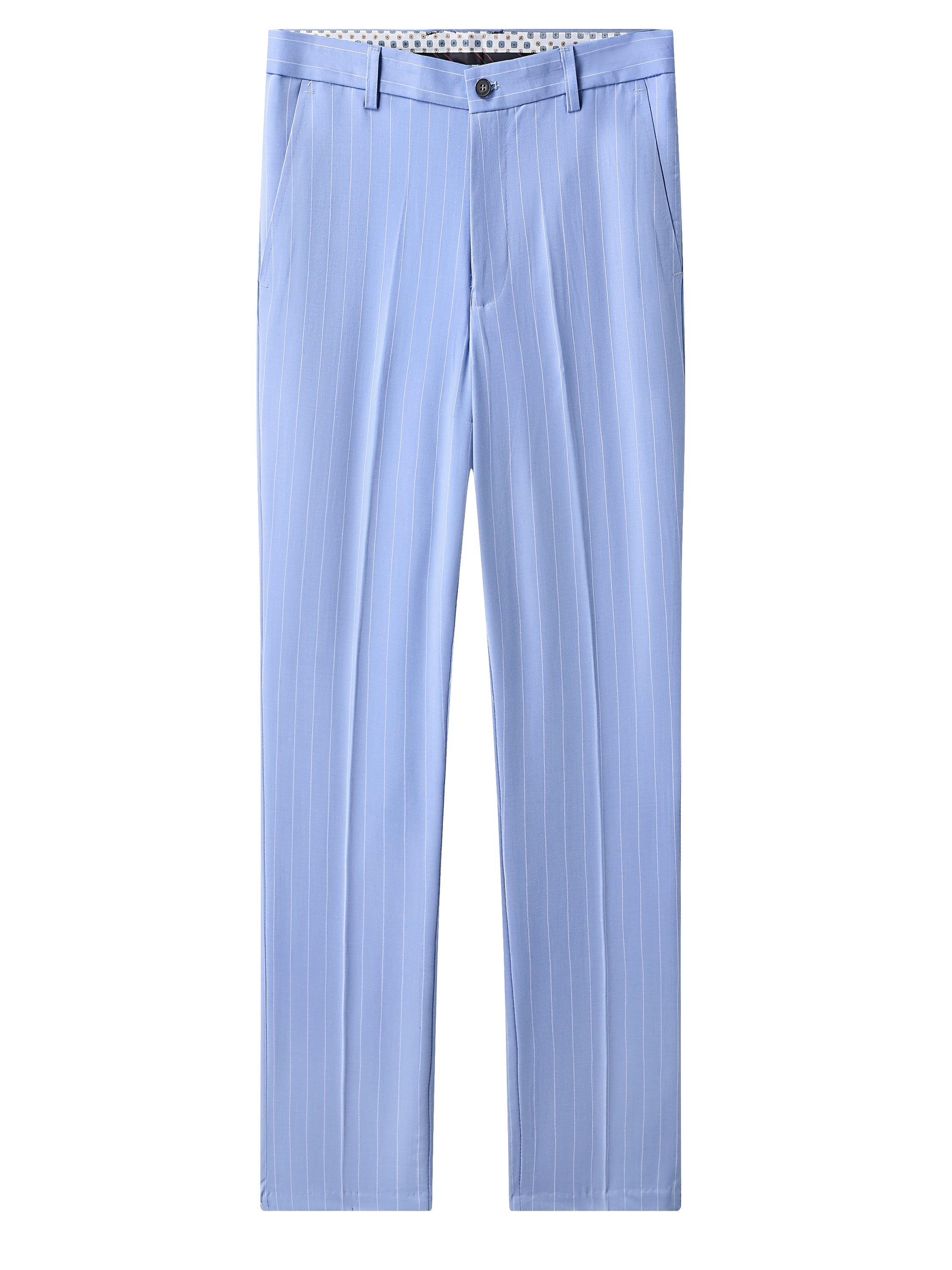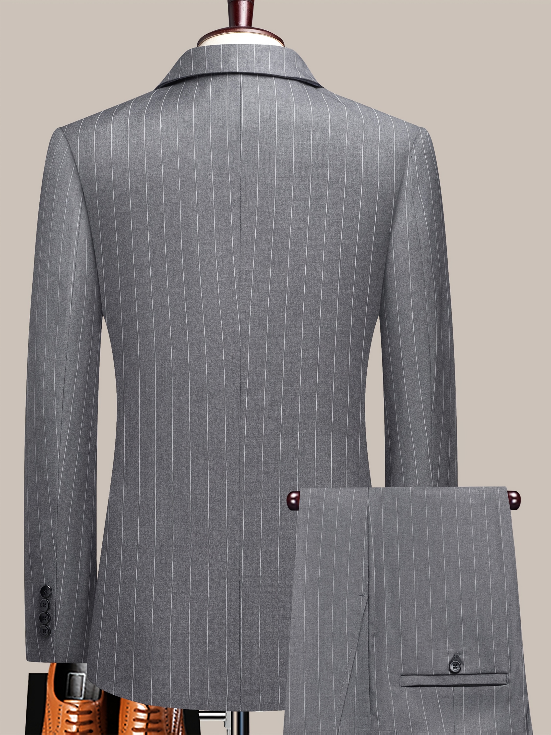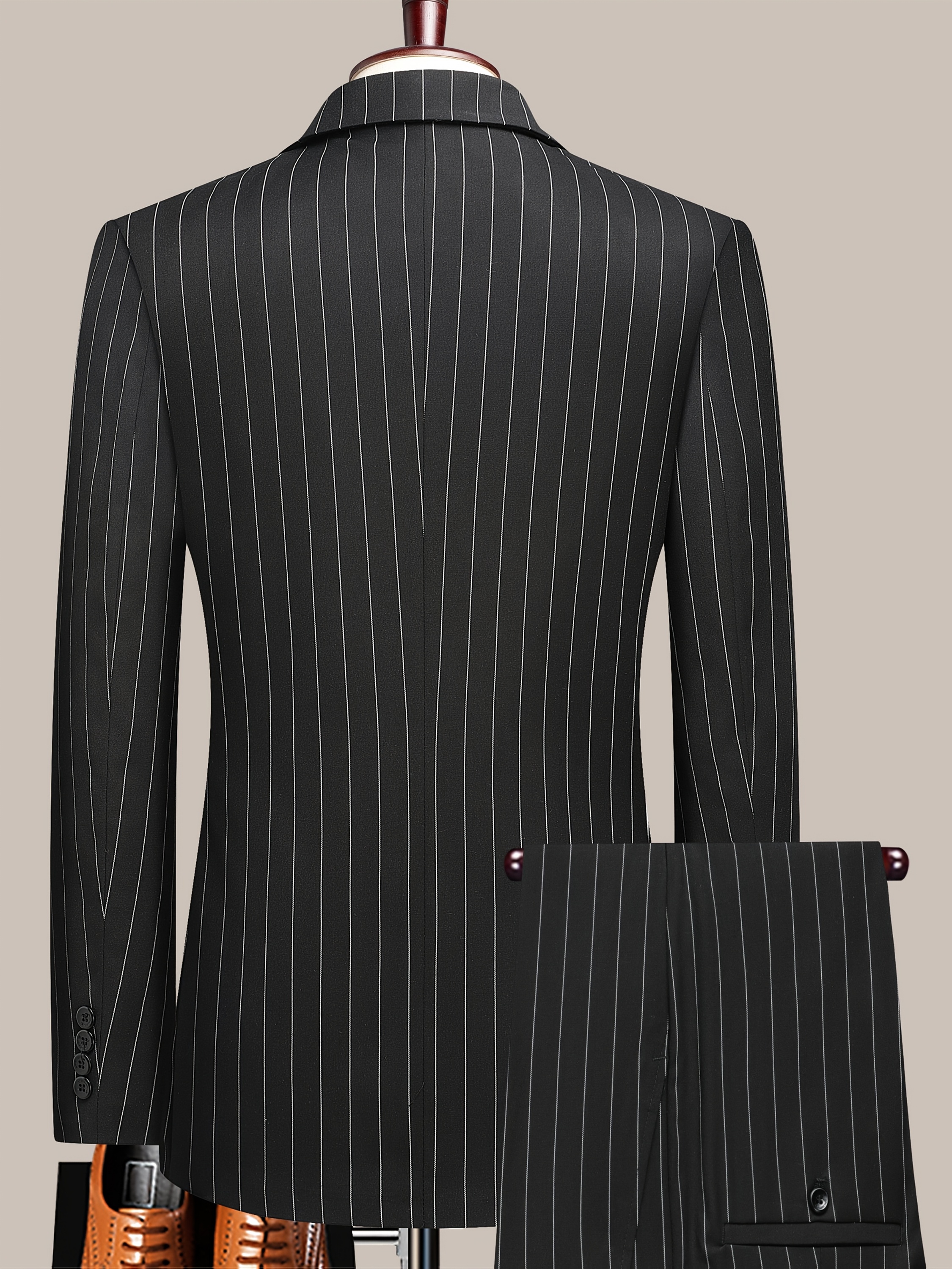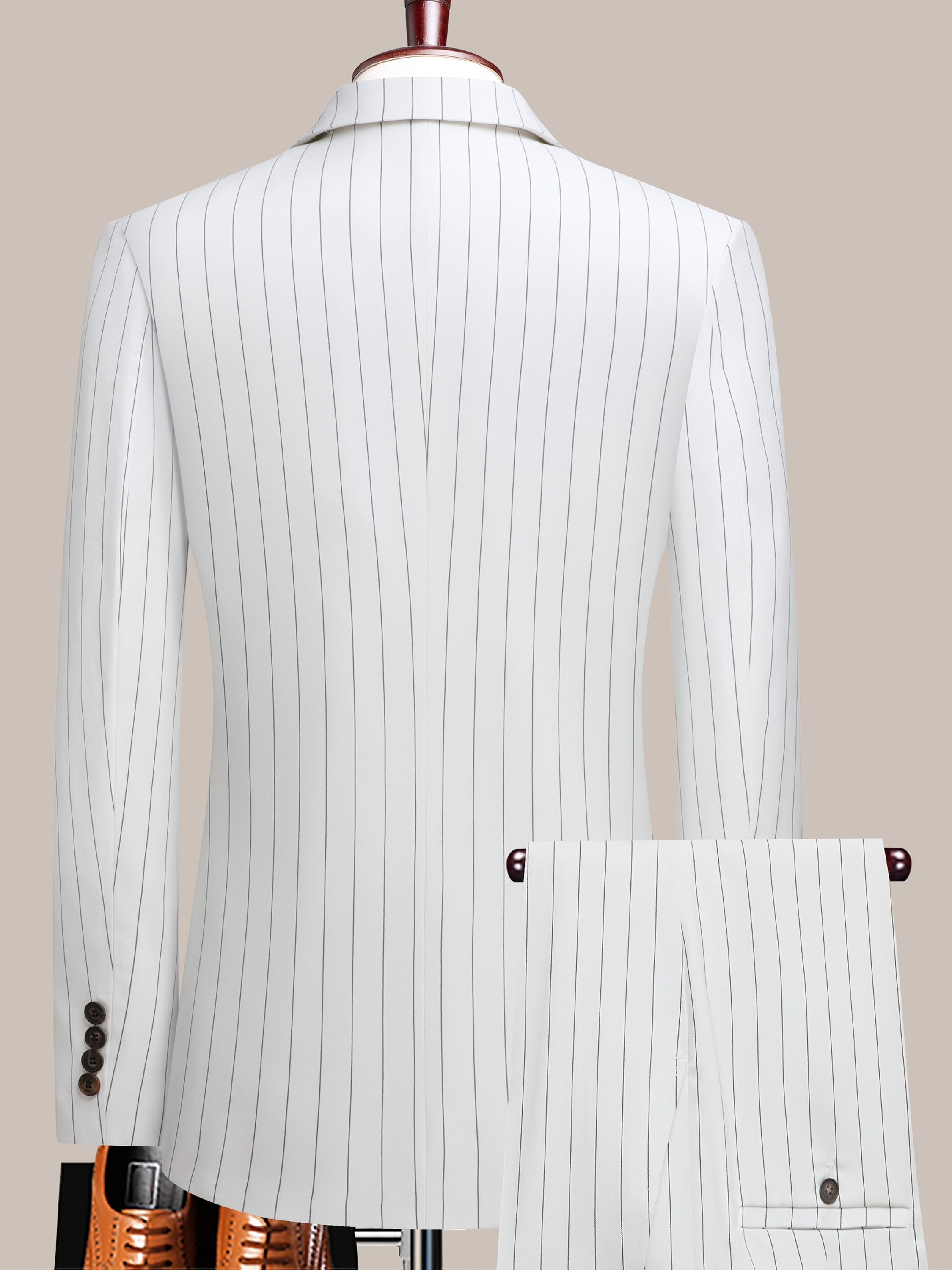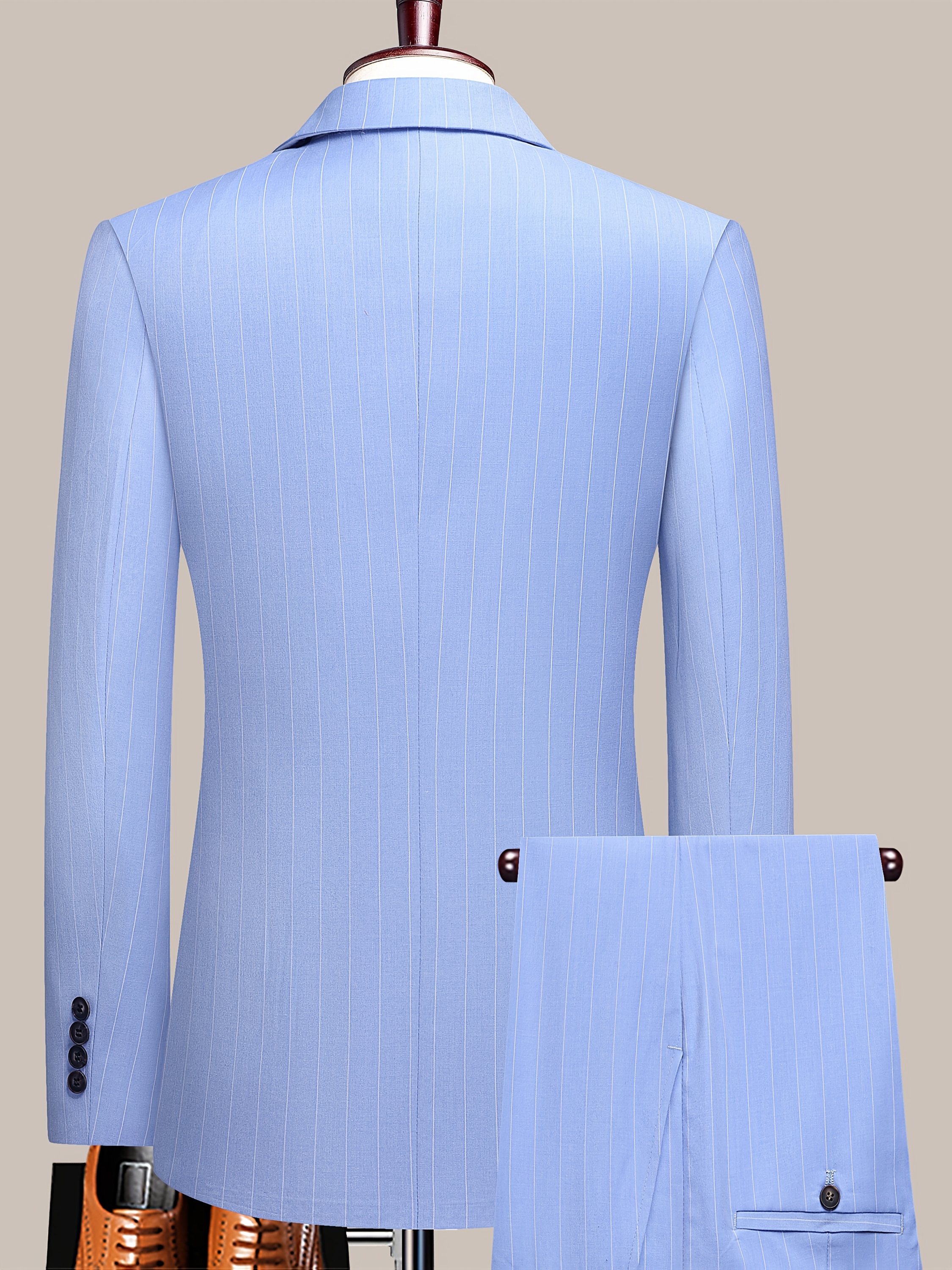 The Latest Men’S Striped Double-Breasted Suit, a Lightweight Two-Piece Set for Spring, Summer, And Autumn, Features a Shawl Collar And Four-Button Design, Suitable for Business Casual Occasions, with a Decorative Necklace at The Neckline