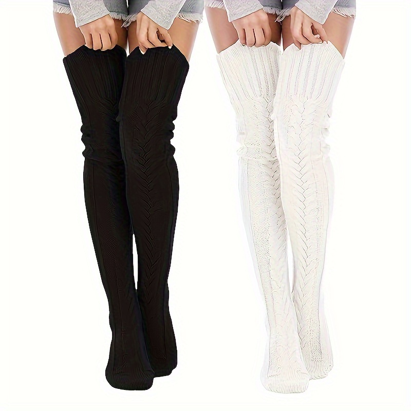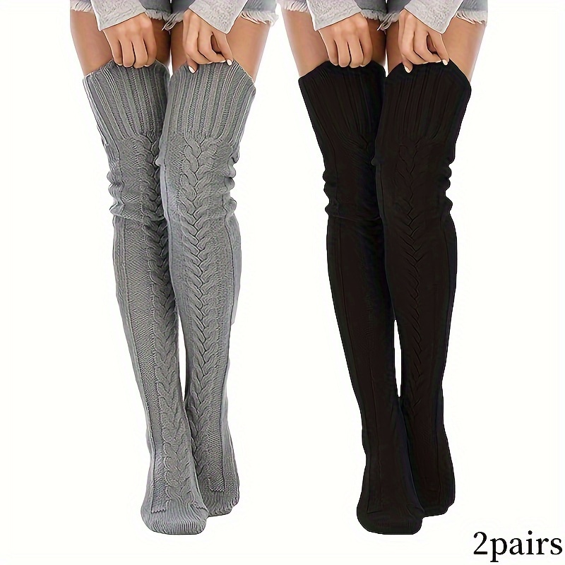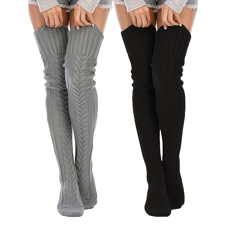 [Thermal Thigh High Socks] 2-Pair Women’s Thermal Thigh High Socks – Extra Long Over Knee Boot Stockings, Non-Slip Elastic Opening, Ultra-Soft Acrylic Winter Leg Warmers for Boots/Clothes – Grey/Black, One Size Fits Most – Perfect Gift for Cold Weather, Versatile Wardrobe Addition, Highelastic Material