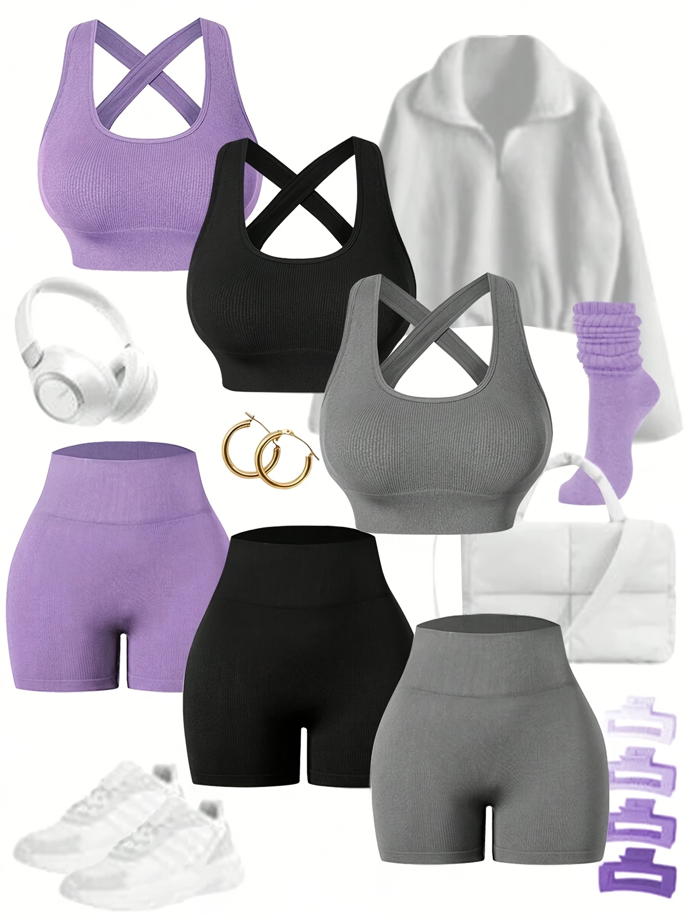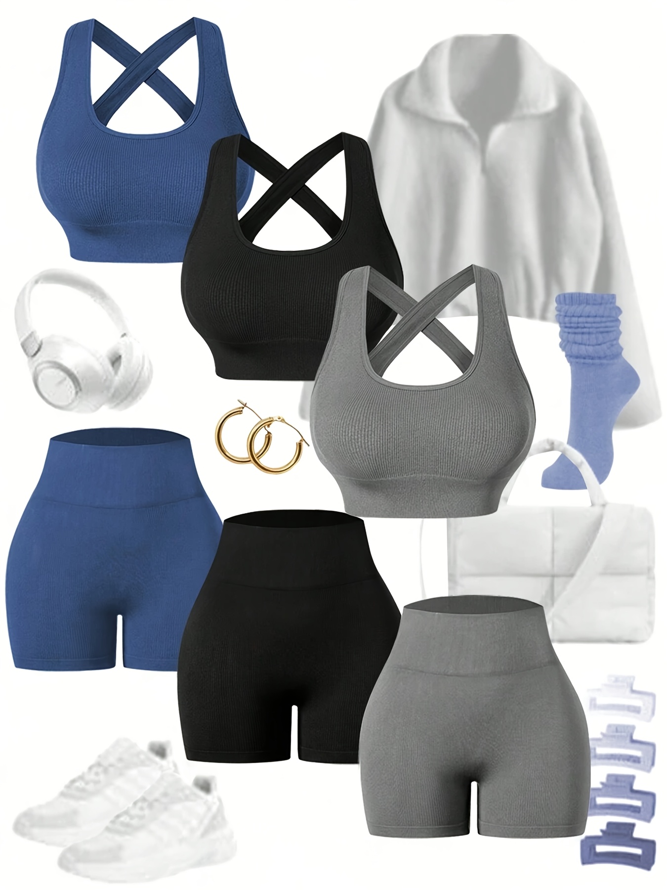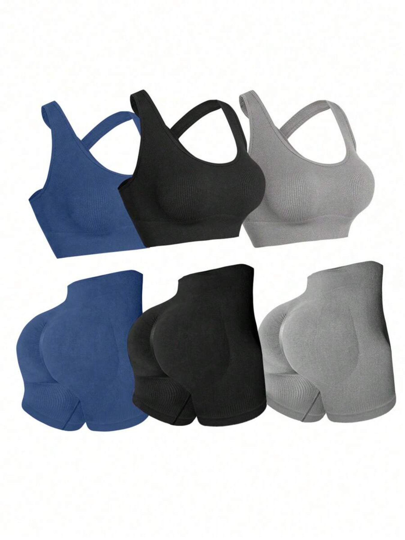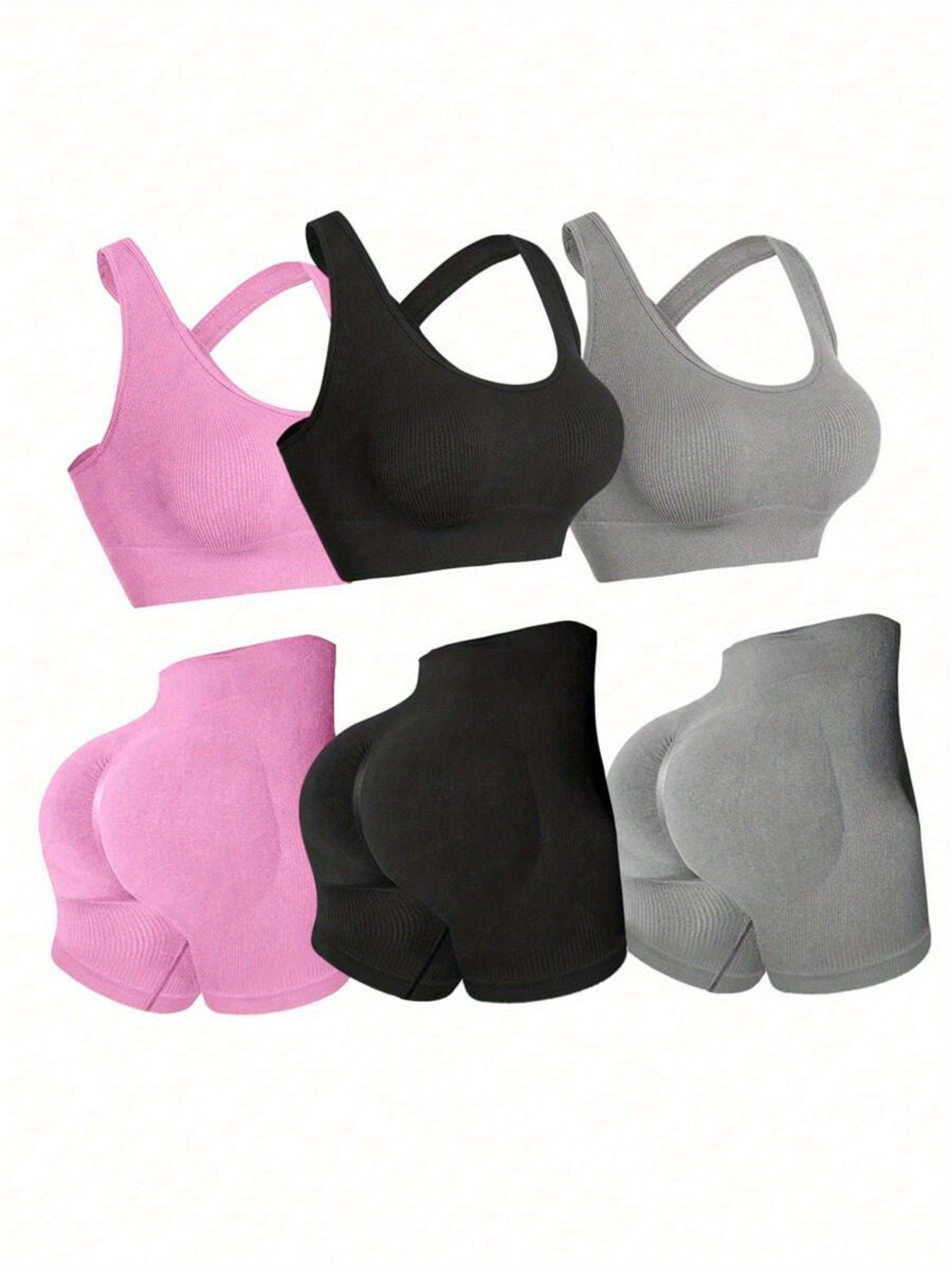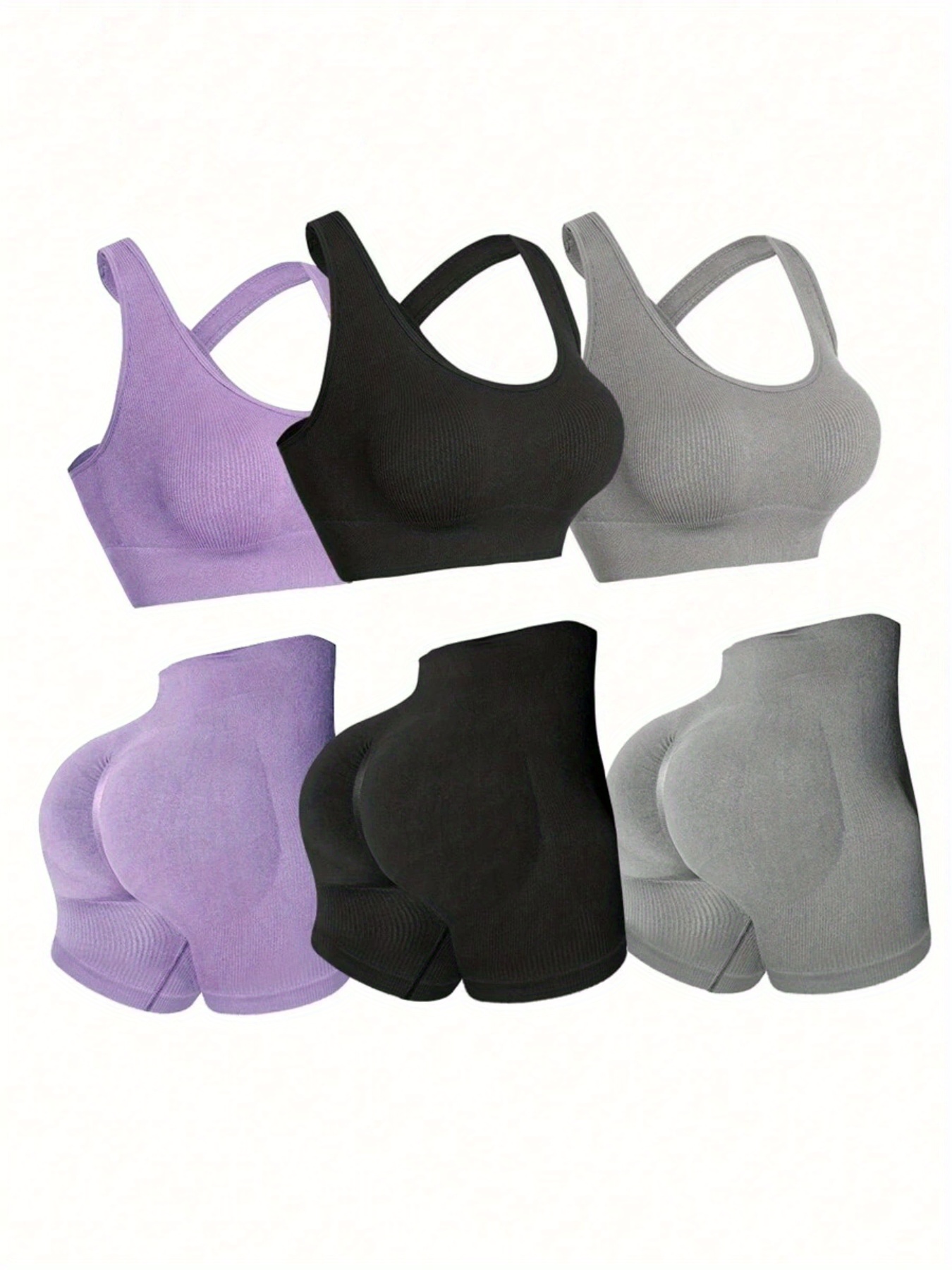 Three Sets of Seamless Women’S Sportswear Suits, Featuring High Elasticity, See-Through Back Bras And Tight-Fitting Short Pants for Enhancing Buttocks.
