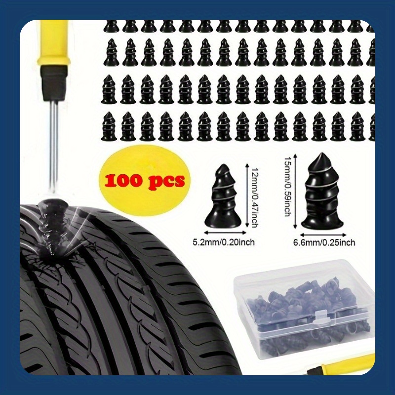 [Tire Repair Plug Kit] 100pcs Boxed Tire Fix Rubber Nails Mushroom Nails Durable Easy to Install Tire Repair Plug, Protective Tire Fix Kit for Cars, Motorcycles, Bicycles and Scooters Quick Repair Tool, Tire Repair Kit, Tire Repair Tools, Car Tire Fix Tool, Car Tire Inflator Kit, Tire Rotora, Tire Performance, Highquality Nails, Roadside Assistance, Offroad Adventure