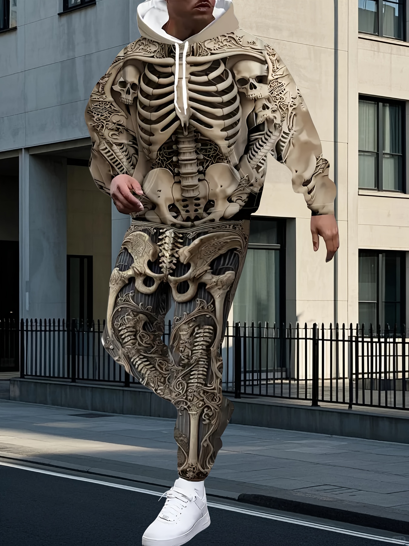 [ Top Selling Item In The Store ] Two Piece Set Is The First Choice for Men’S Autumn Halloween Fashion! Hooded Hoodie Set, Covered with Realistic And Artistic Skull Prints, Unique And Eye-catching, Easily Creating A Cool Holiday Look., Holiday Outfit, Seasonal Clothing, Artistic Design, Trendy Fashion, Soft Material, Durable Construction, Print Sweatsuit