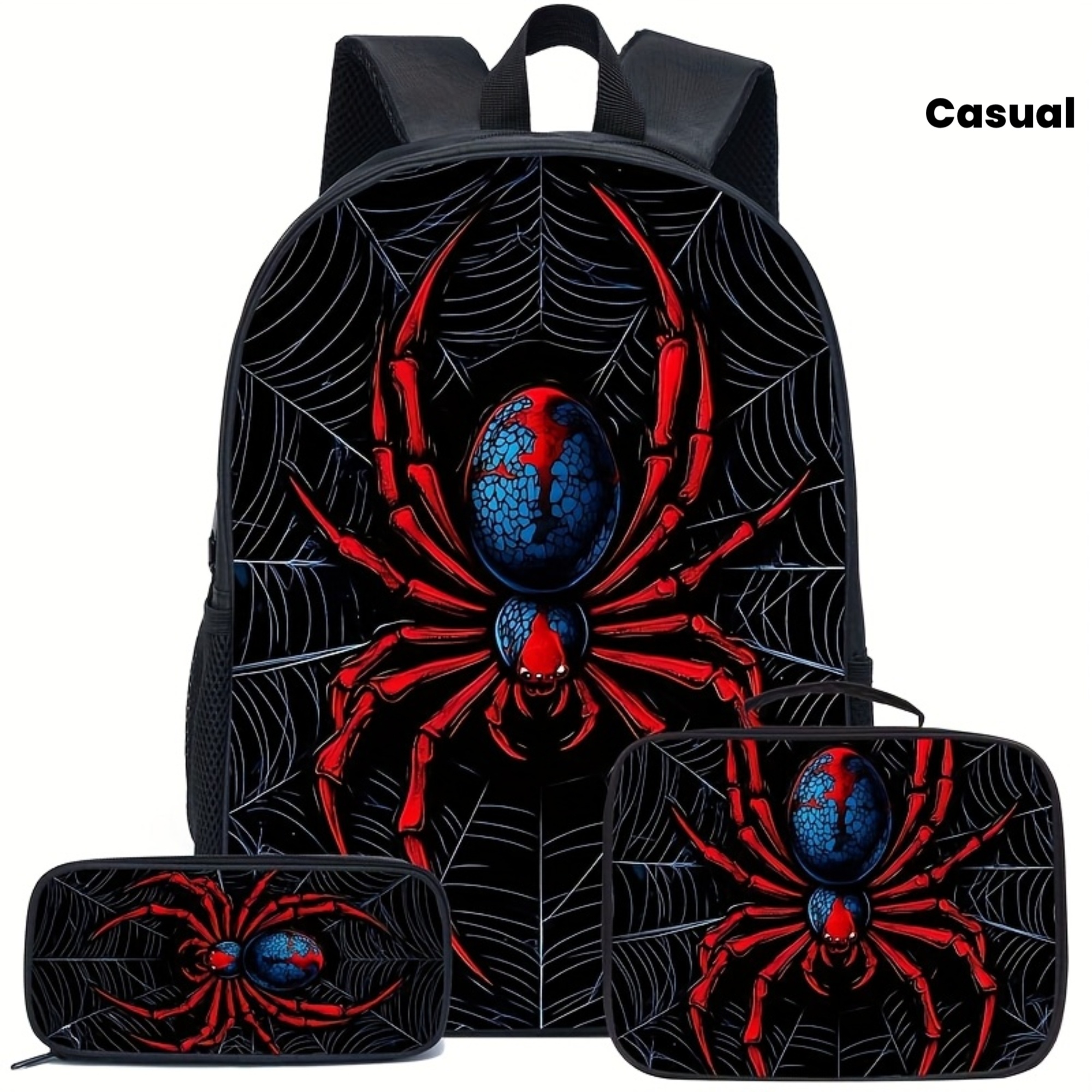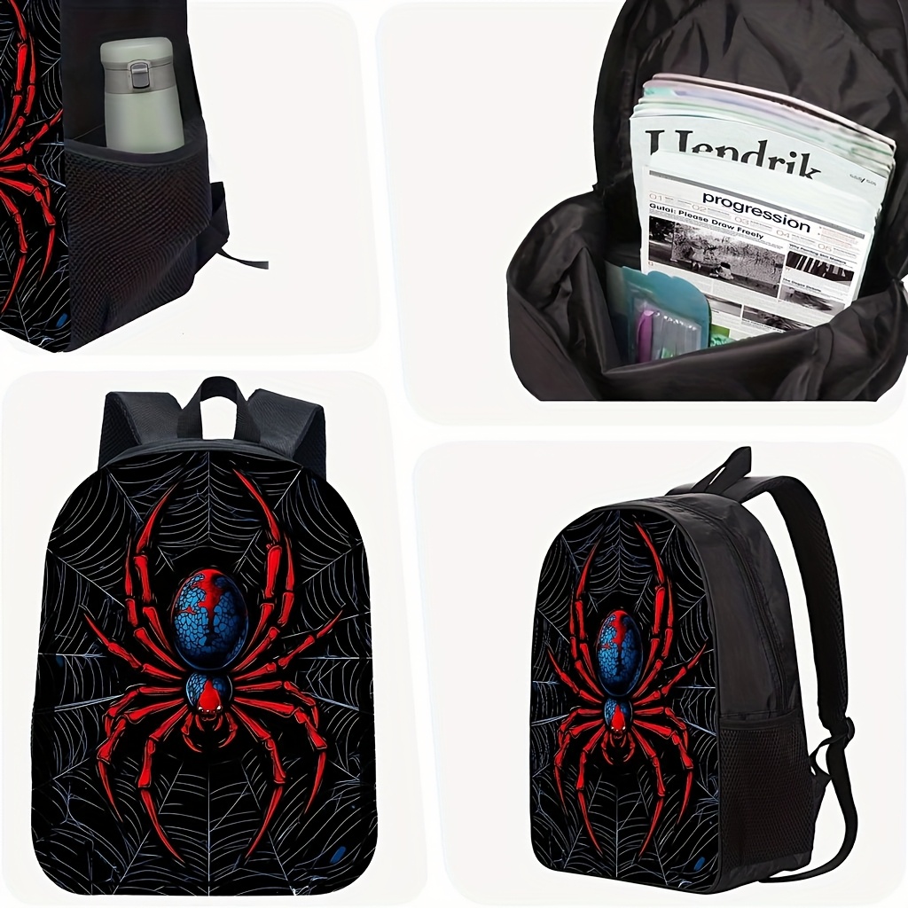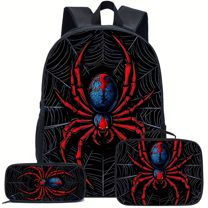[Trendy Backpack] Cool Trendy Red Spider Print Pattern Backpack | Storage Bag