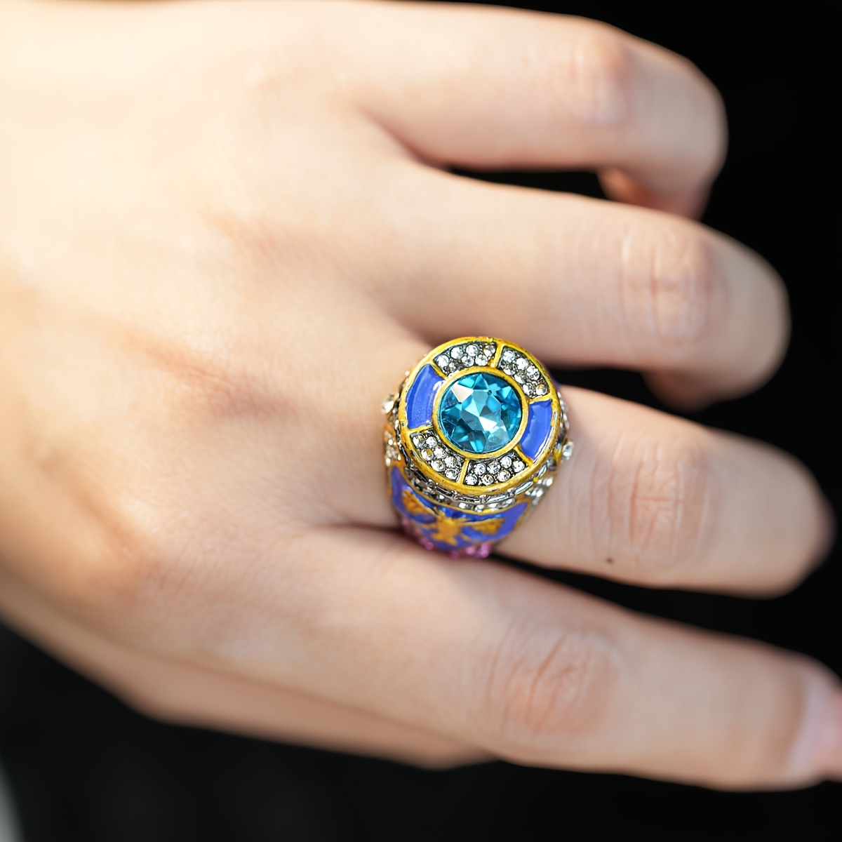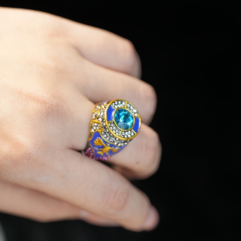 Vintage Warrior Ring with Double Eagle Design | Deep Blue Enamel and Synthetic Synthetic Gems, Copper Alloy Plating, Garnet Stones