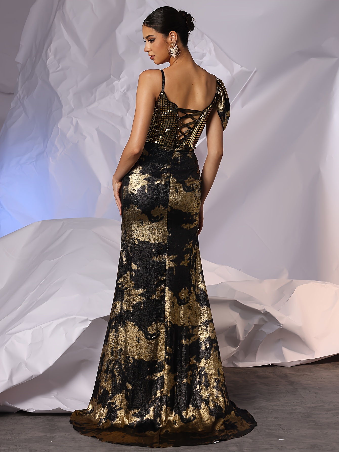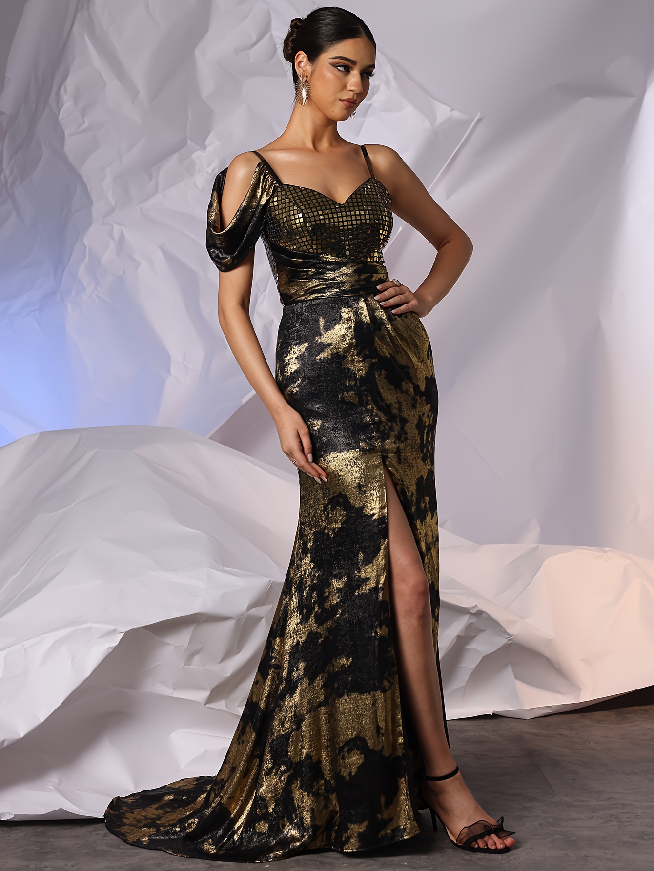 Women’ & Teens Sparkly Off-Shoulder/-Shoulder Mermaid Prom Dress with Front Slit – Lace-Up Back Formal Evening Gown Suitable for Wedding Guest, Party Dresses, Homecoming (Year-Round Wear)