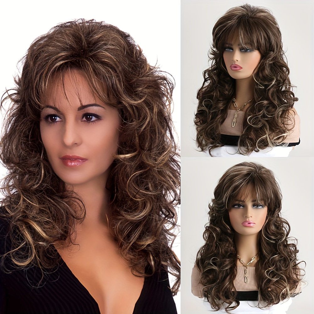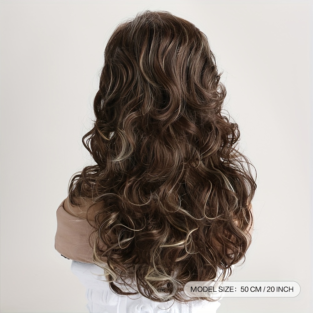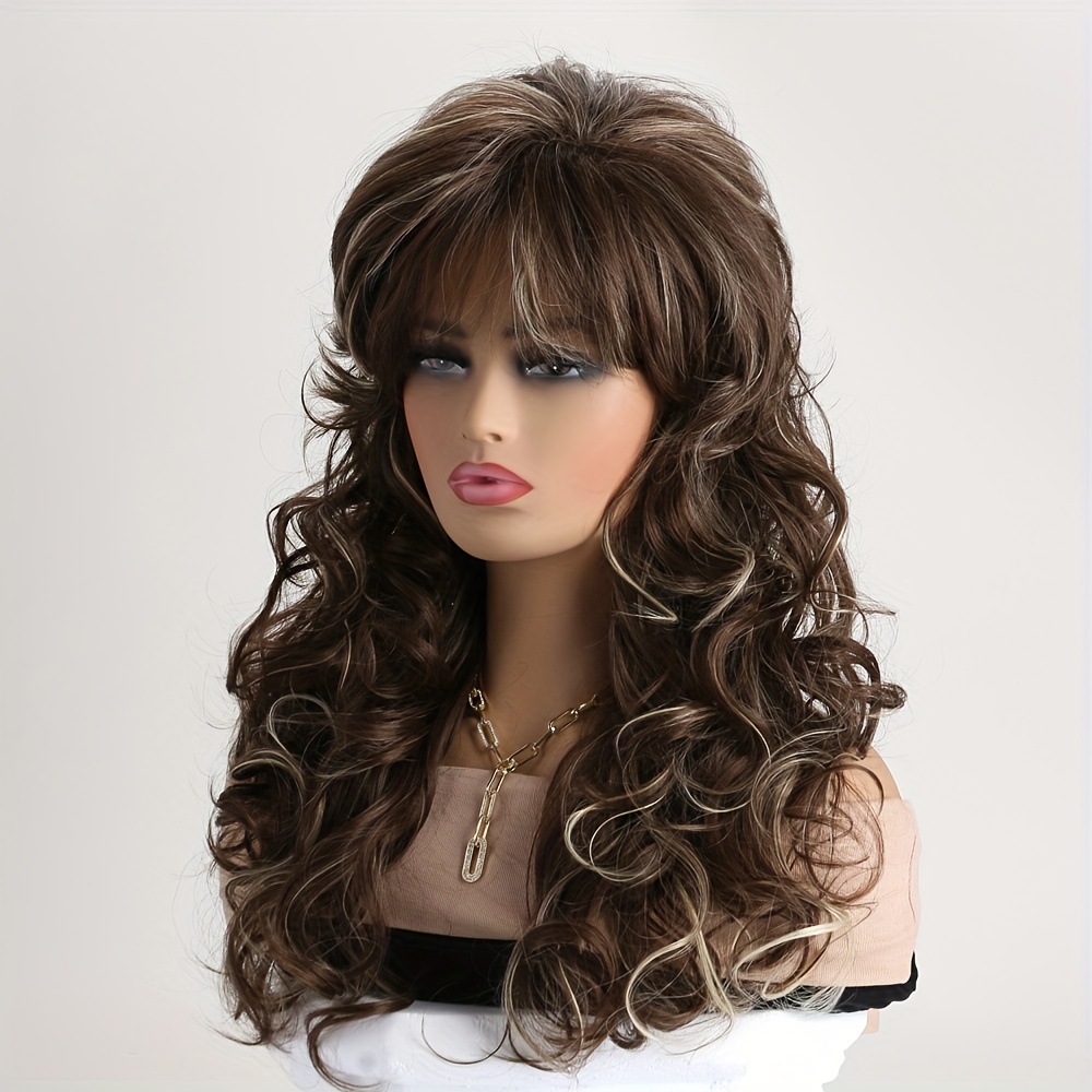 Women’s 20-Inch Brown & Blonde Highlight Wig with Air Bangs – Heat-Resistant Synthetic Fiber Curly Wave Hair System, Blonde Blonde Balayage for Daily Wear, Parties, Cosplay & for halloween (Wearing with Glasses/Headpieces)