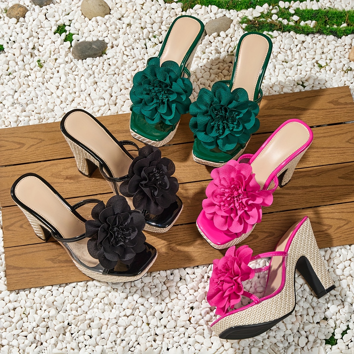 Women’s Bohemian-Style High-Heeled Sandals, Elegant Square Toe Design, Transparent Floral Thick Sole, Suitable for Balls, Parties, Weddings, Professional Events