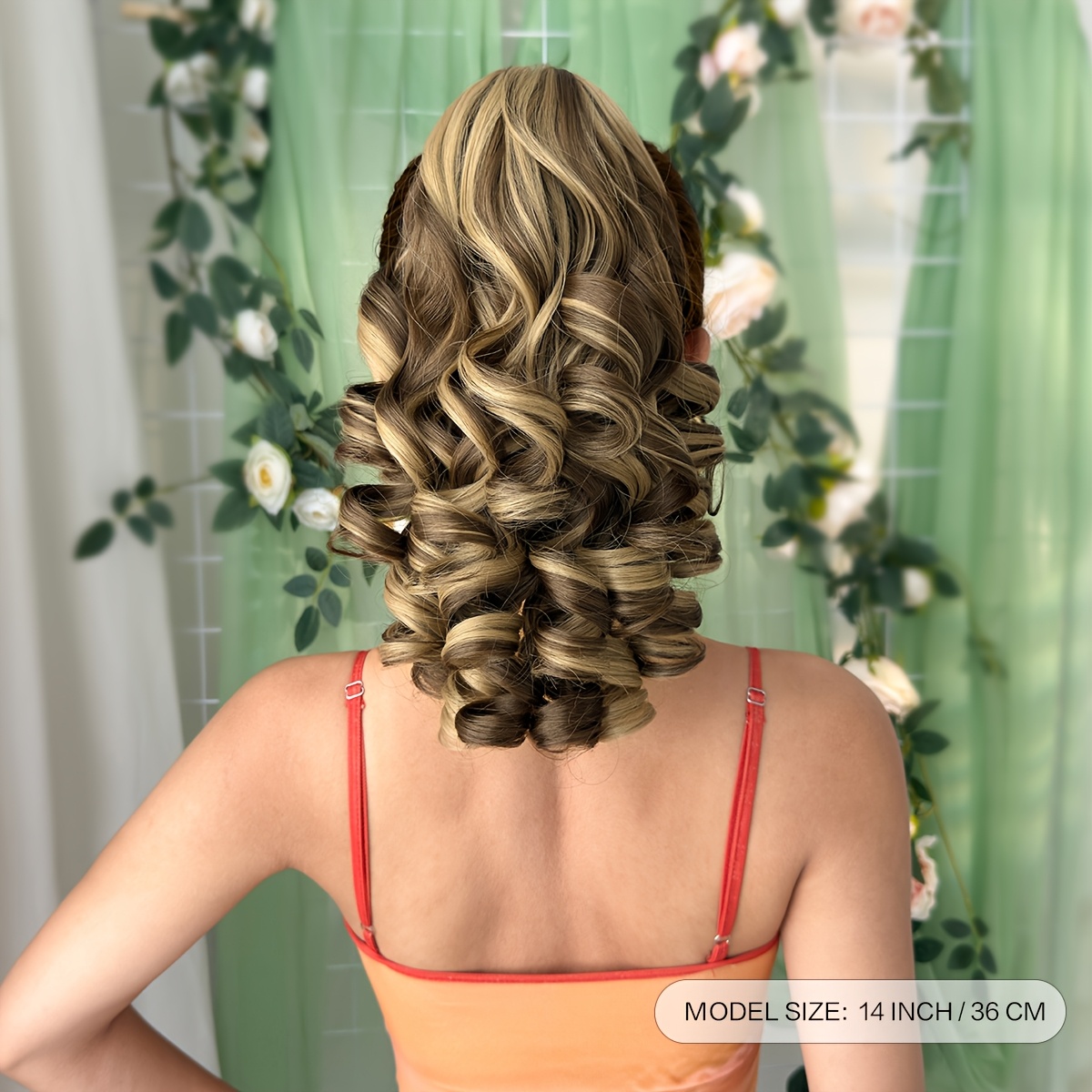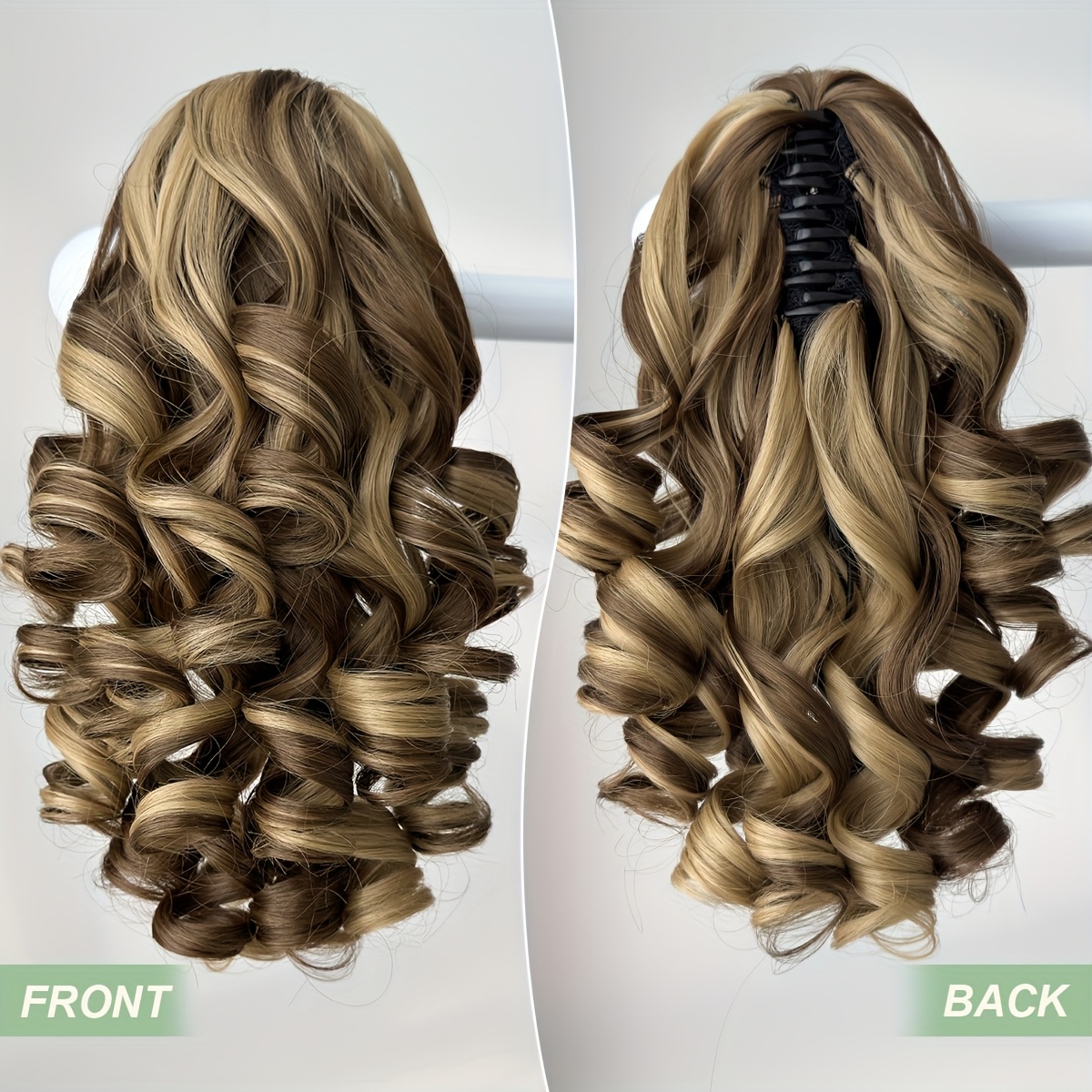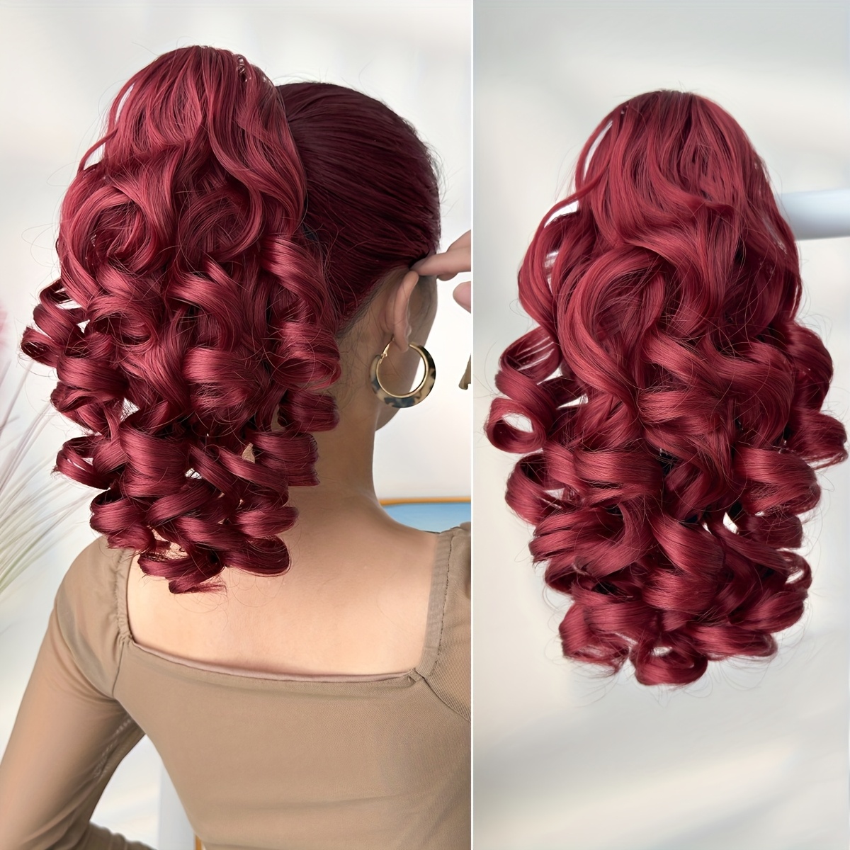 Women’s Clip-In Ponytail Wig – Heat-Resistant Synthetic Hair with -Looking Clip- Extensions, Dark Brown/Wine Red Curly / suitable for hair Types & Scalp Conditions – Volume & Length Enhancer for Daily Use, Parties, Weddings, Photoshoots