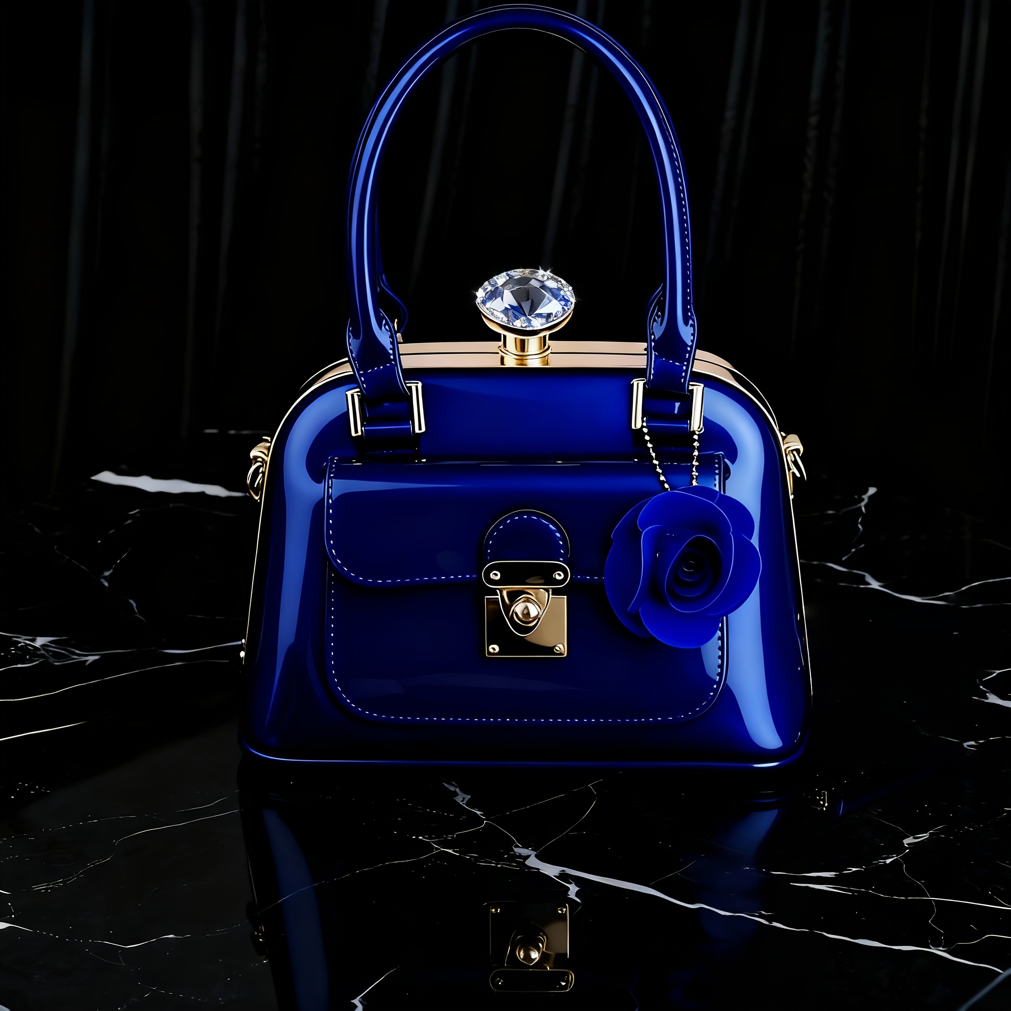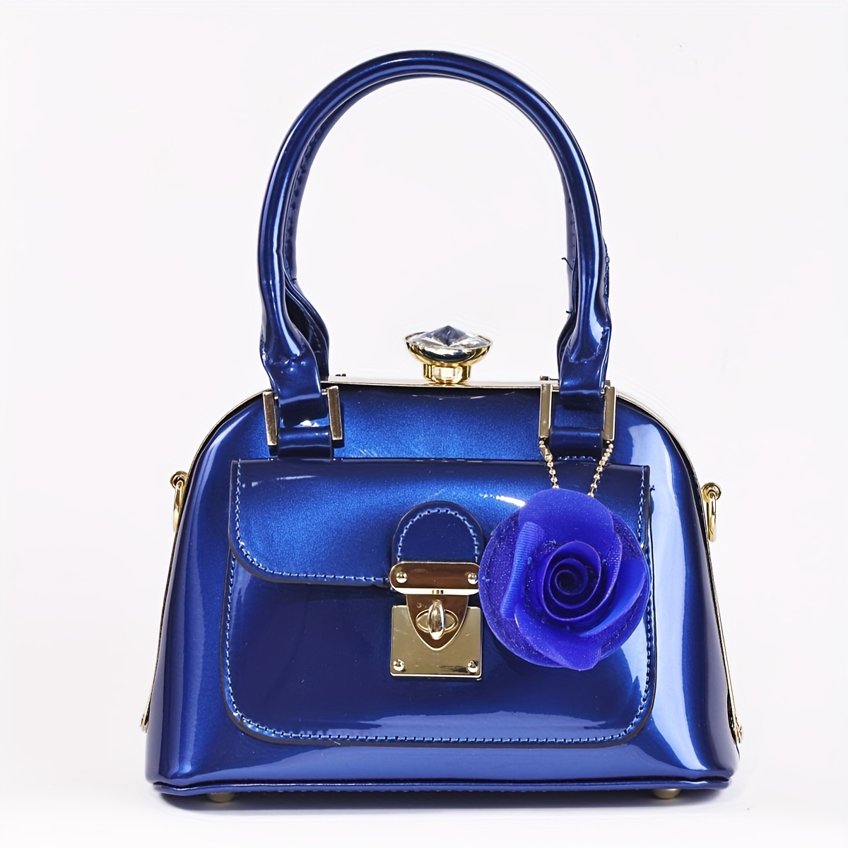 Women’S Elegant Royal Blue Handbag with Golden-Tone Hardware & Magnetic Closure – Retractable Strap, Golden-Tone Hardware & Magnetic Buckle Closure