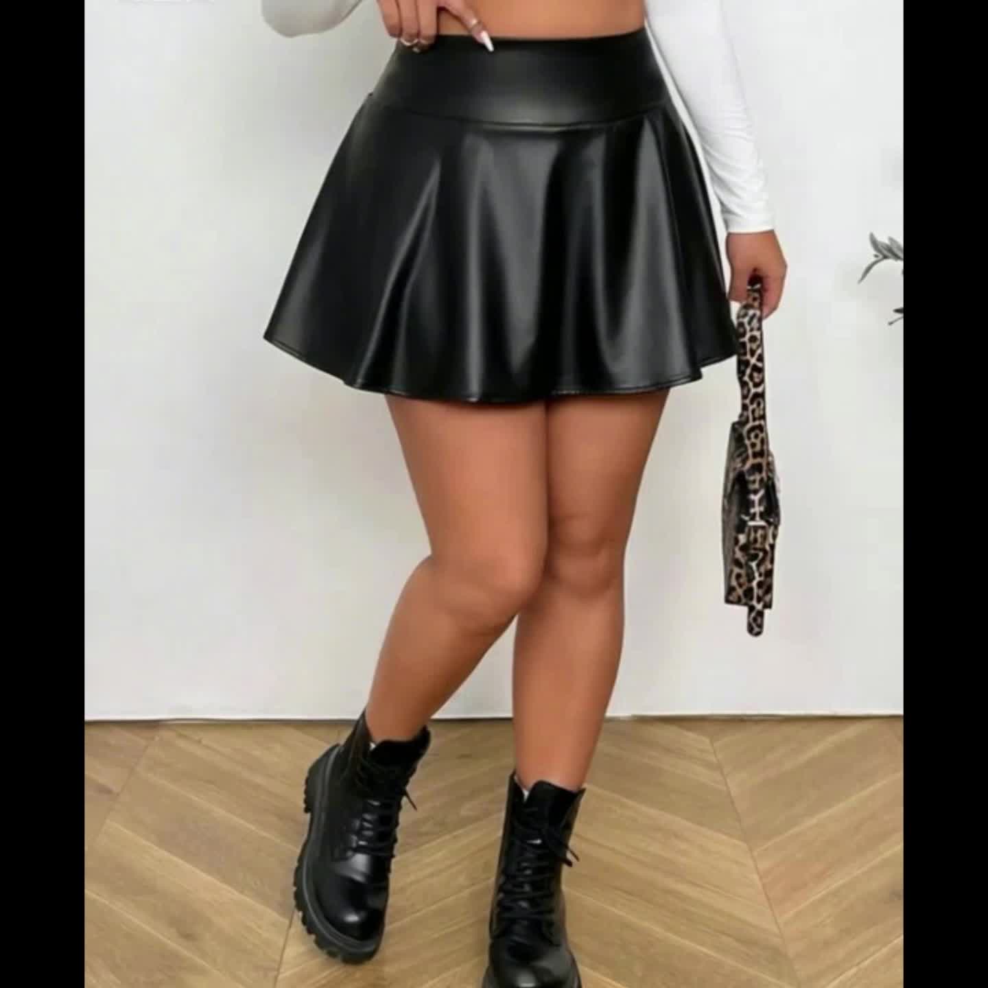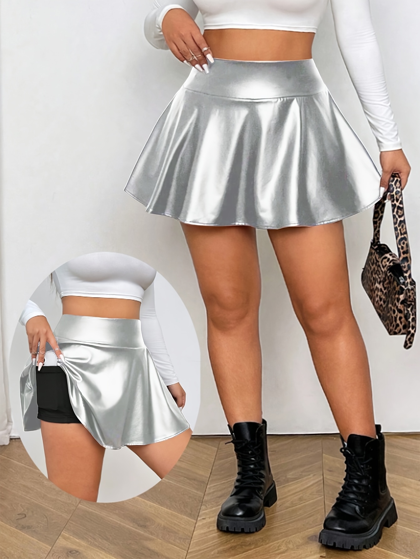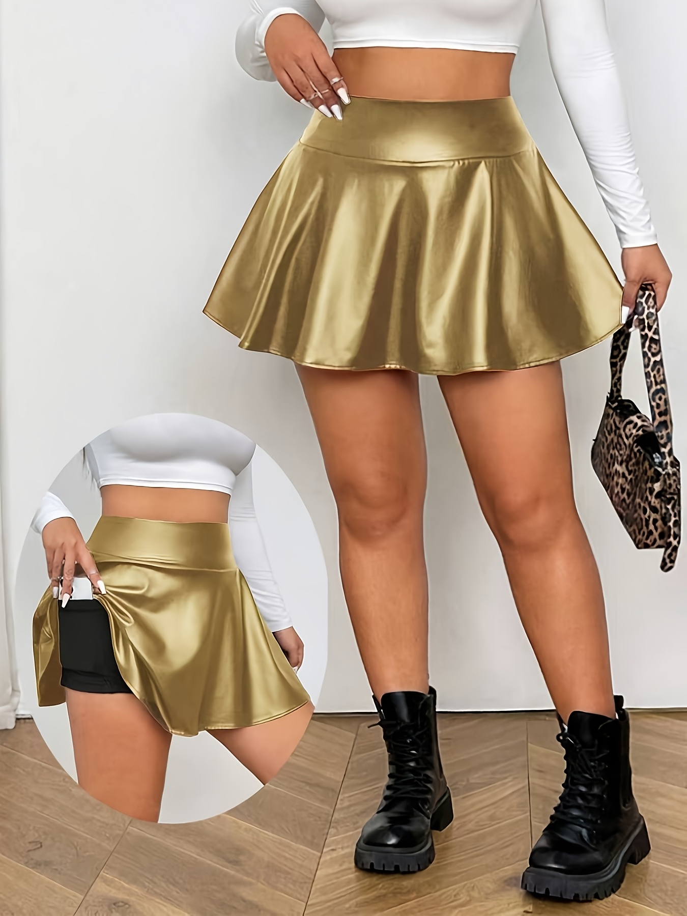 Women’s Fashion Mini Skirt, PU Material, Solid Color Faux Mini Skirt with Shorts and Phone Pocket, Graduation Ceremony, Back-to- Outfit, Women’s Teacher Apparel, Back-to, Simple Fashion Elegant Style, Suitable for, Daily Casual Wear, Party Gathering