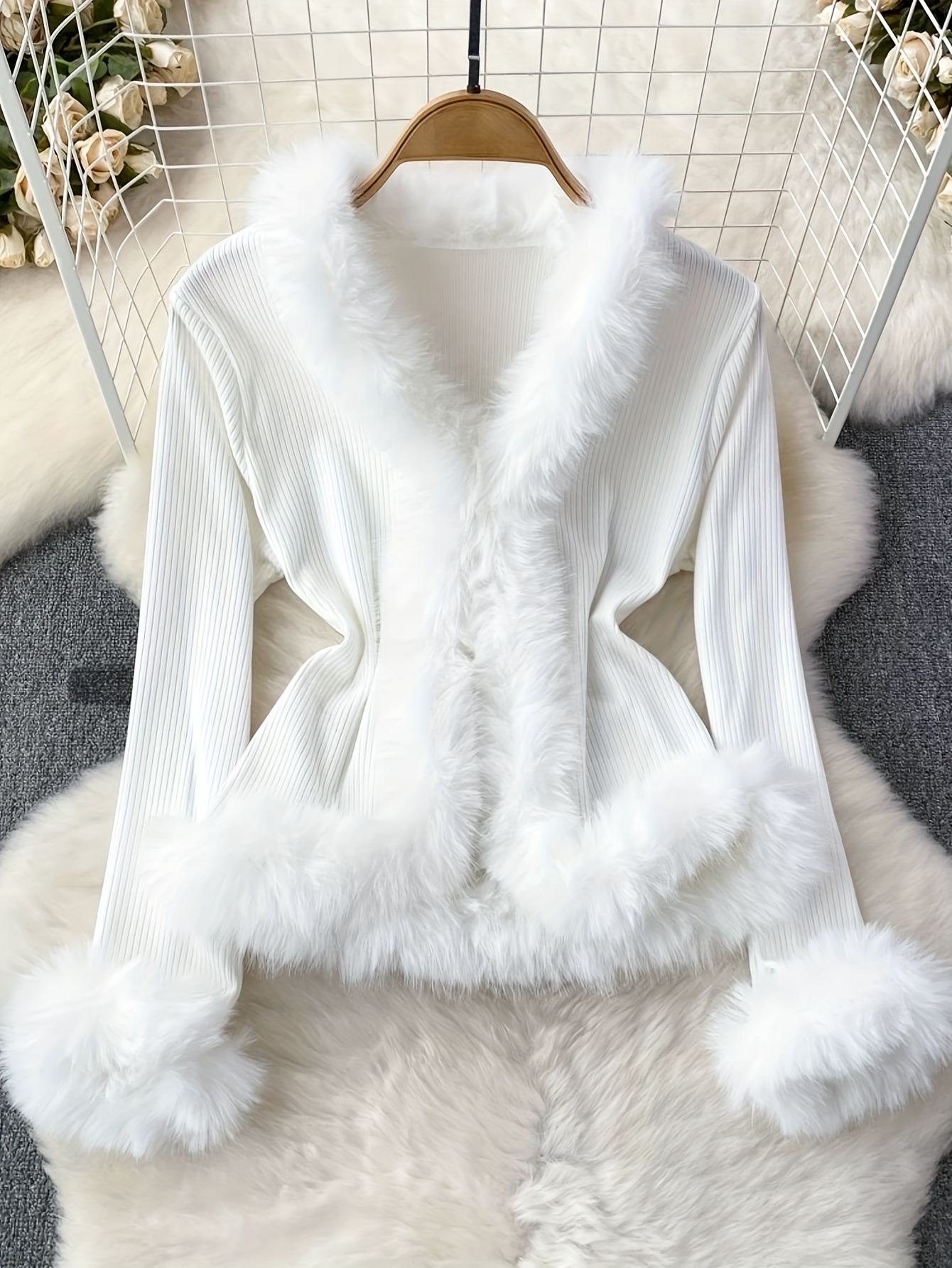 Women’S Fleece Faux Fur Lapel Long Sleeve Top | Comfortable White Casual Winter Shirt with Front Button Design, Soft and Warm for Autumn and Winter, Perfect Casual Outfit, Fashionable Winter Top | Solid Color, Regular Sleeve, No
