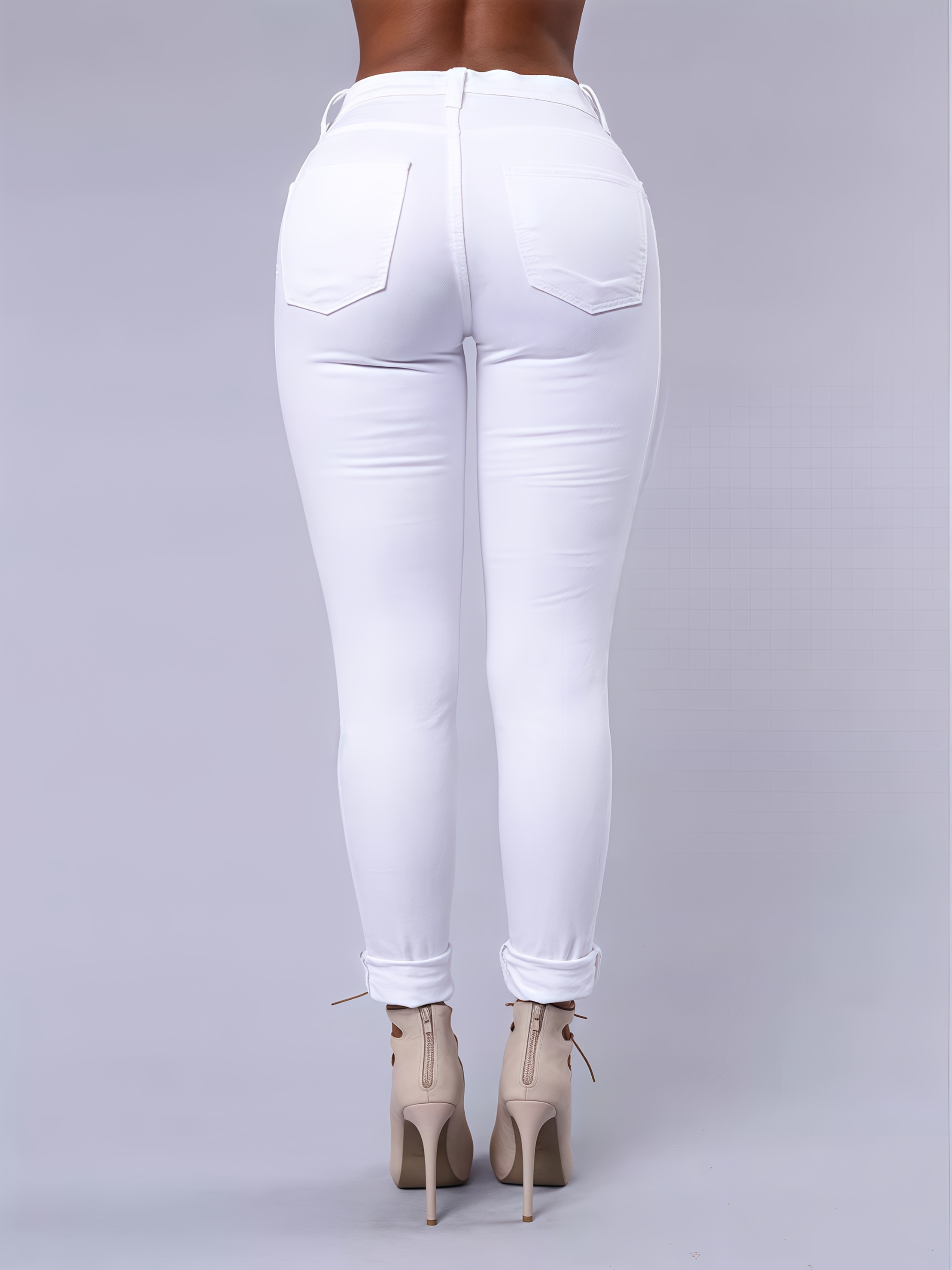 Women’s High-Waisted Stretch Skinny Ripped Jeans – White Distressed Denim Pants with Button Closure, Sexy Street Style Casual Trousers, All-Season Comfort, Hand Wash Only, Fashion-Forward Attire, Comfortable Fashion | Nontransparent Material