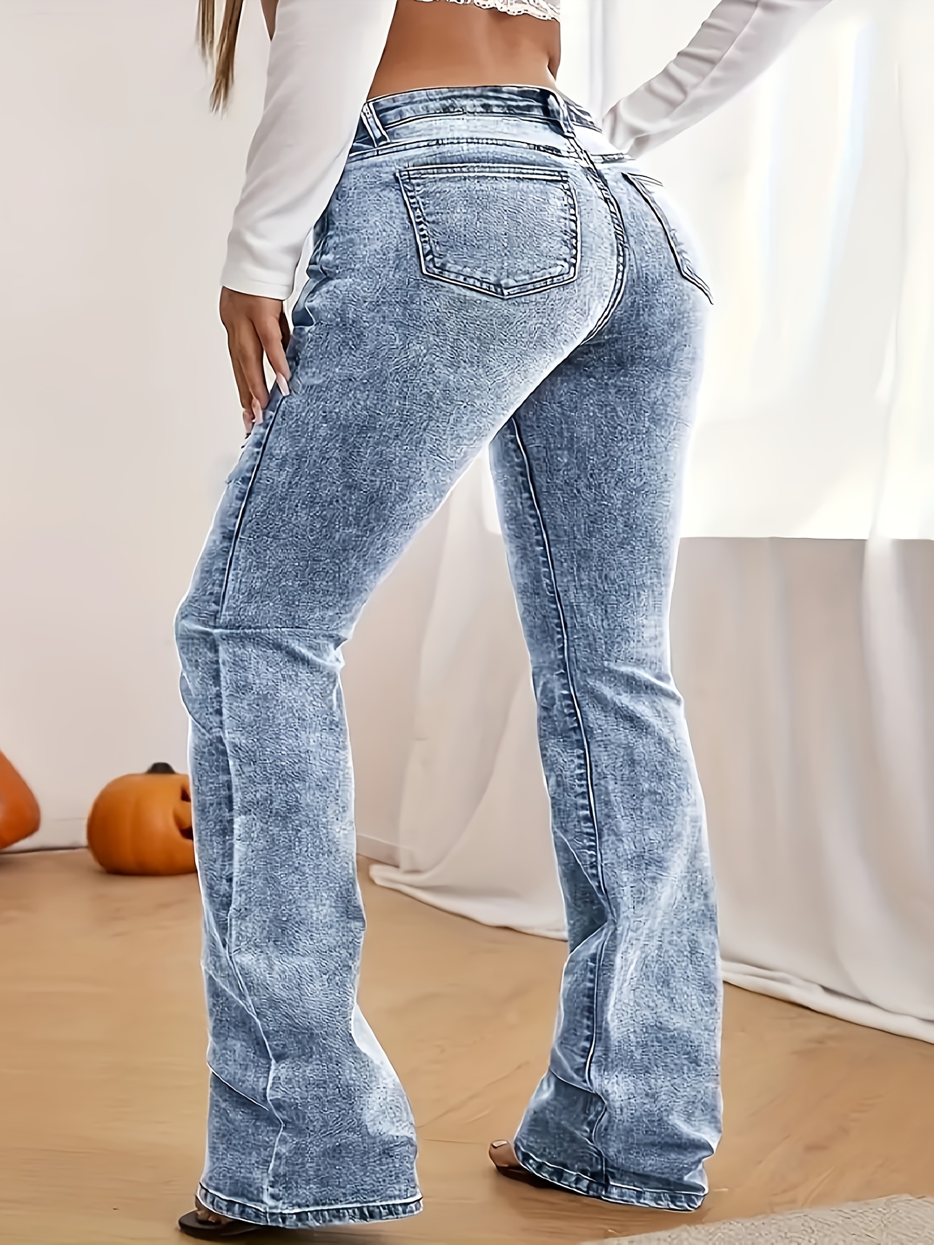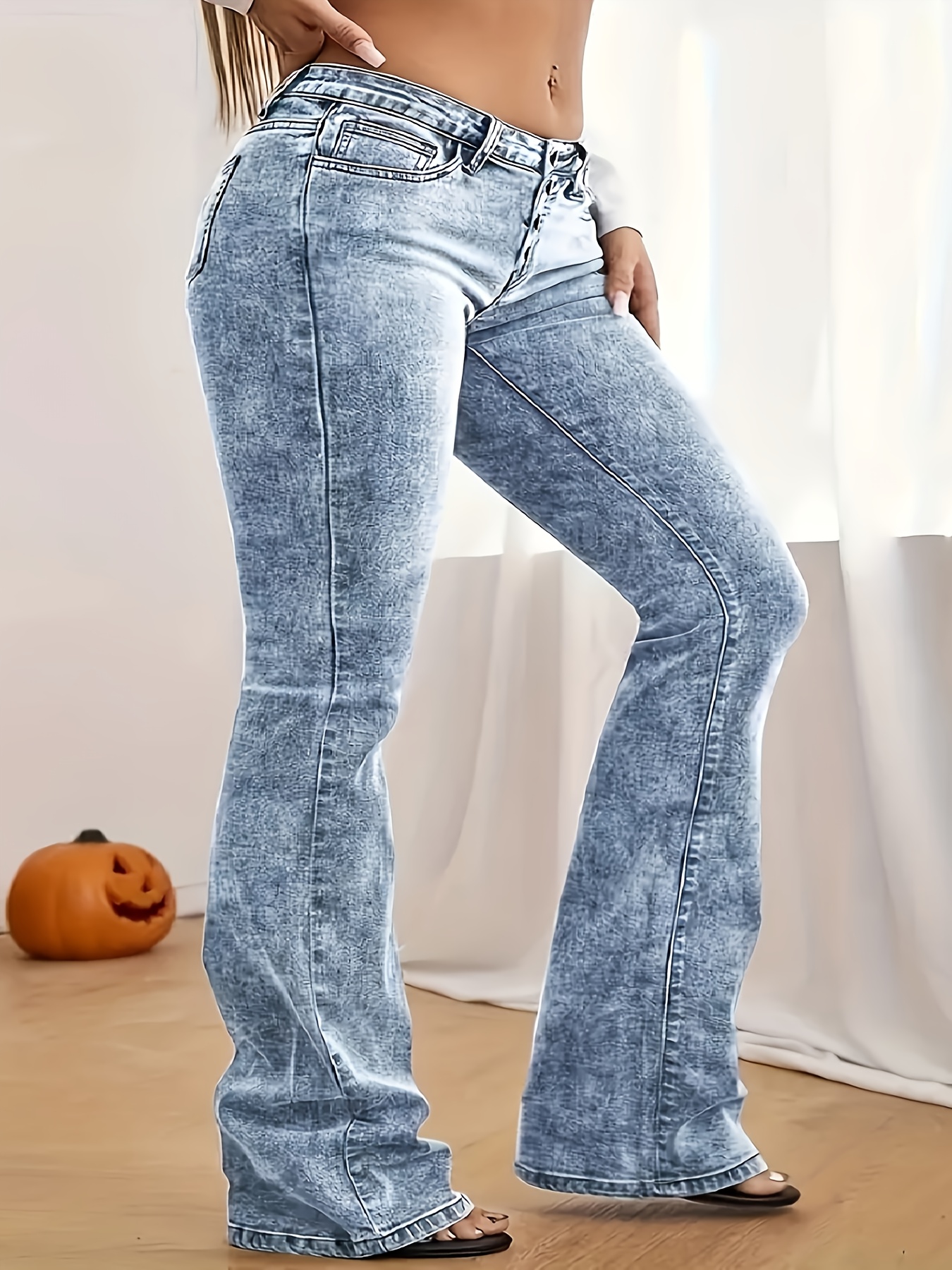 Women’s Large-size Stretchable Snowflake Wide-leg Denim Pants for Street Style Trend