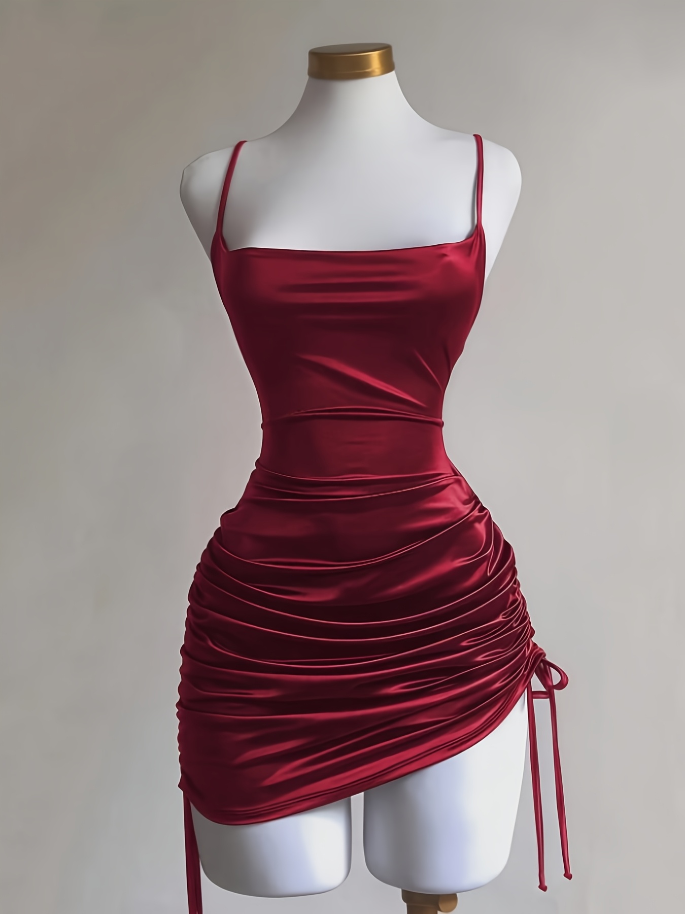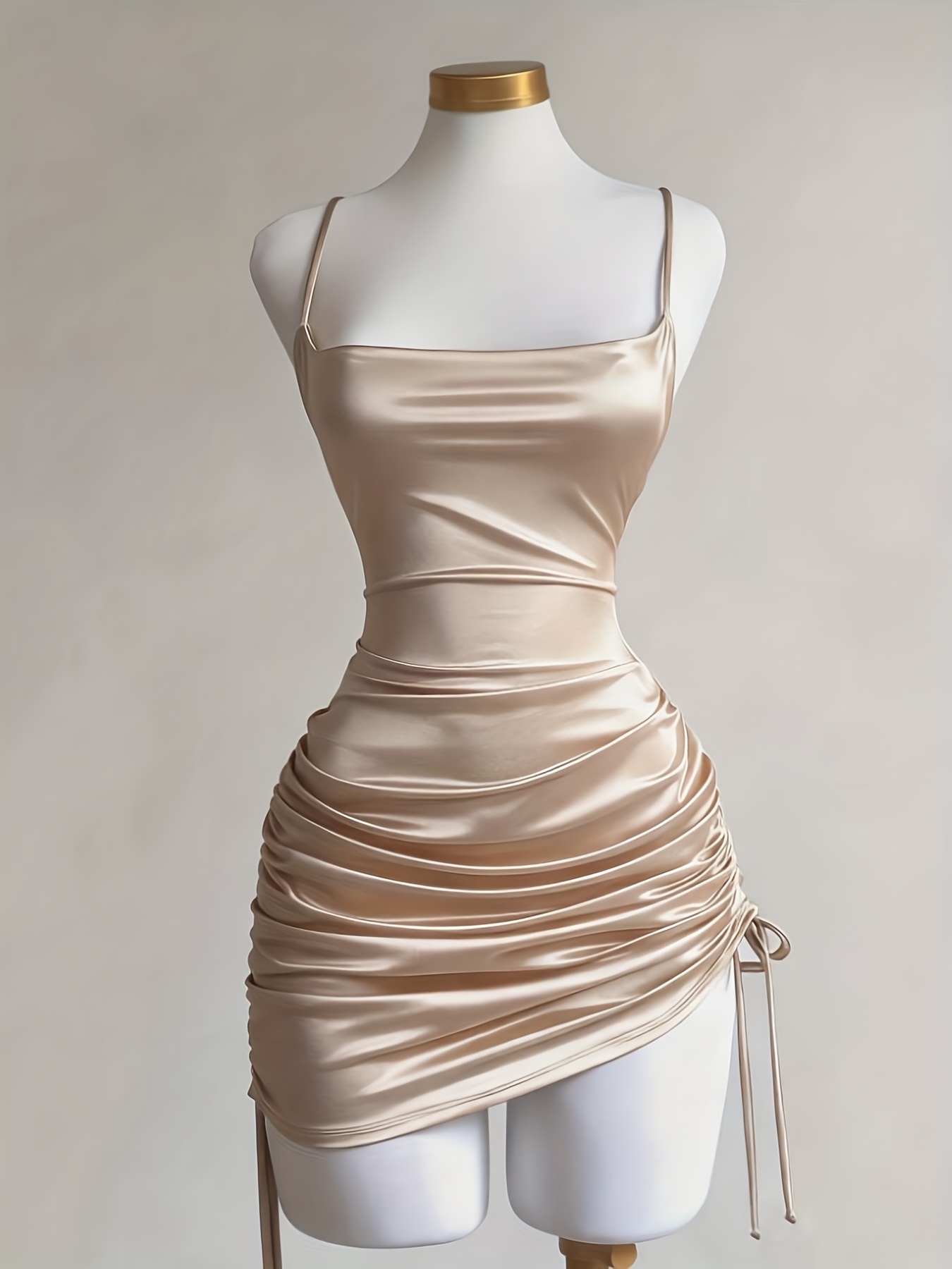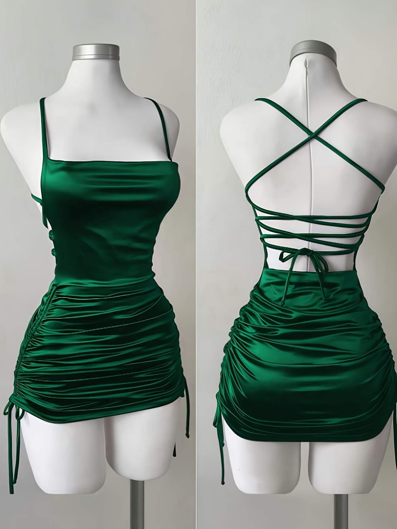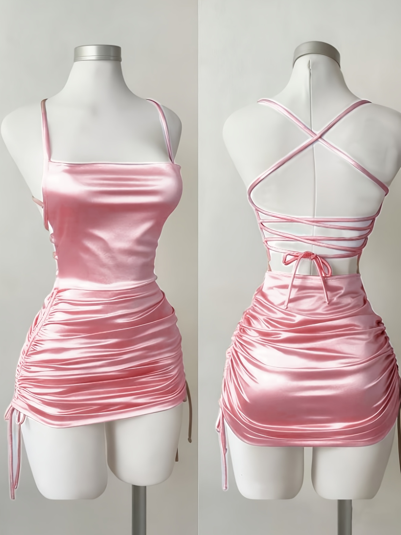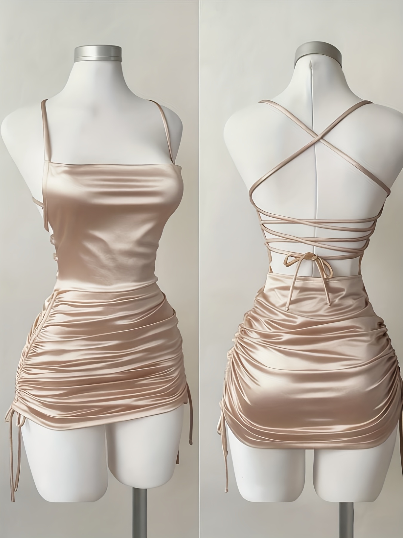 Women’s New Solid Color Lace-Up Drawstring Backless Suspender Dress, Fashionable and Elegant for Parties, Dates, Street Style, Cocktail Dresses, Bridesmaid Dresses, Daily Wear, Suitable for All Seasons