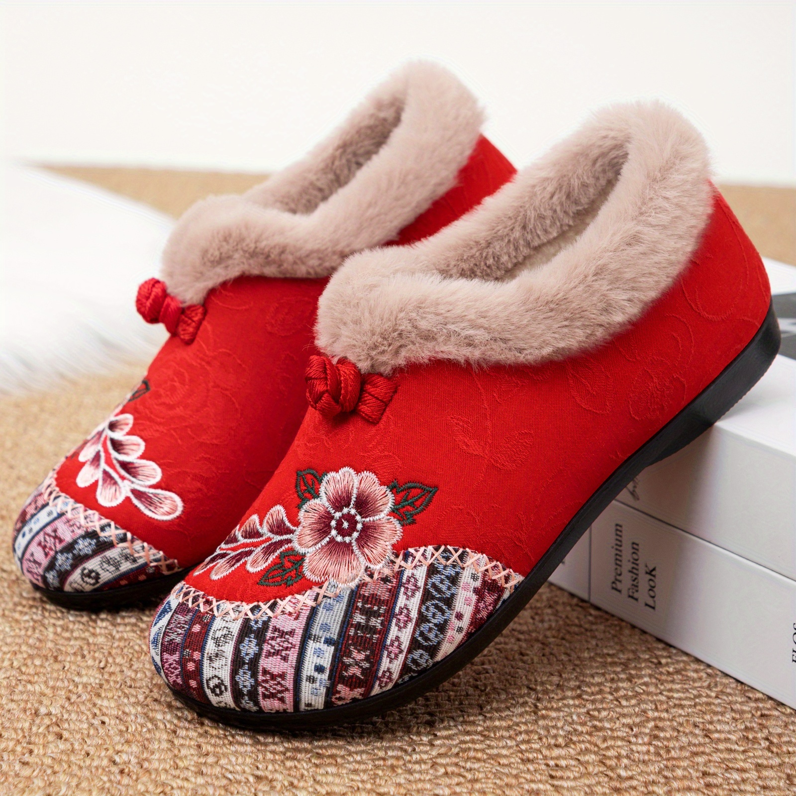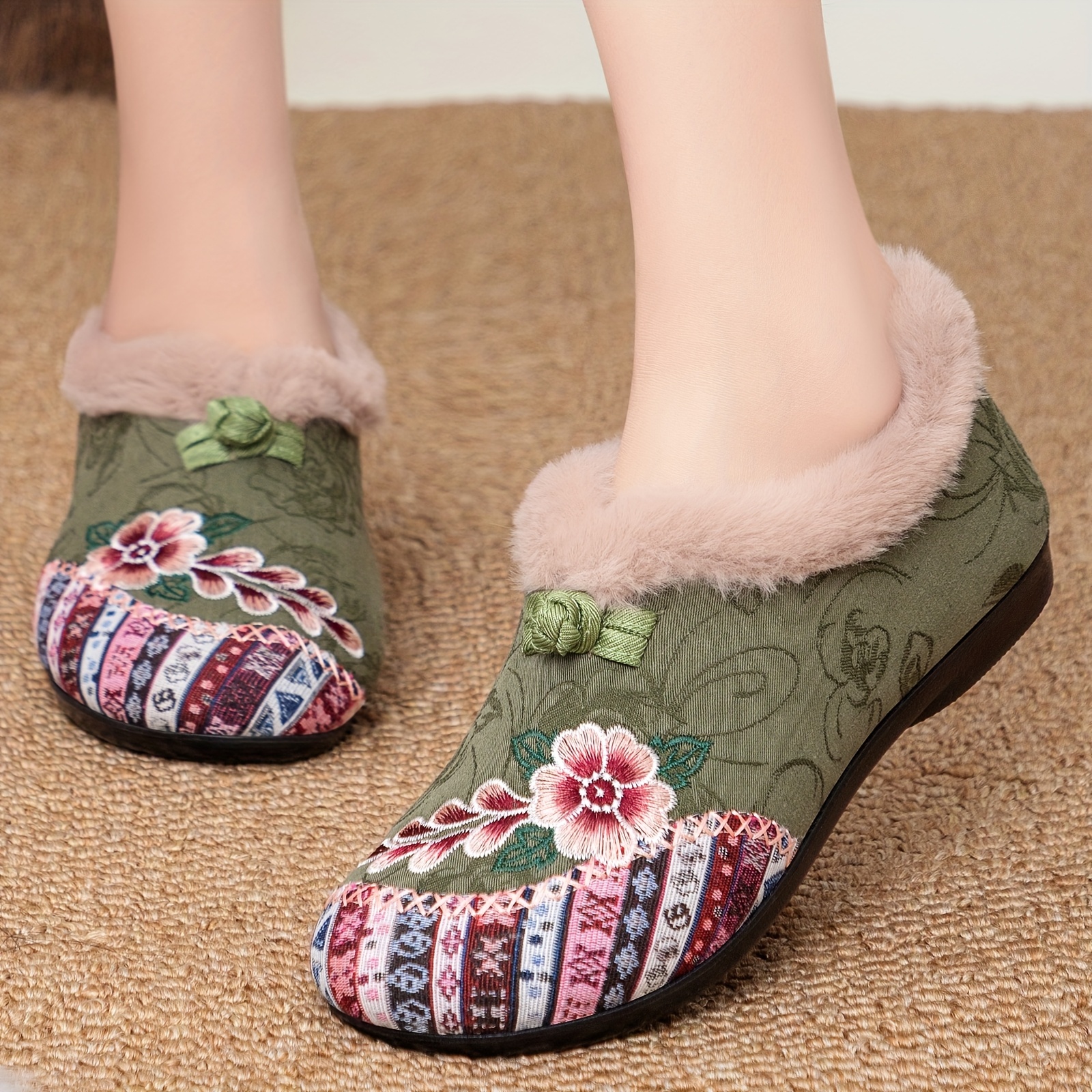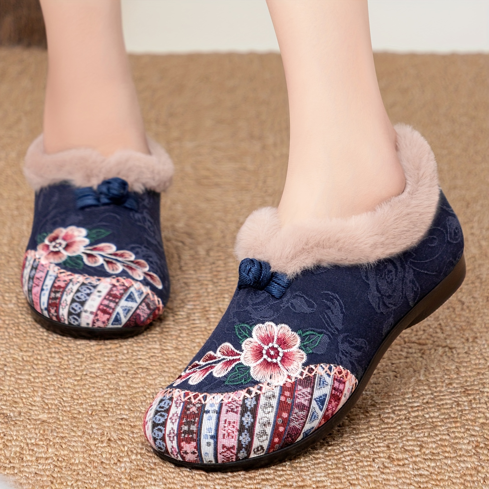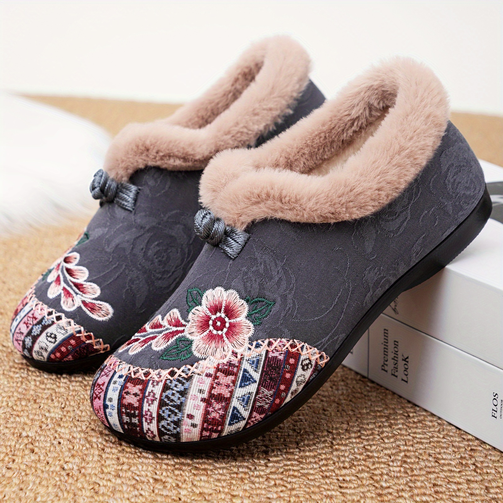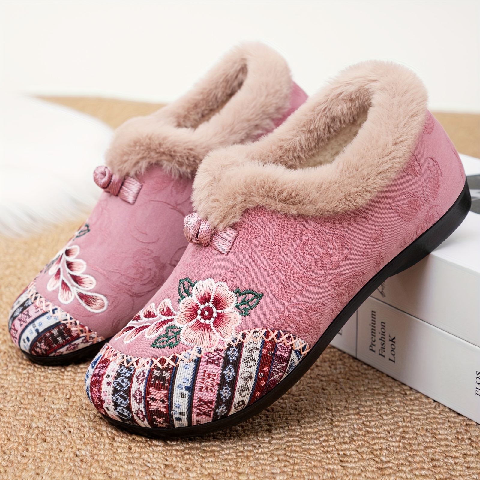 Women’s Plush Winter Slippers with – Cozy Warm, Soft Fabric Upper & Sole Suitable for Home, Bedside – Warm Comfortable Footwear for & Floors