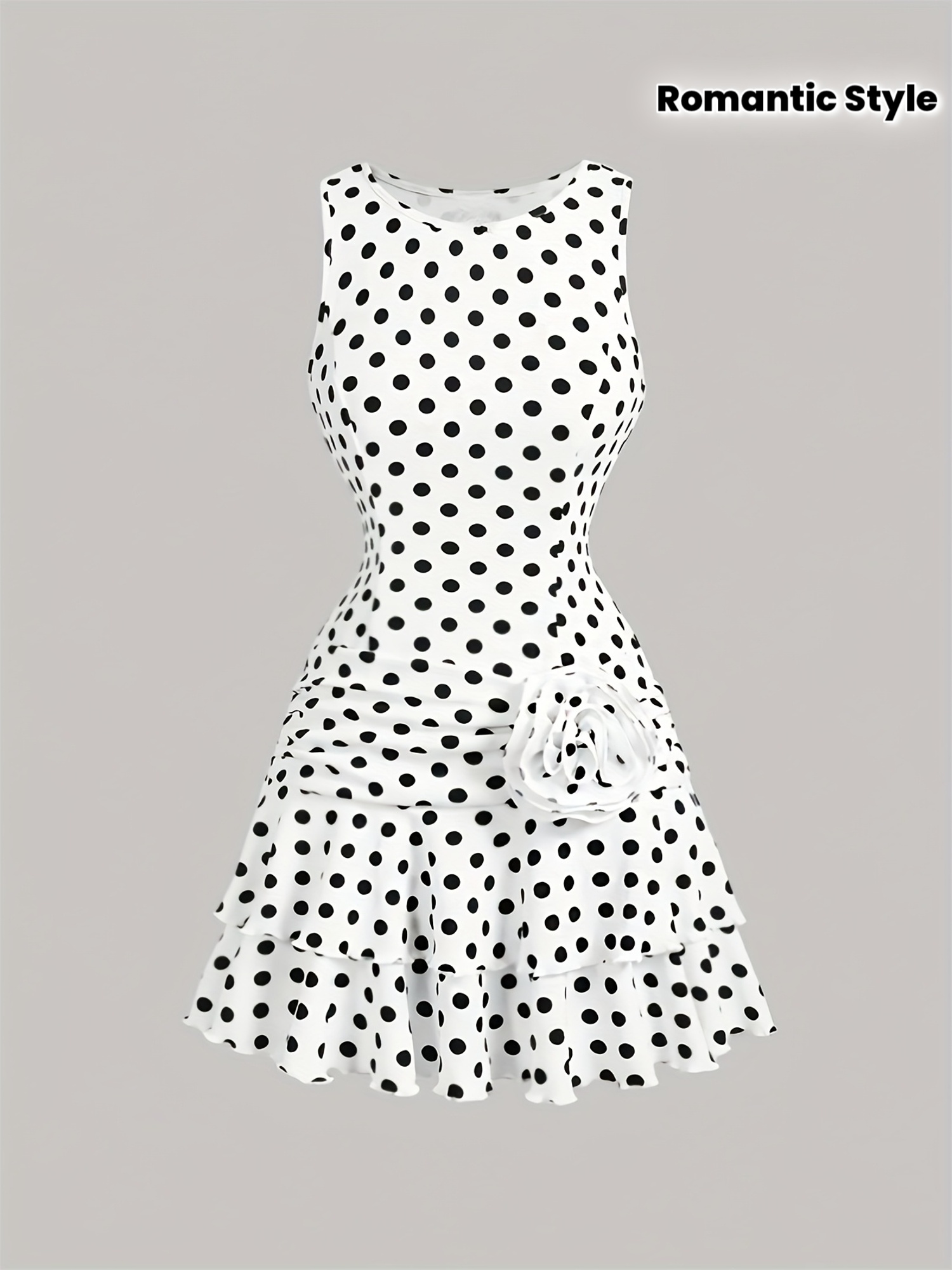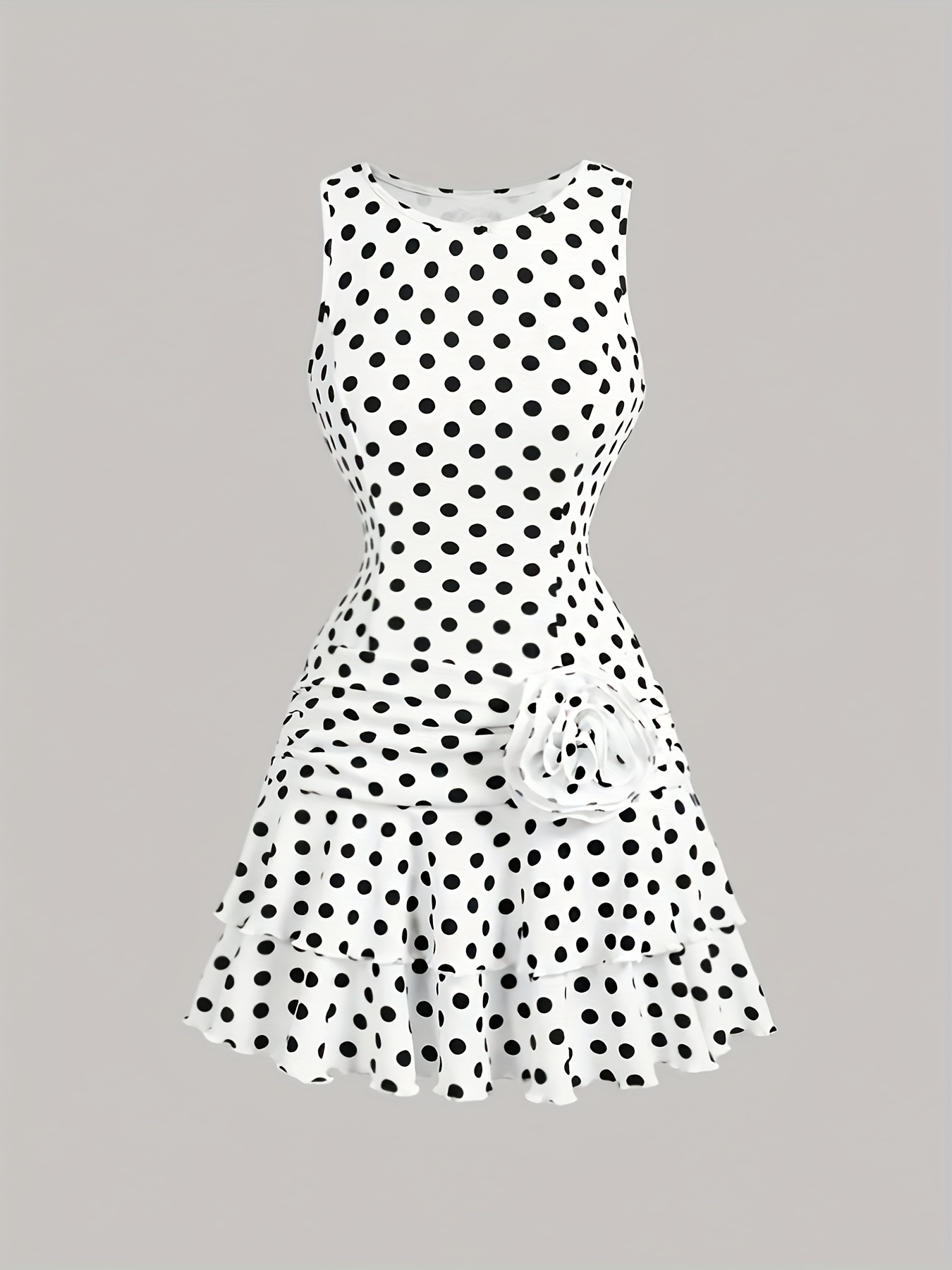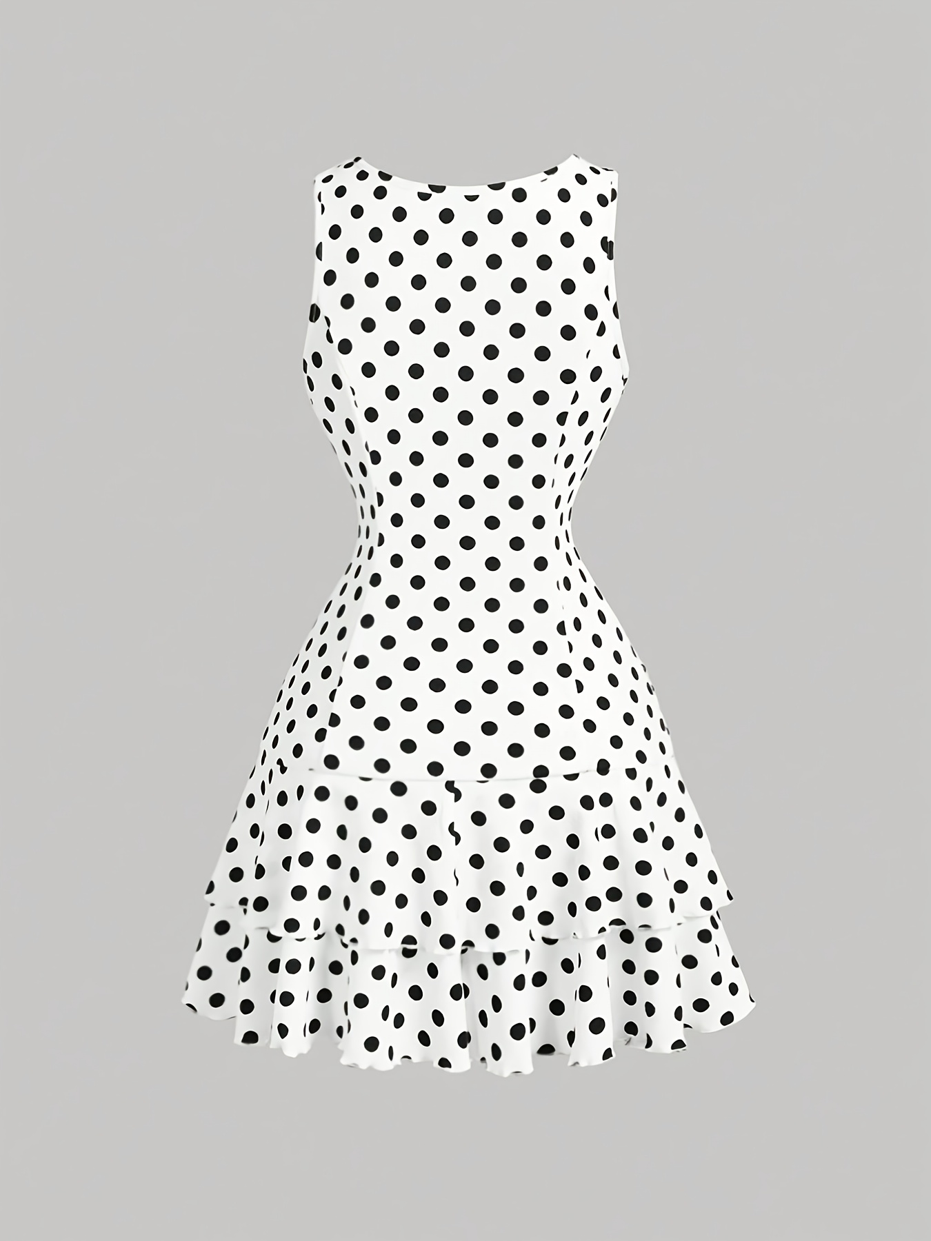 Women’S Polka Dot Dress / New French Romantic Style with Black And White Small Polka Dots Design, Sleeveless Dress, Suitable for European And American Fashion, Sweet And Gentle, Featuring Pleats, Irregular Double-Layer Hem, Waist-Cinching