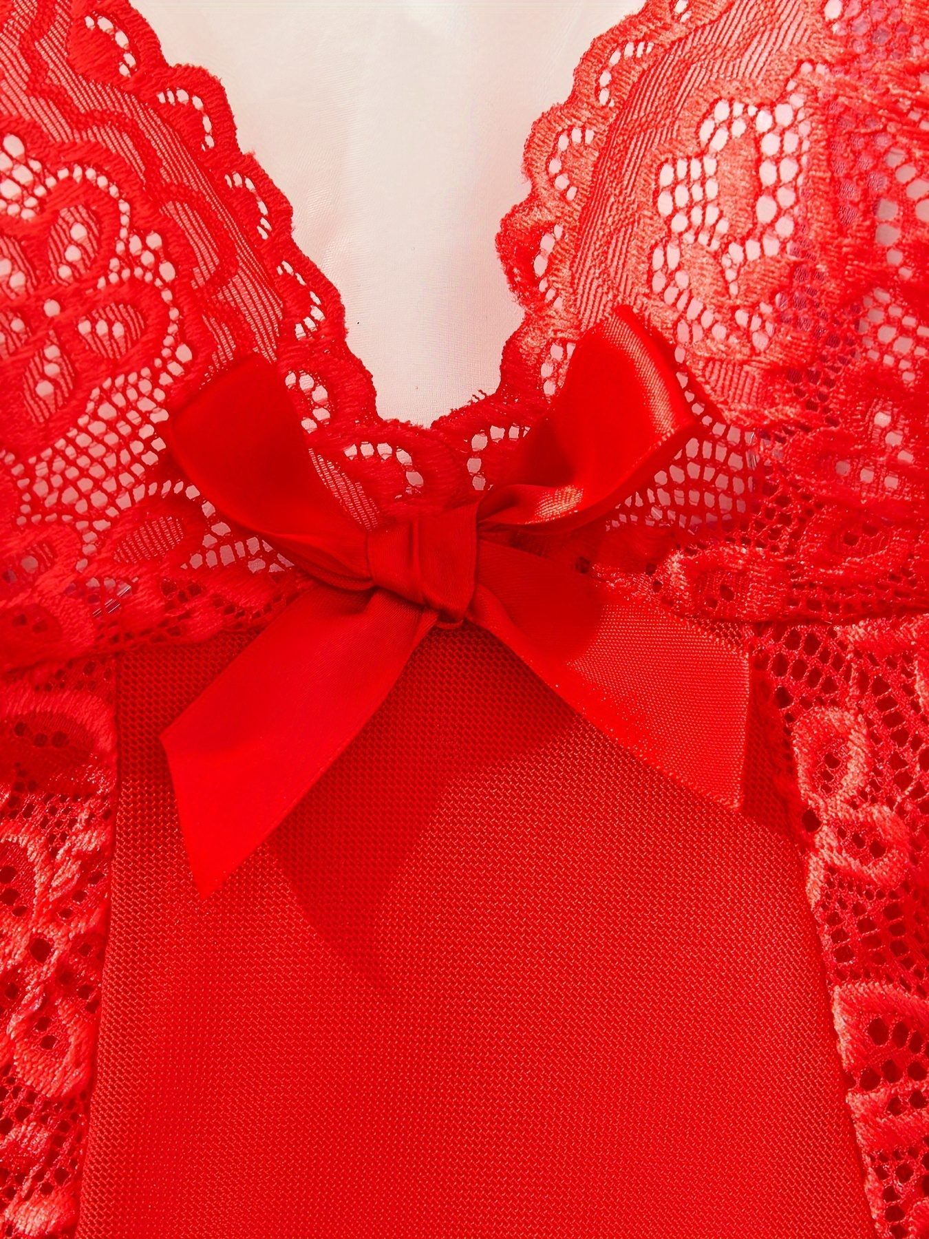 Women’S Red Lace Nightgown – Sexy Slip Dress with Bow Detail, Backless Design, and High-Low Hem, Perfect for Intimate Moments, Intimate Apparel | Elegant Nightwear | Lace Fabric